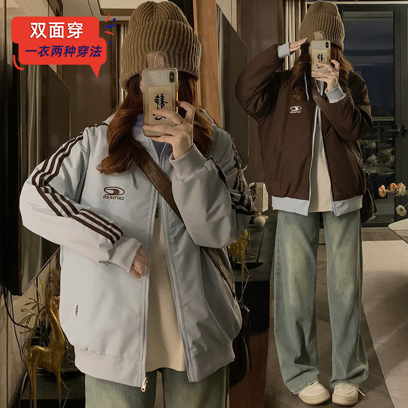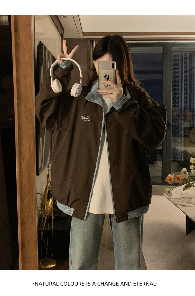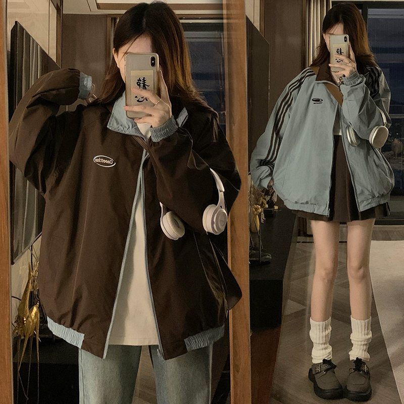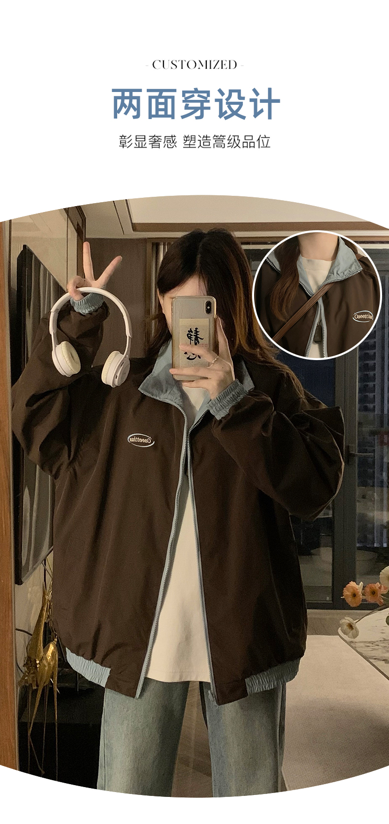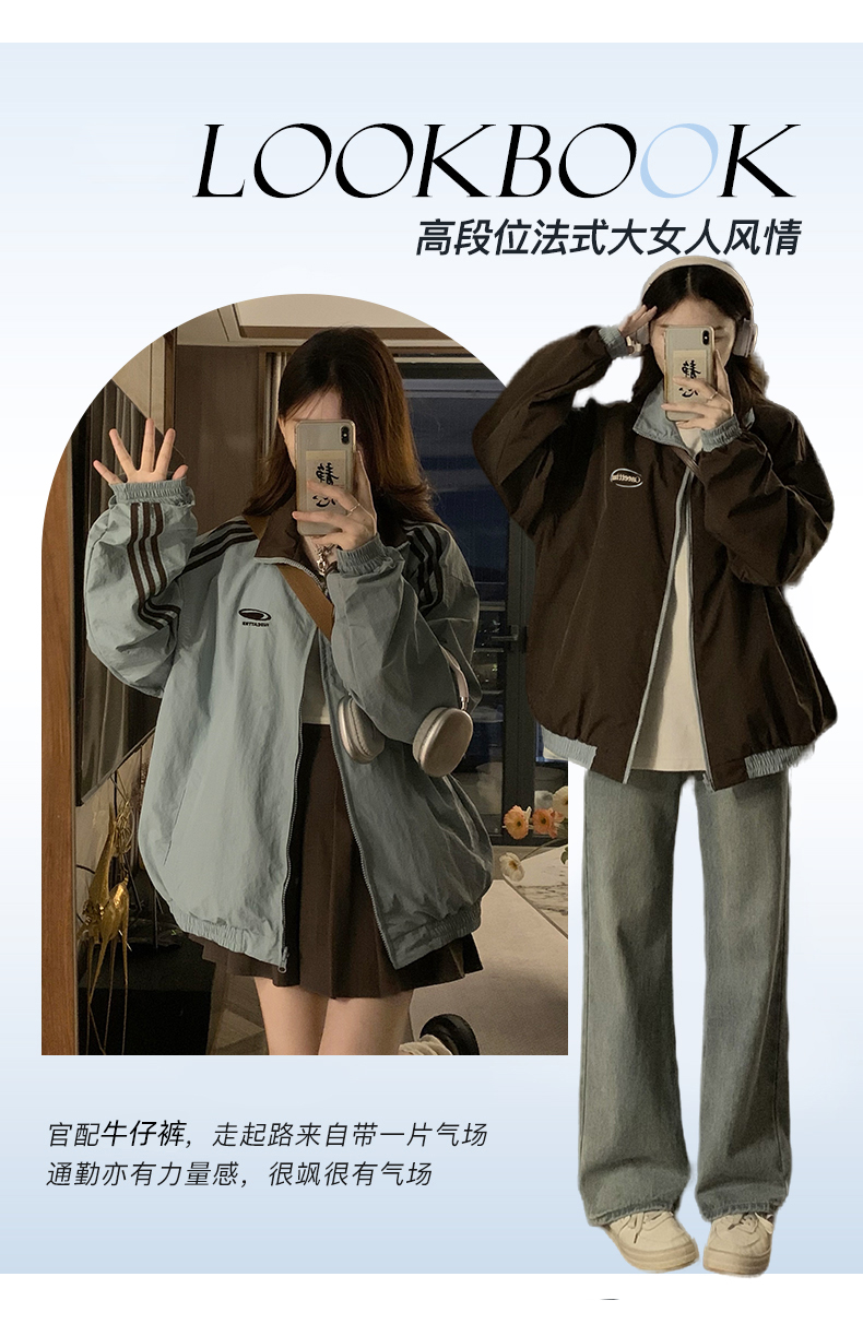 2025春秋新款正反兩面穿三條杠外套男女美式復古寬松情侶運動夾克