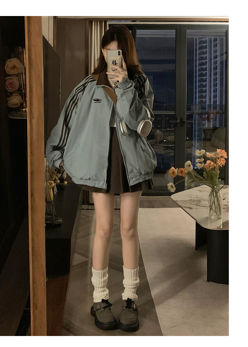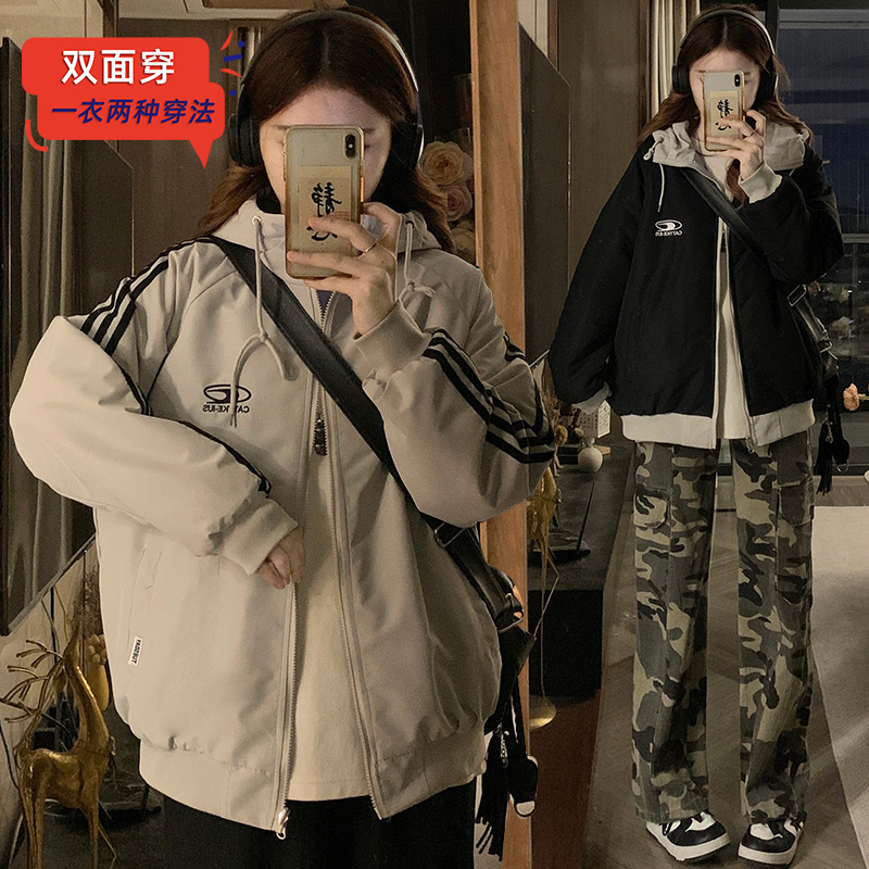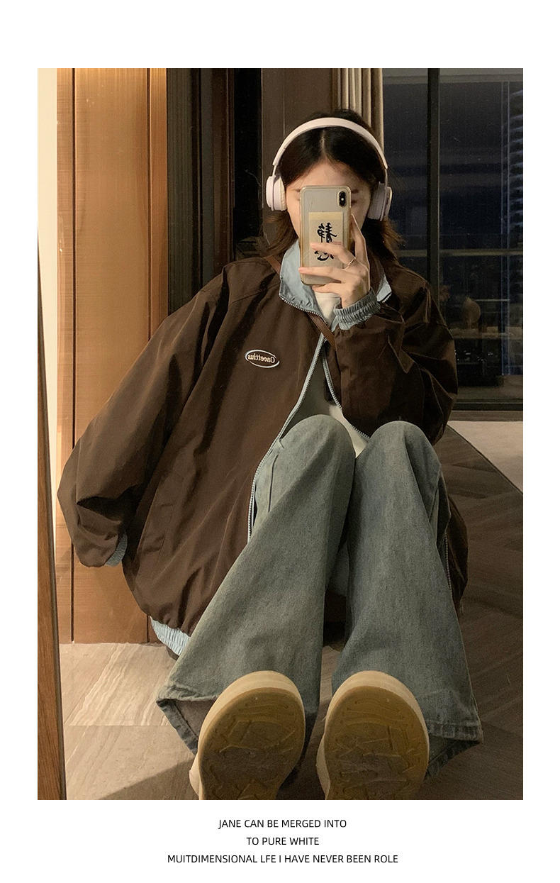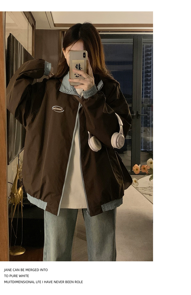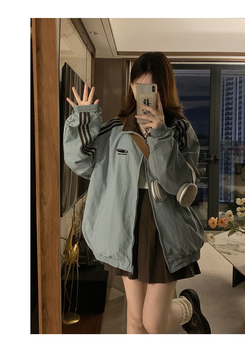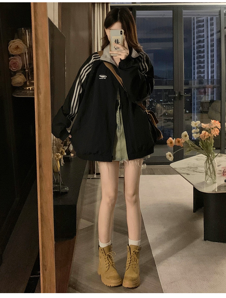 2025春秋新款正反兩面穿三條杠外套男女美式復古寬松情侶運動夾克