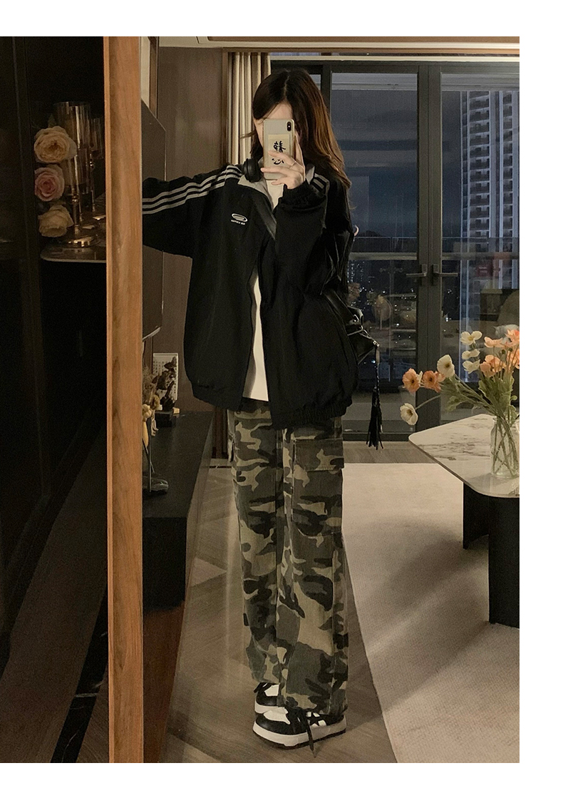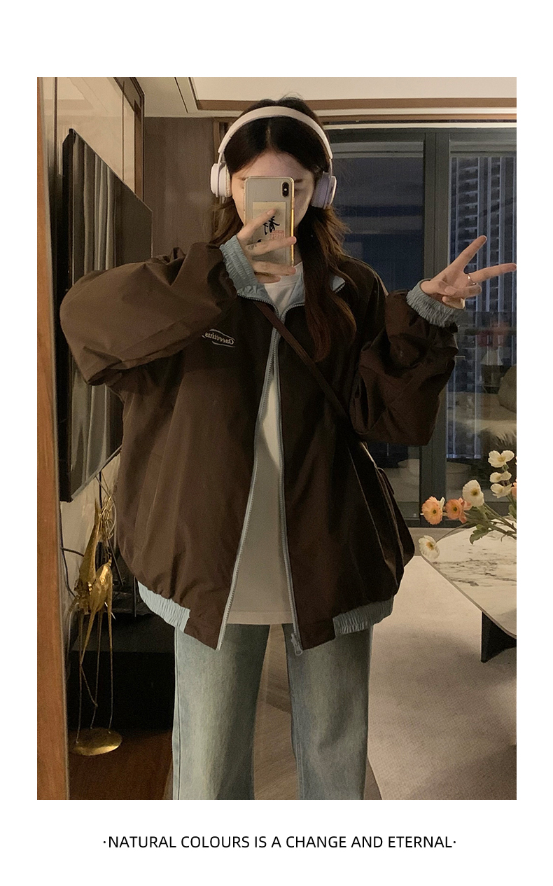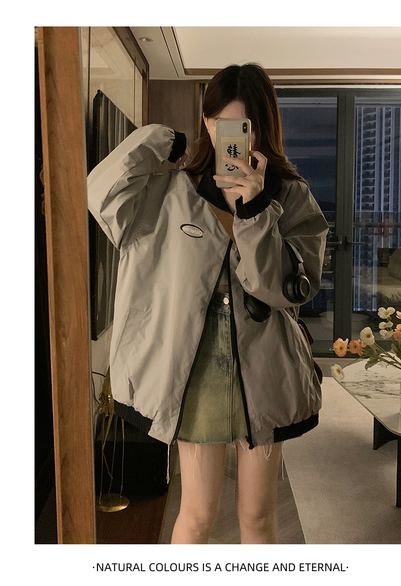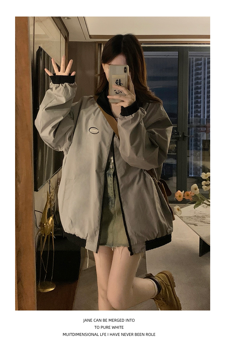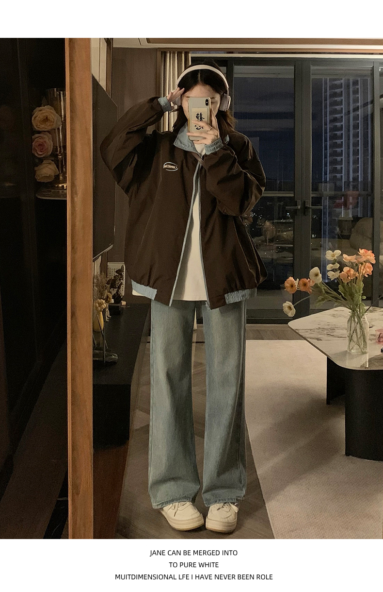 2025春秋新款正反兩面穿三條杠外套男女美式復古寬松情侶運動夾克