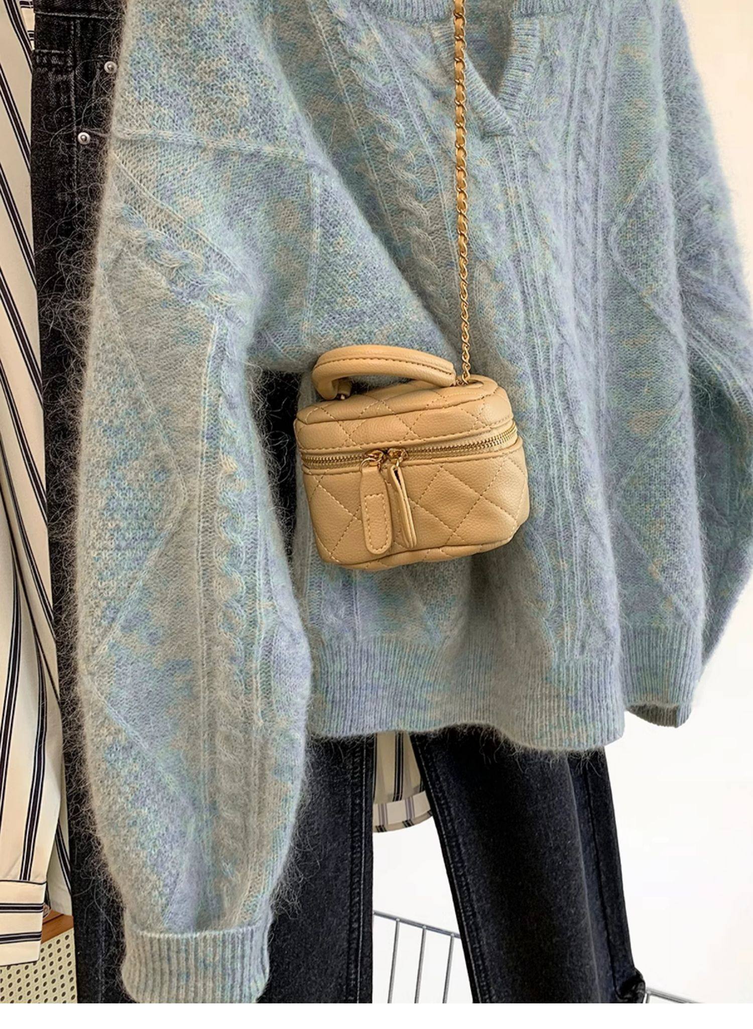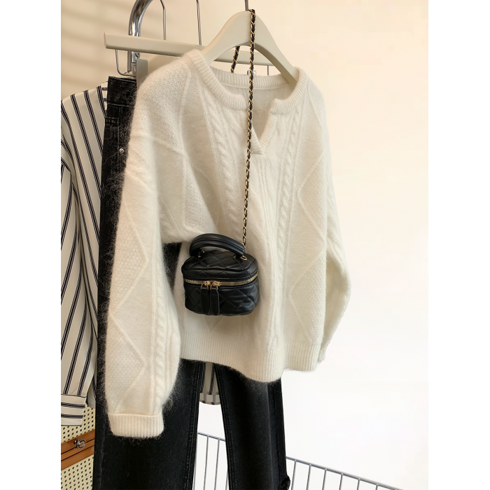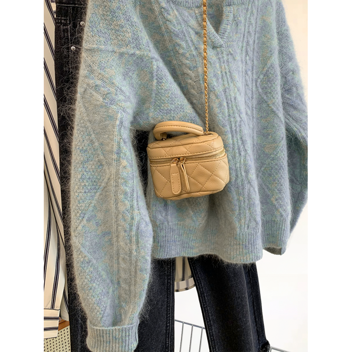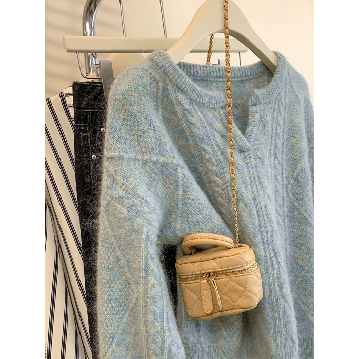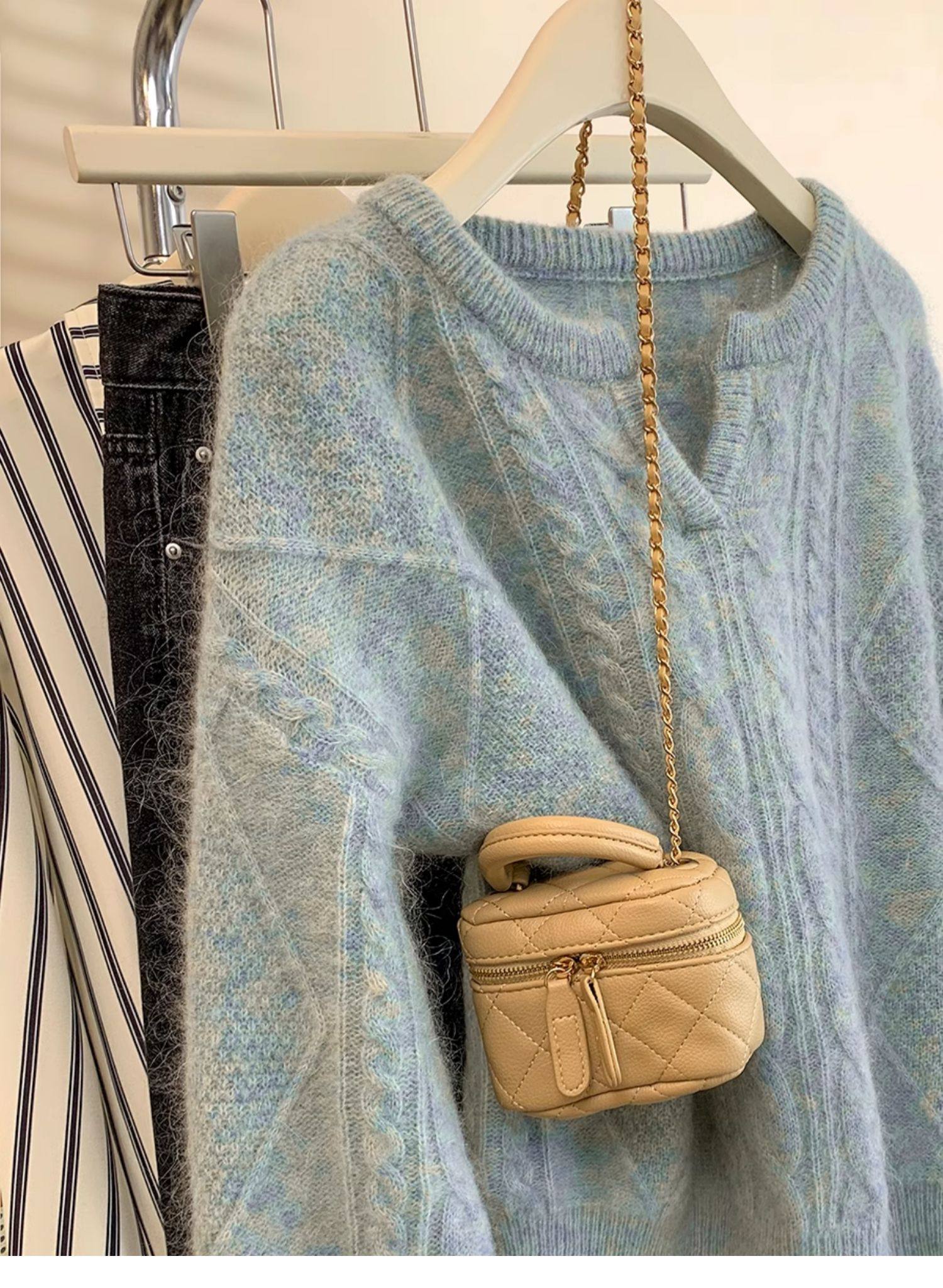 藍色麻花v領套頭毛衣女裝秋冬2025新款慵嬾風軟糯加厚羊毛針織衫