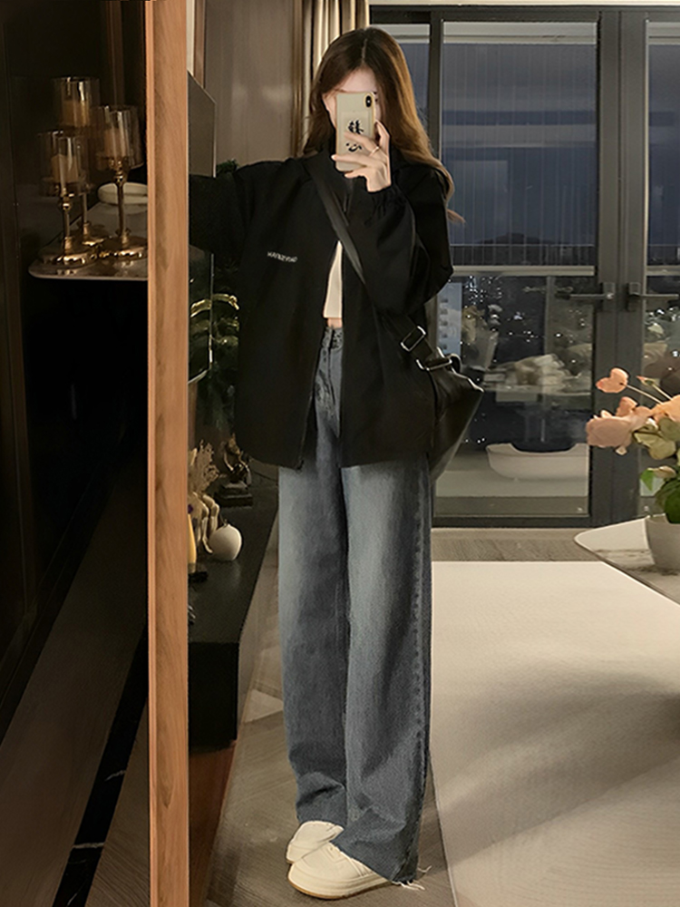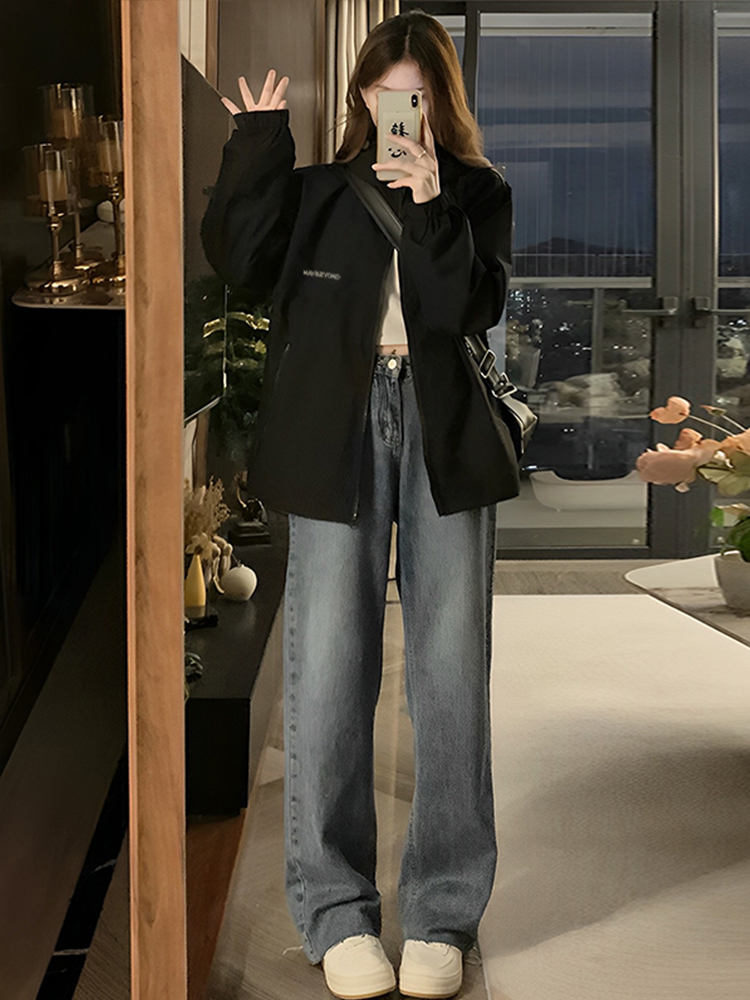 新款黑色沖鋒衣外套女秋冬款寬松休閒百搭秋季加絨加厚夾克上衣潮