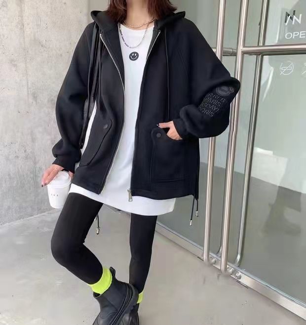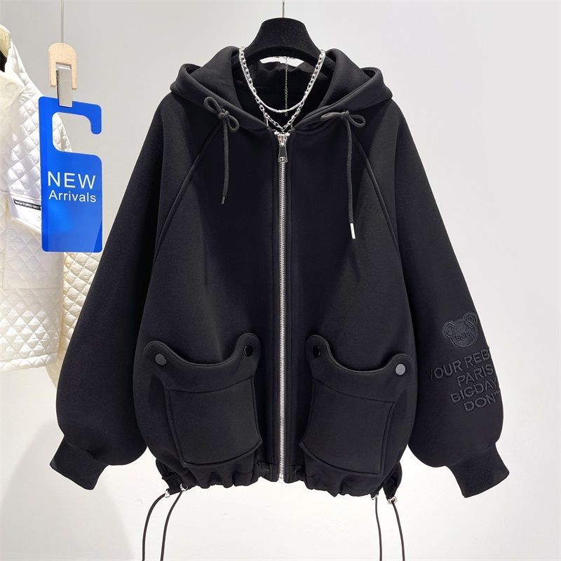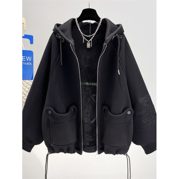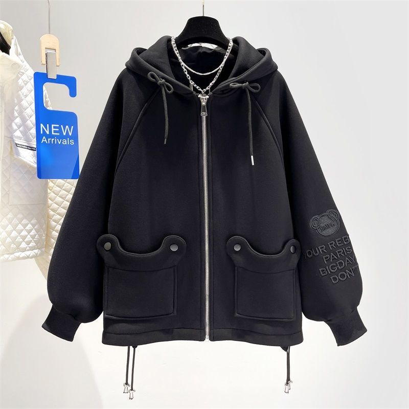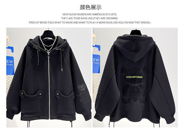 胖mm特大碼300斤歐貨卡通刺綉連帽衛衣女秋冬季加絨加厚開衫外套2