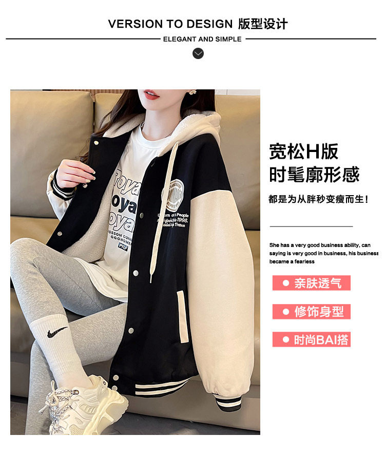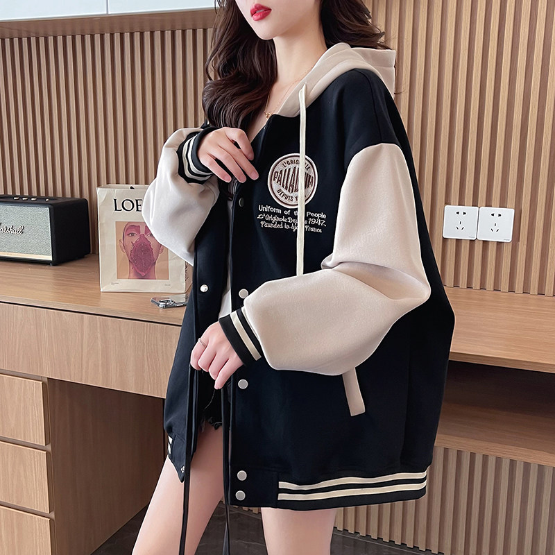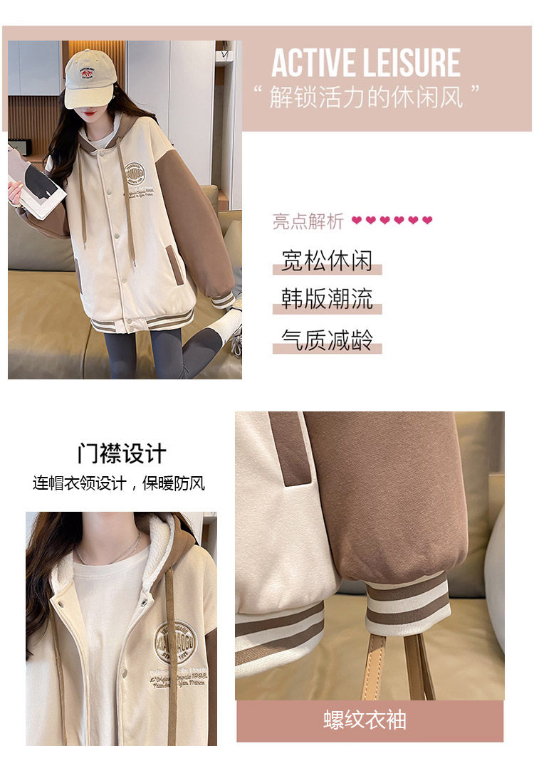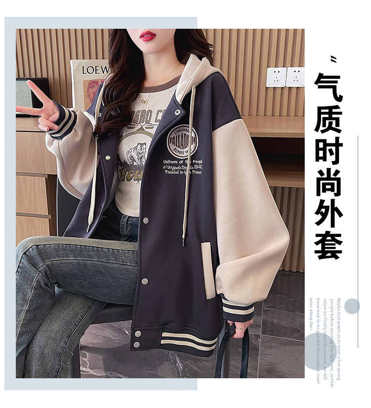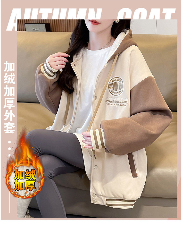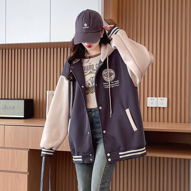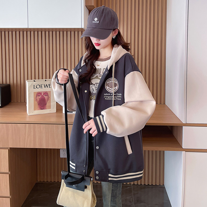 早春美式棒球服外套女春秋冬季加絨加厚衛衣2026新款初中學生夾克