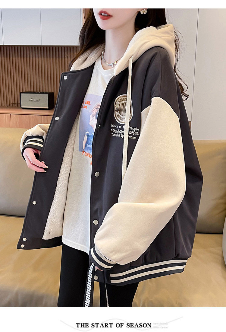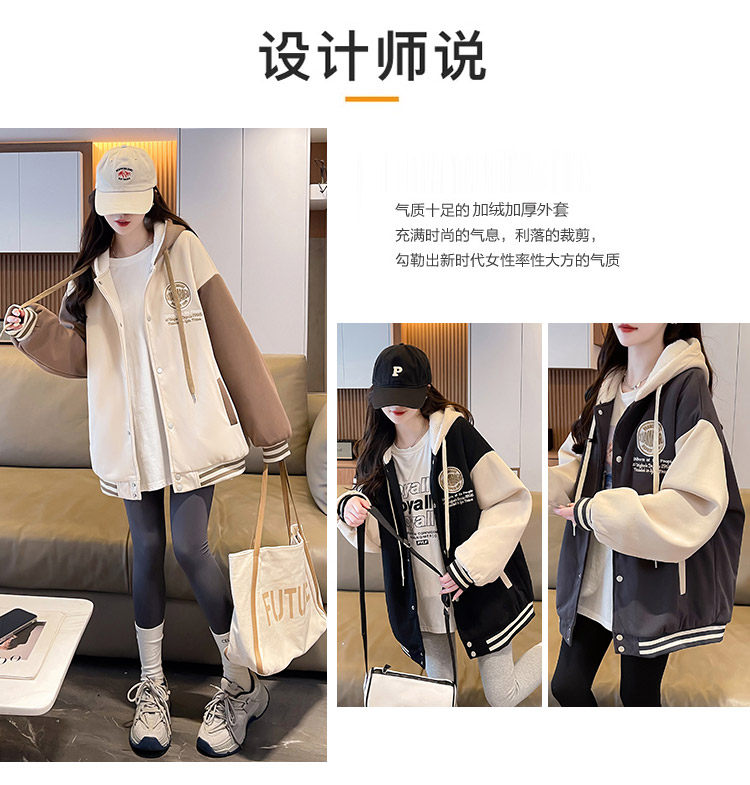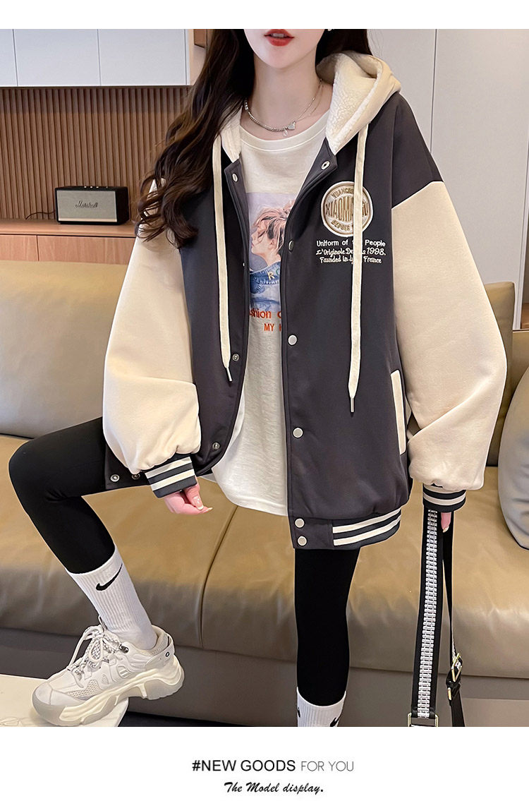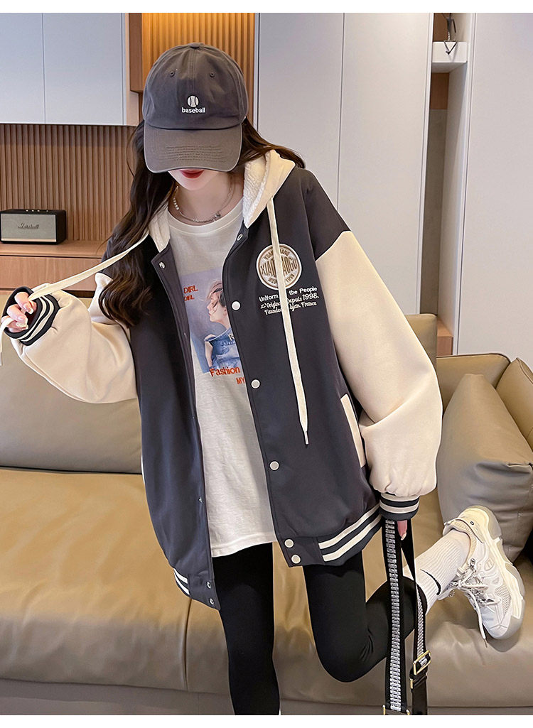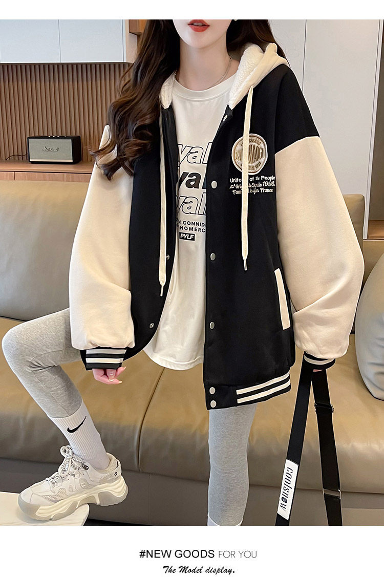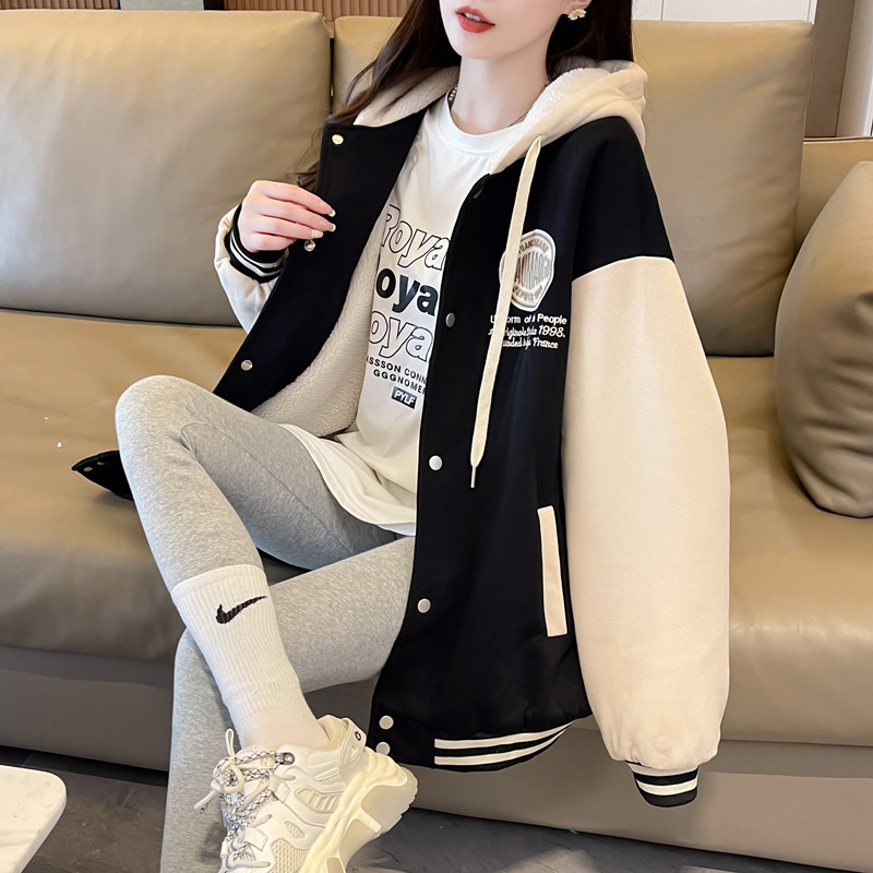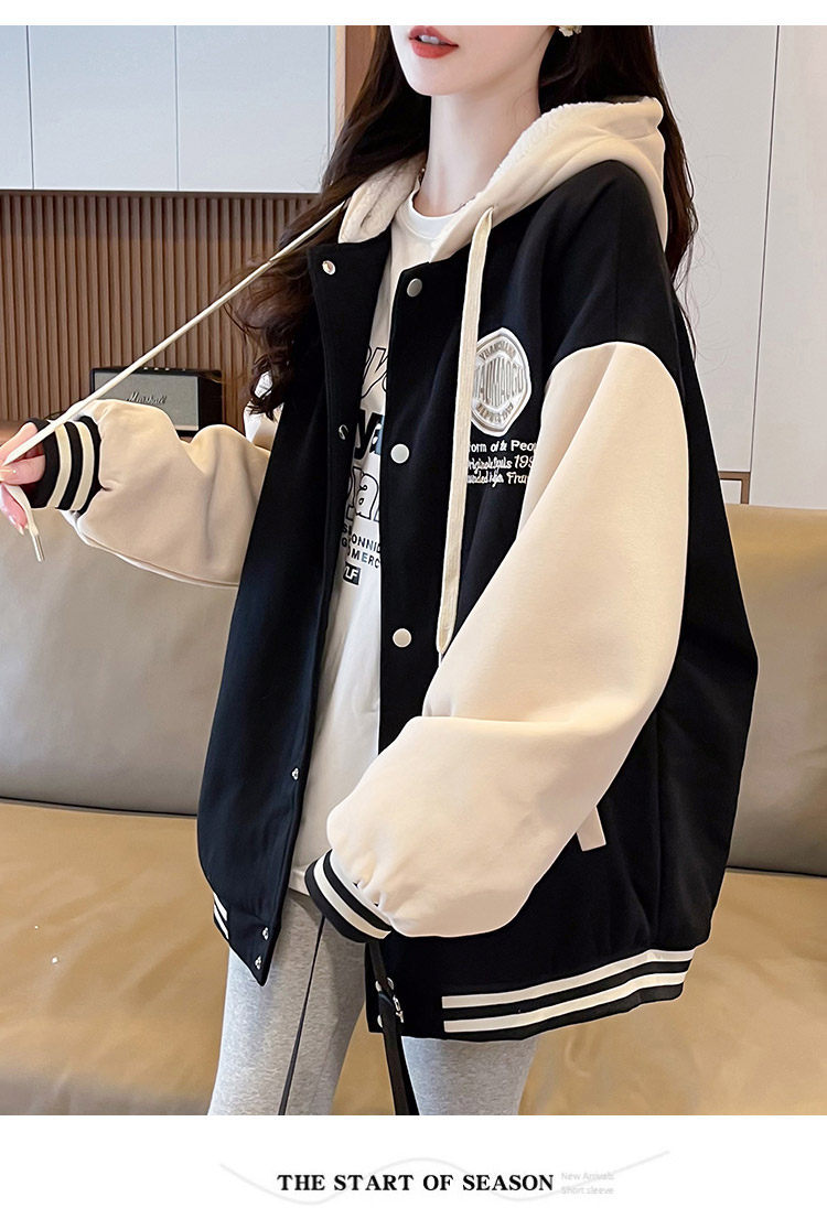 早春美式棒球服外套女春秋冬季加絨加厚衛衣2026新款初中學生夾克