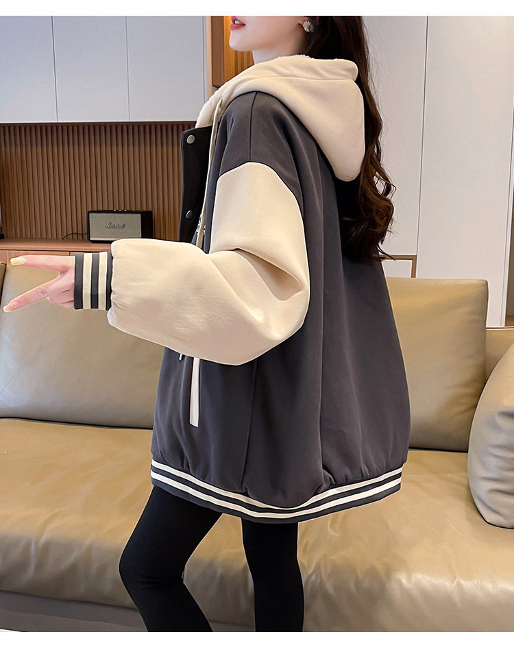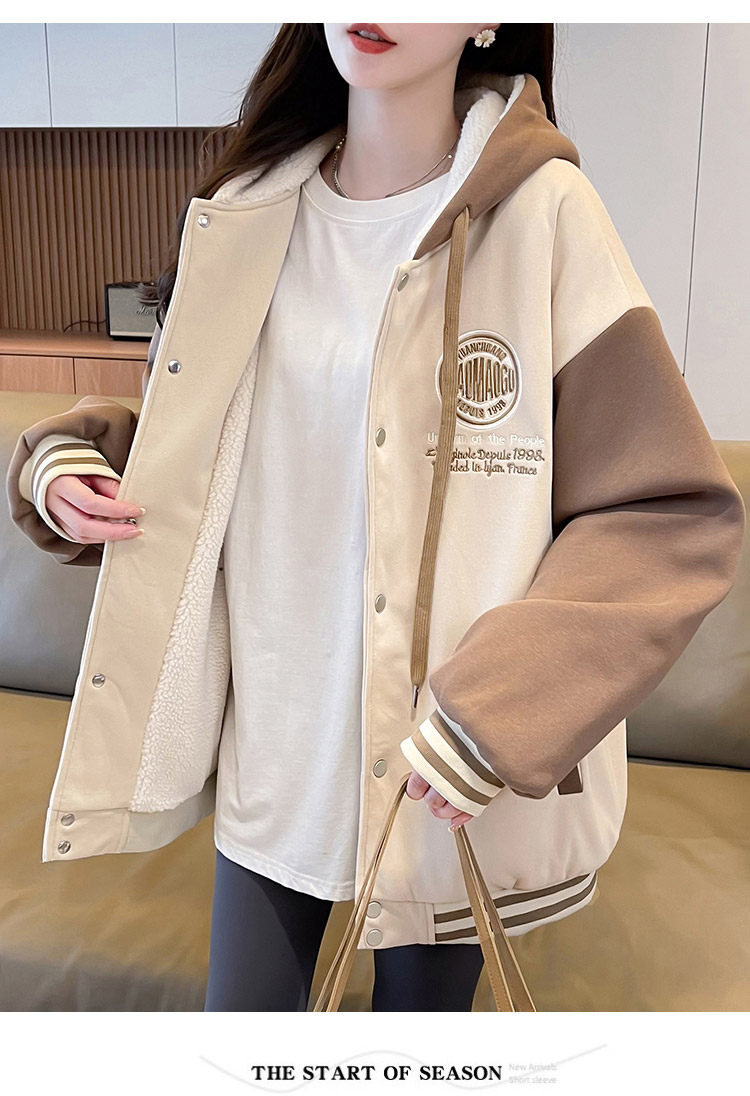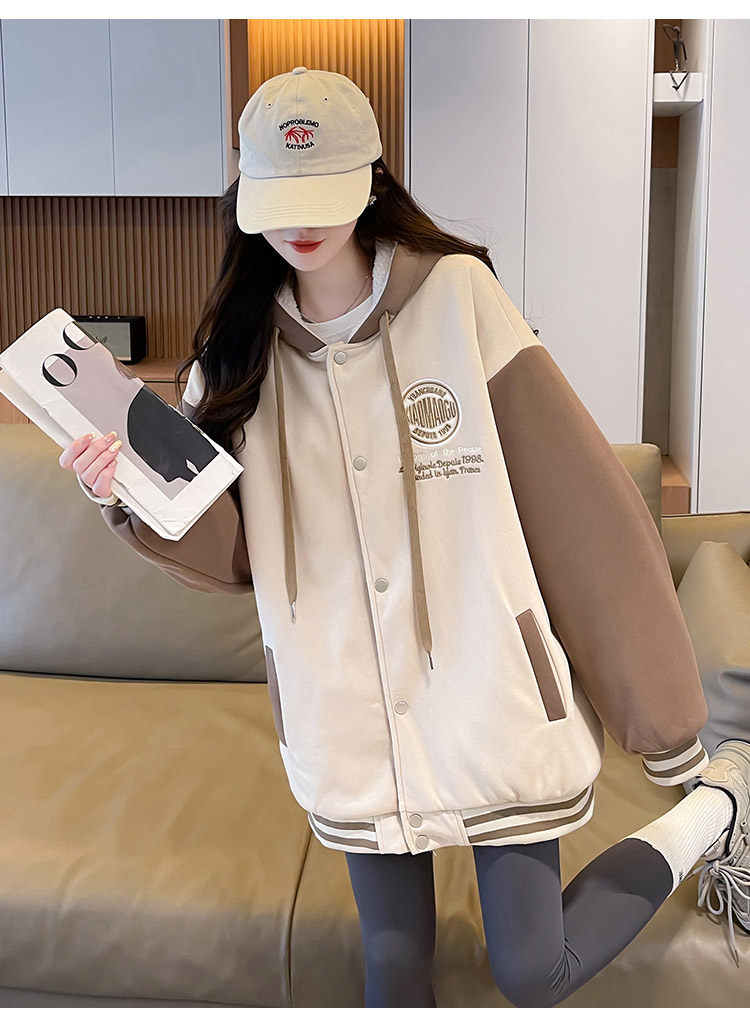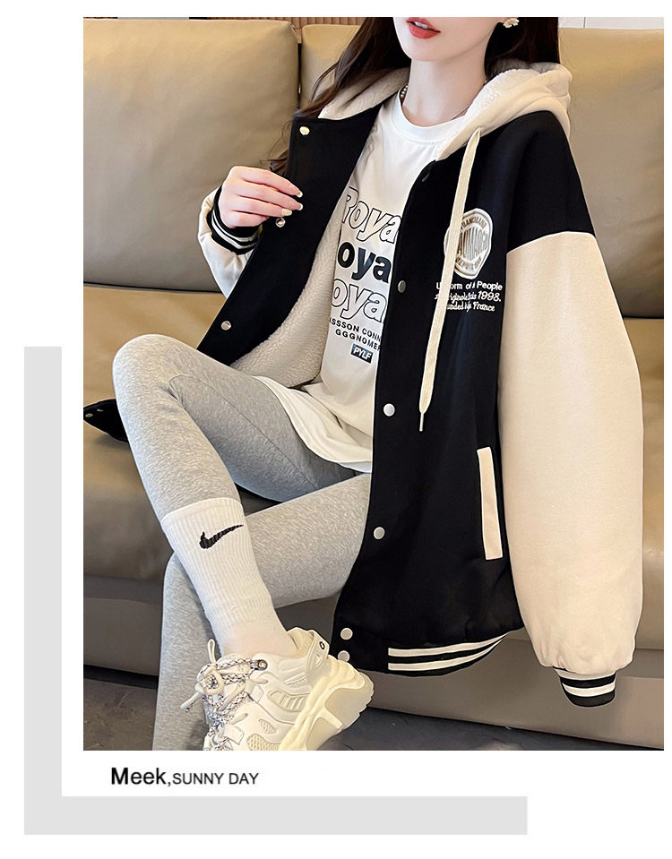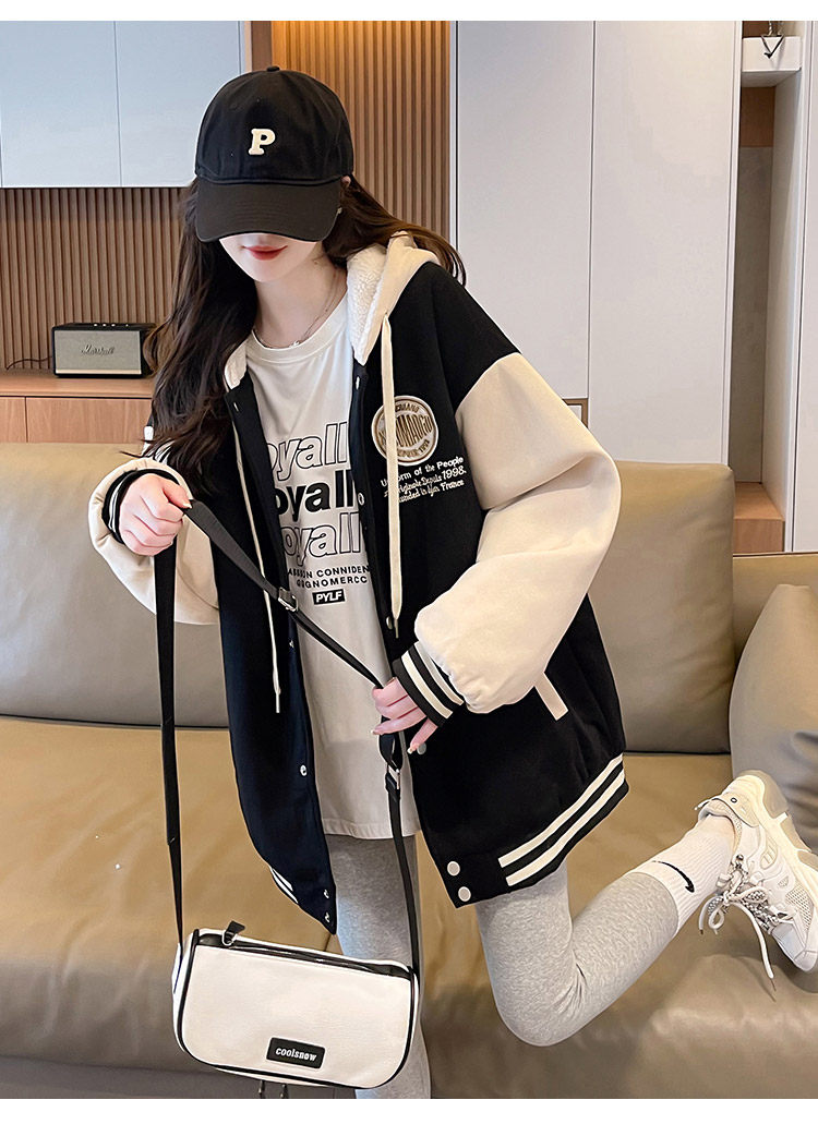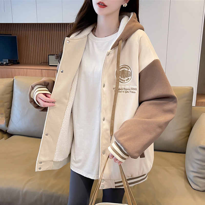 早春美式棒球服外套女春秋冬季加絨加厚衛衣2026新款初中學生夾克