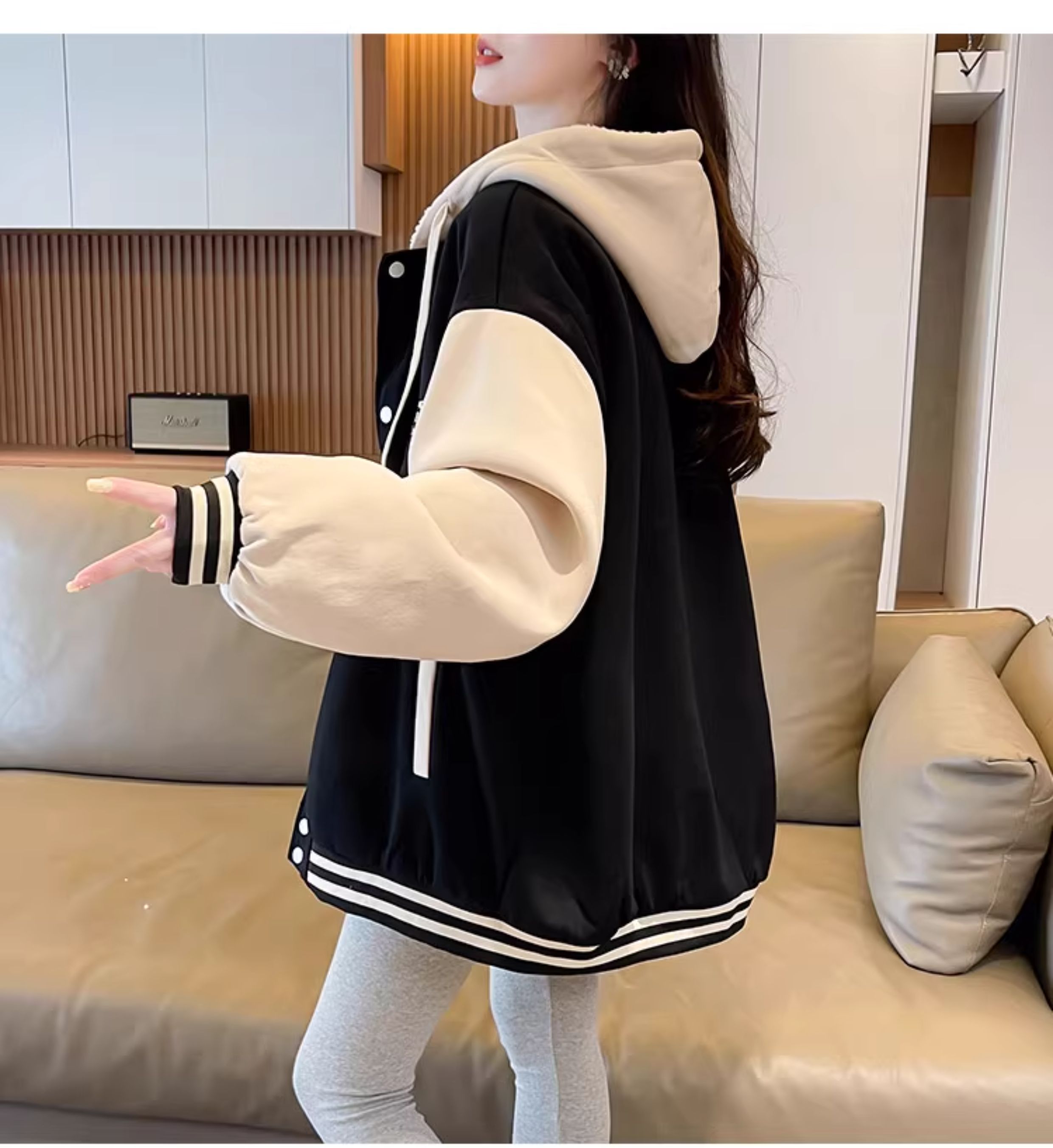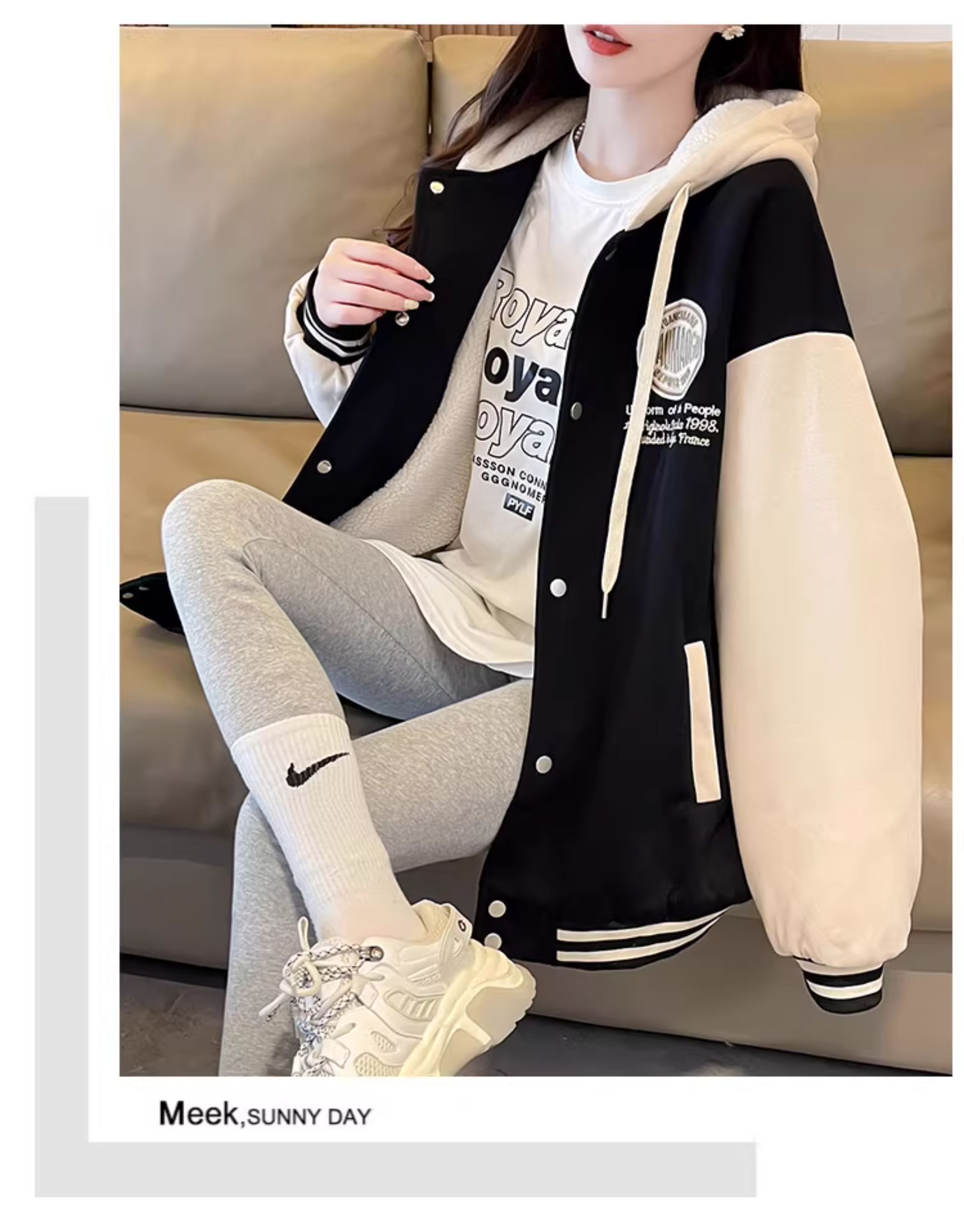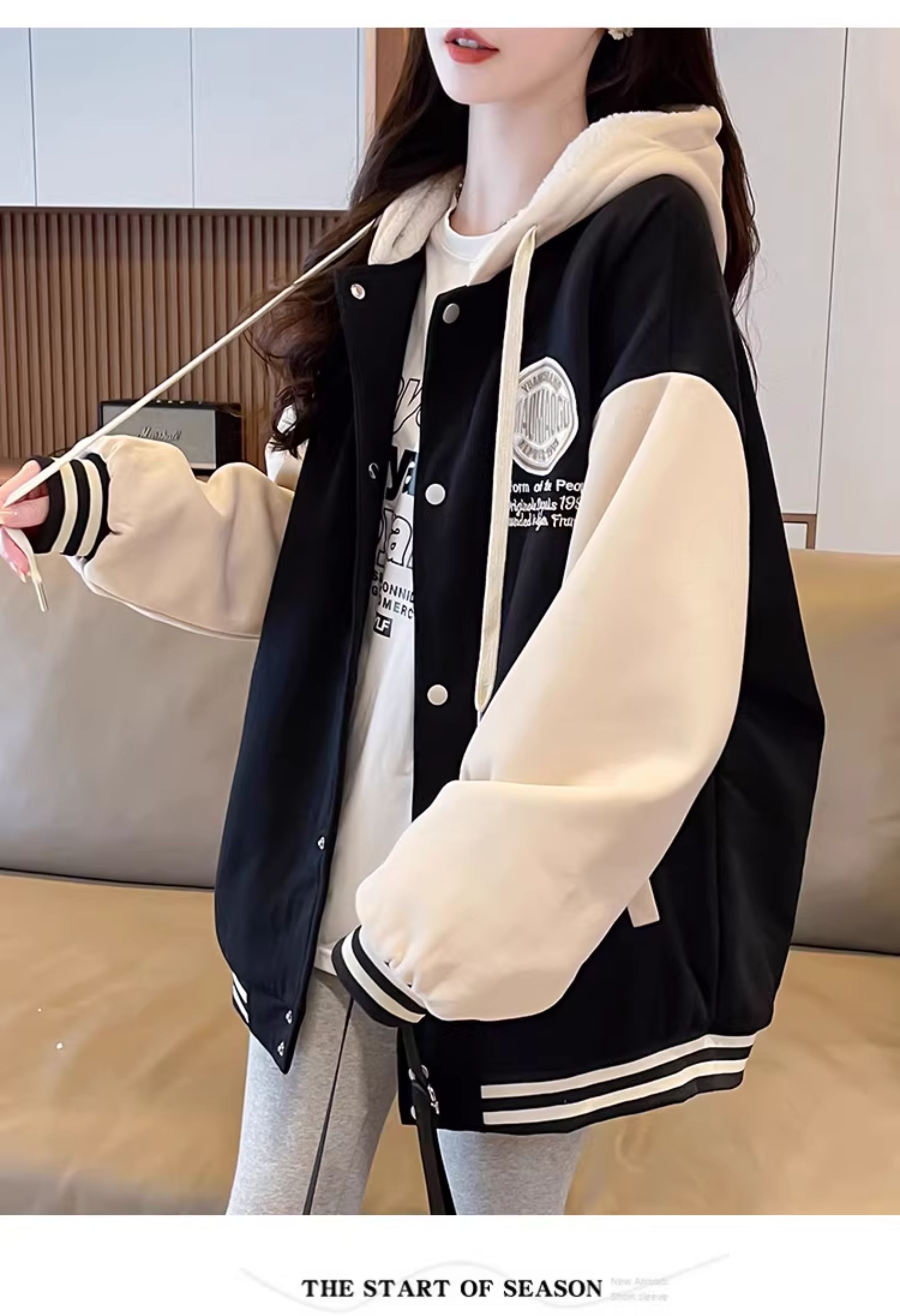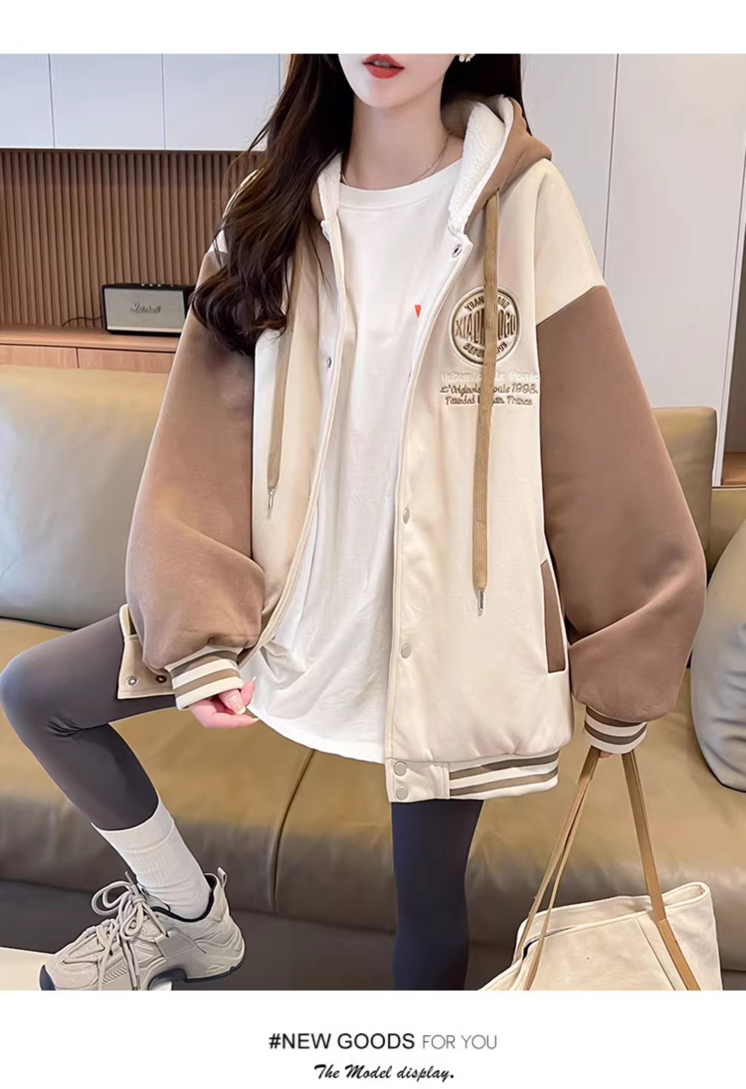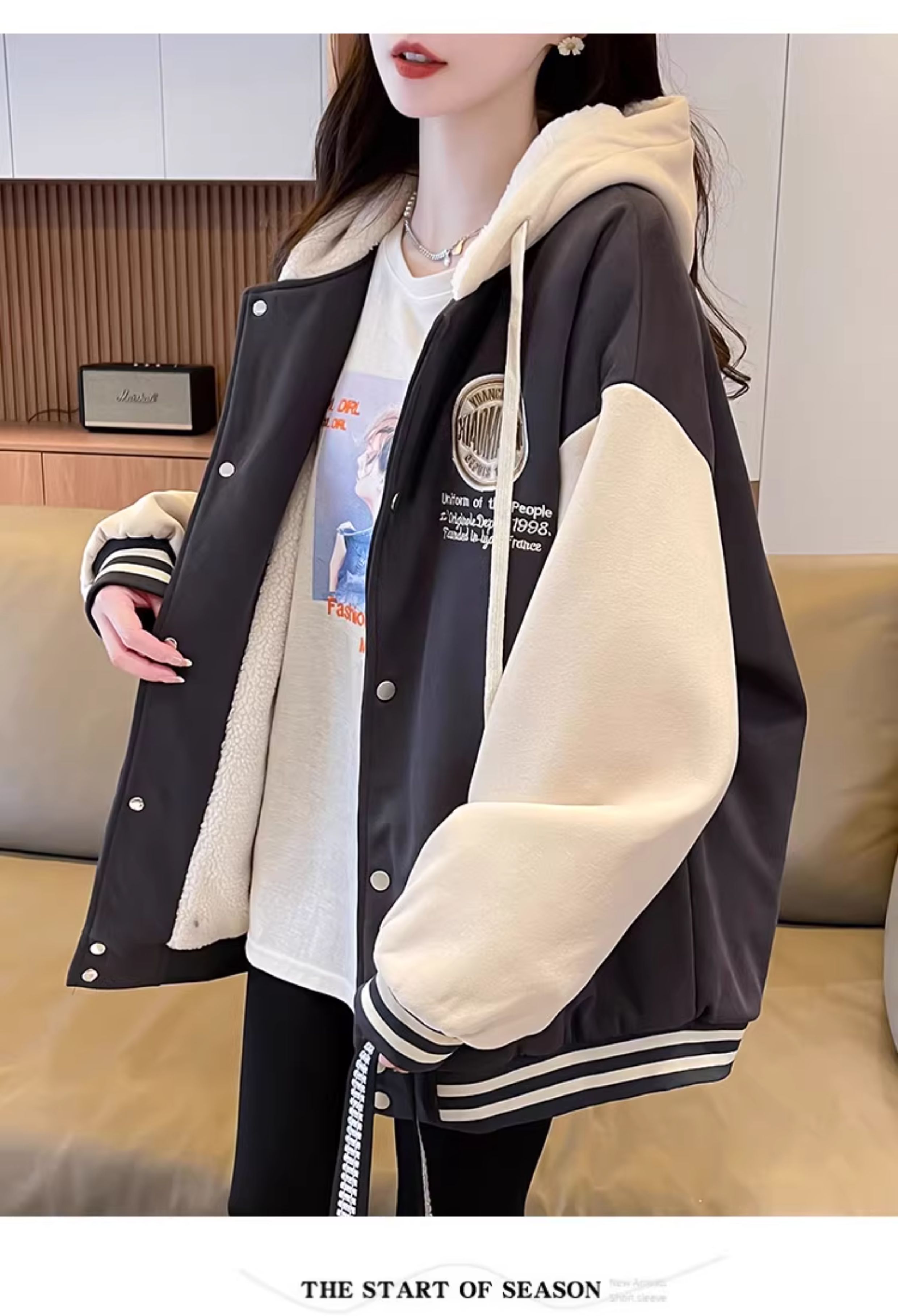 羊羔毛棒球服棉服女秋冬季加絨加厚衛衣2025新款初中學生夾克外套