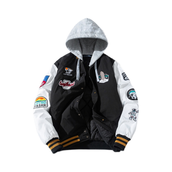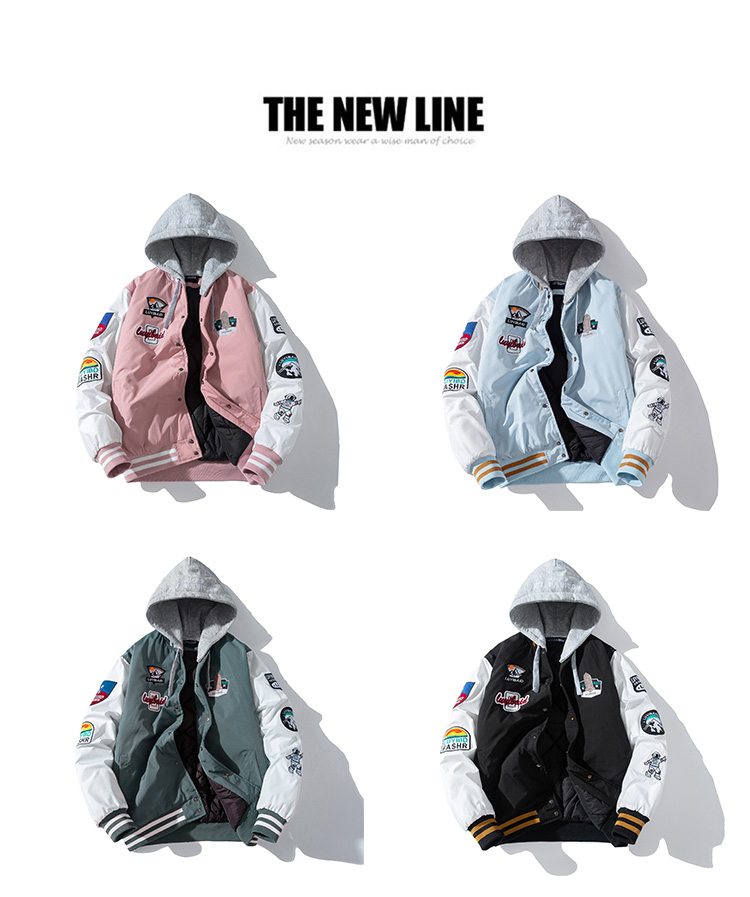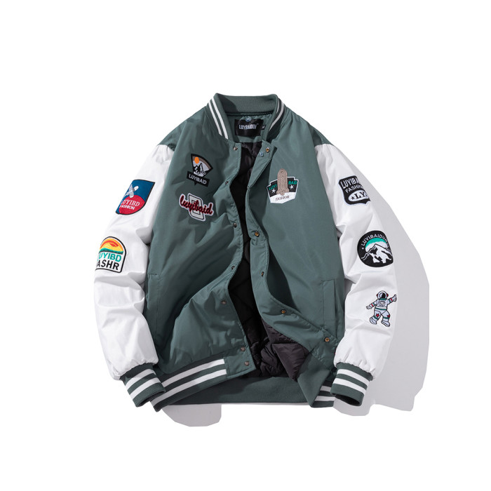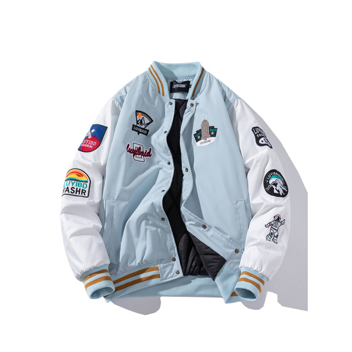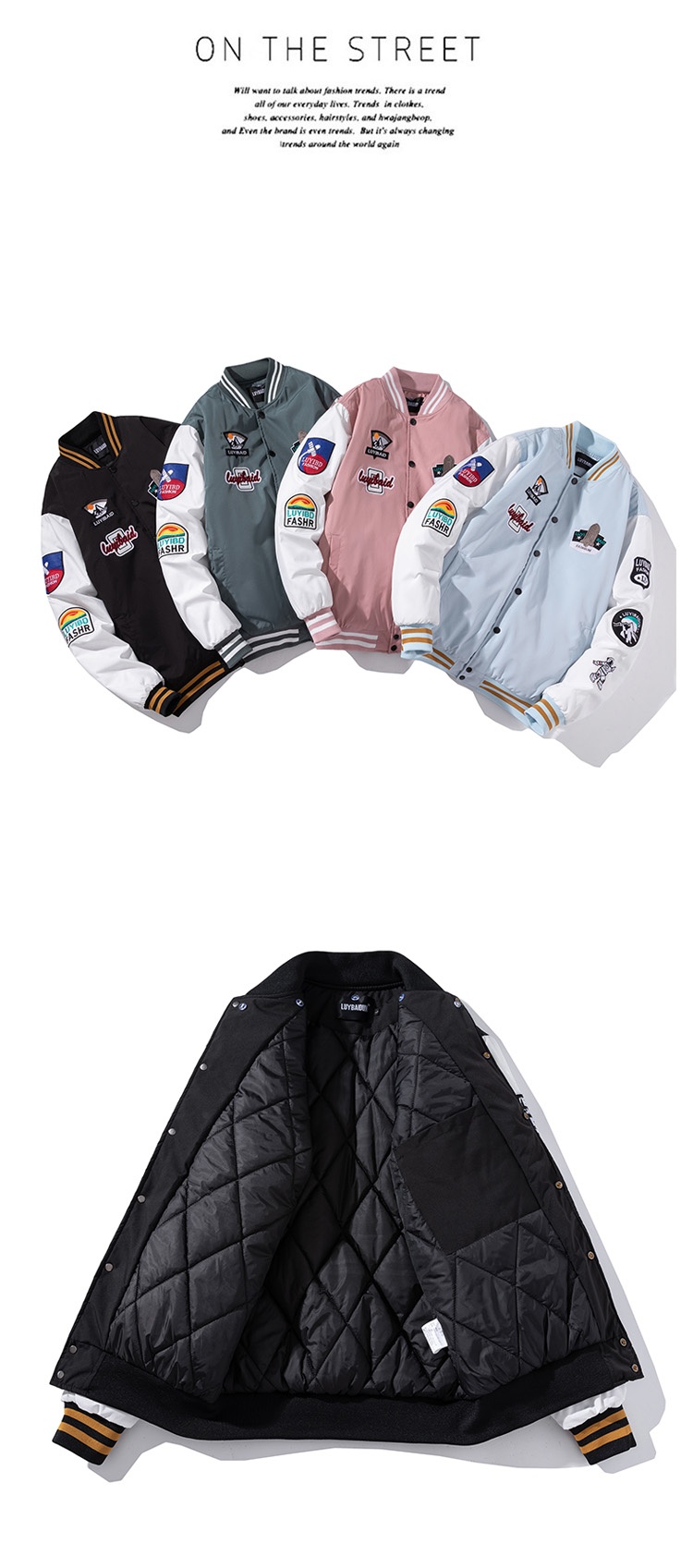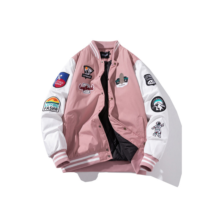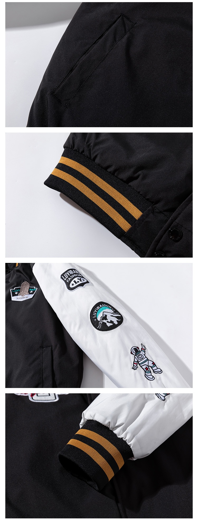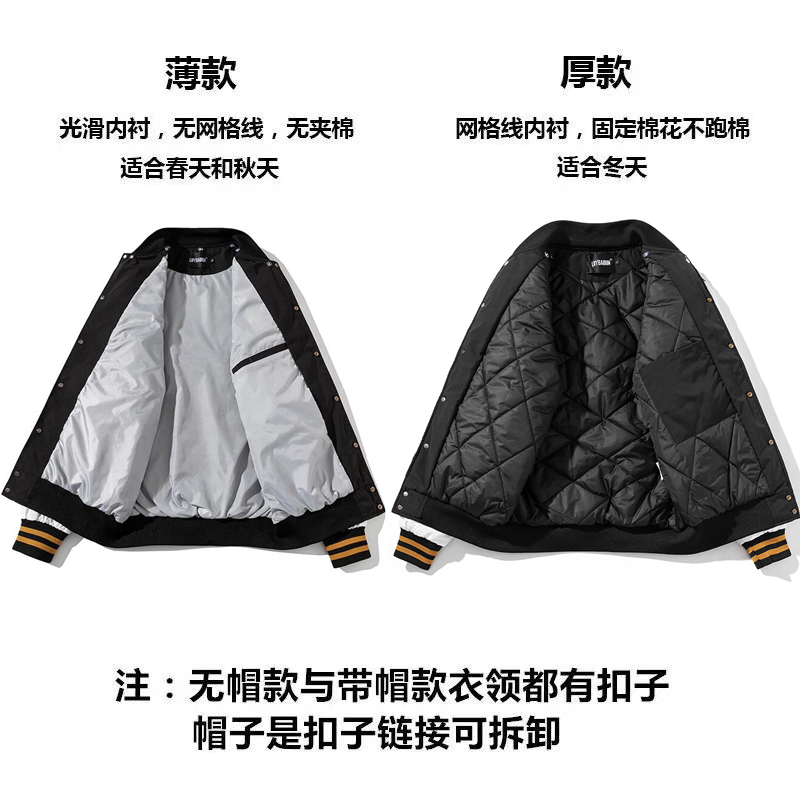 春秋冬季美式寬松刺綉棒球服男女情侶潮牌加厚夾棉飛行員夾克外套