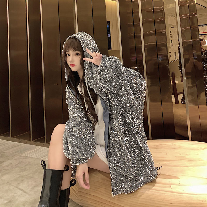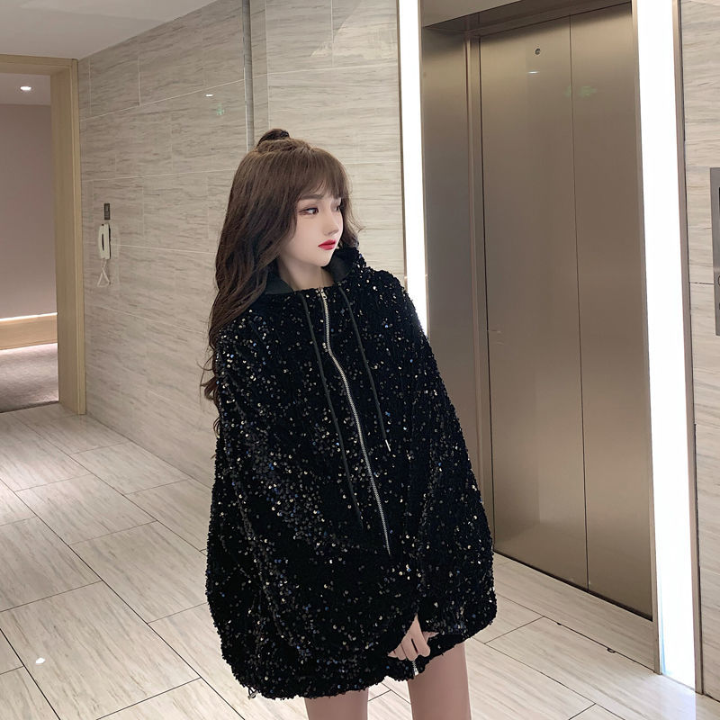 歐貨炸街星空亮片外套女2025秋季新款重工絲絨刺綉bf風寬松外套潮