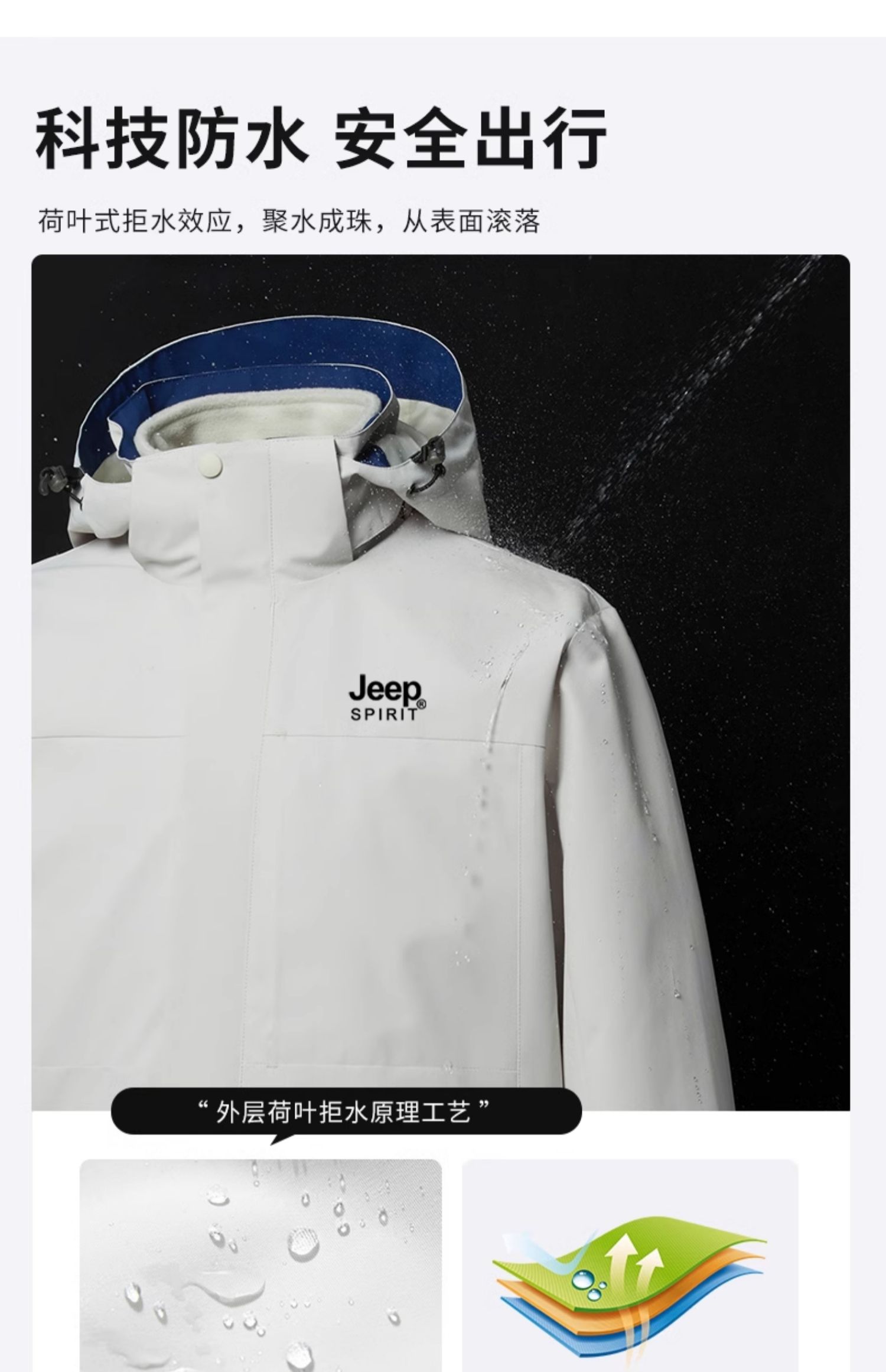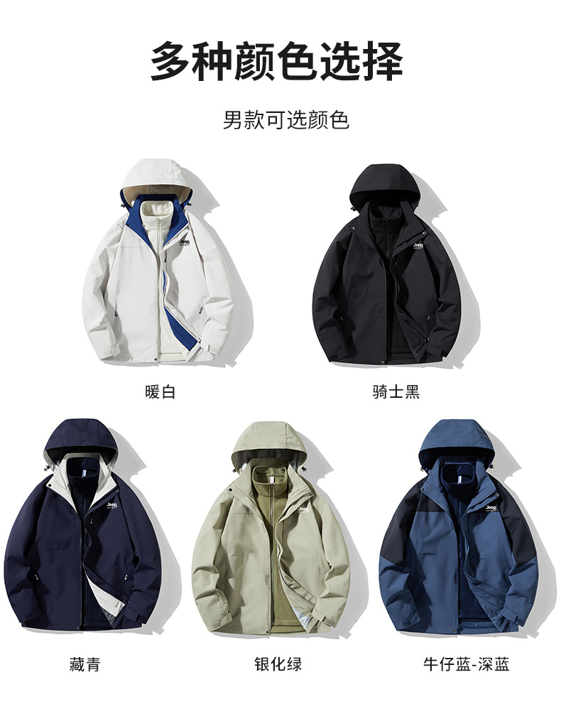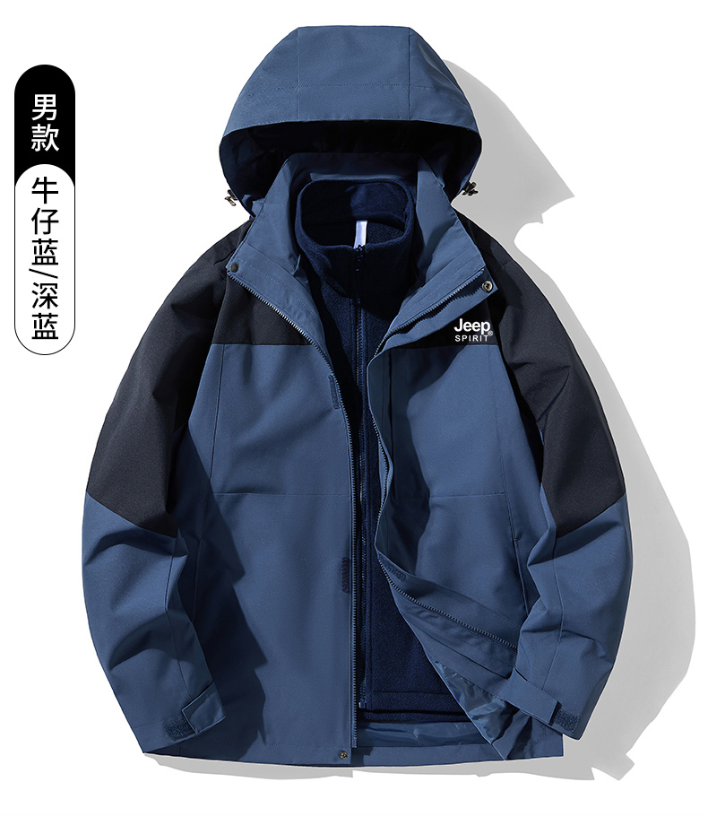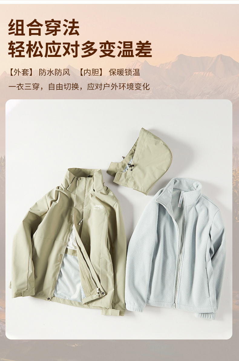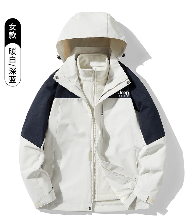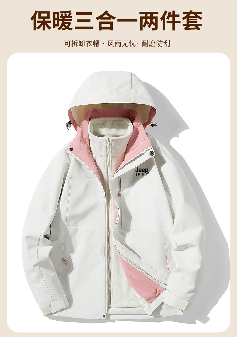 JEEP沖鋒衣男女款春秋2025新款三合一可拆卸防風防水冬季加厚外套