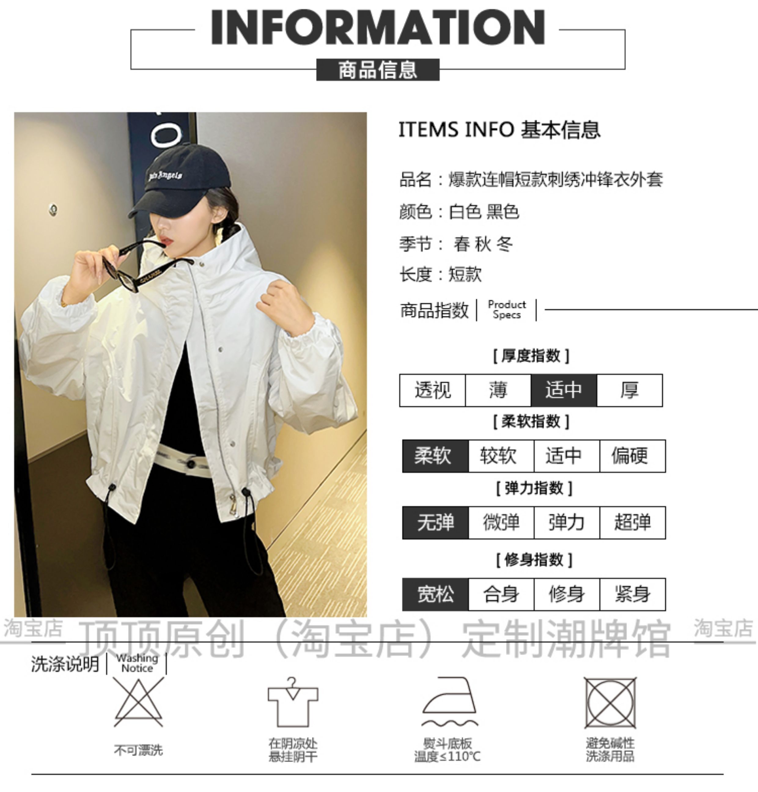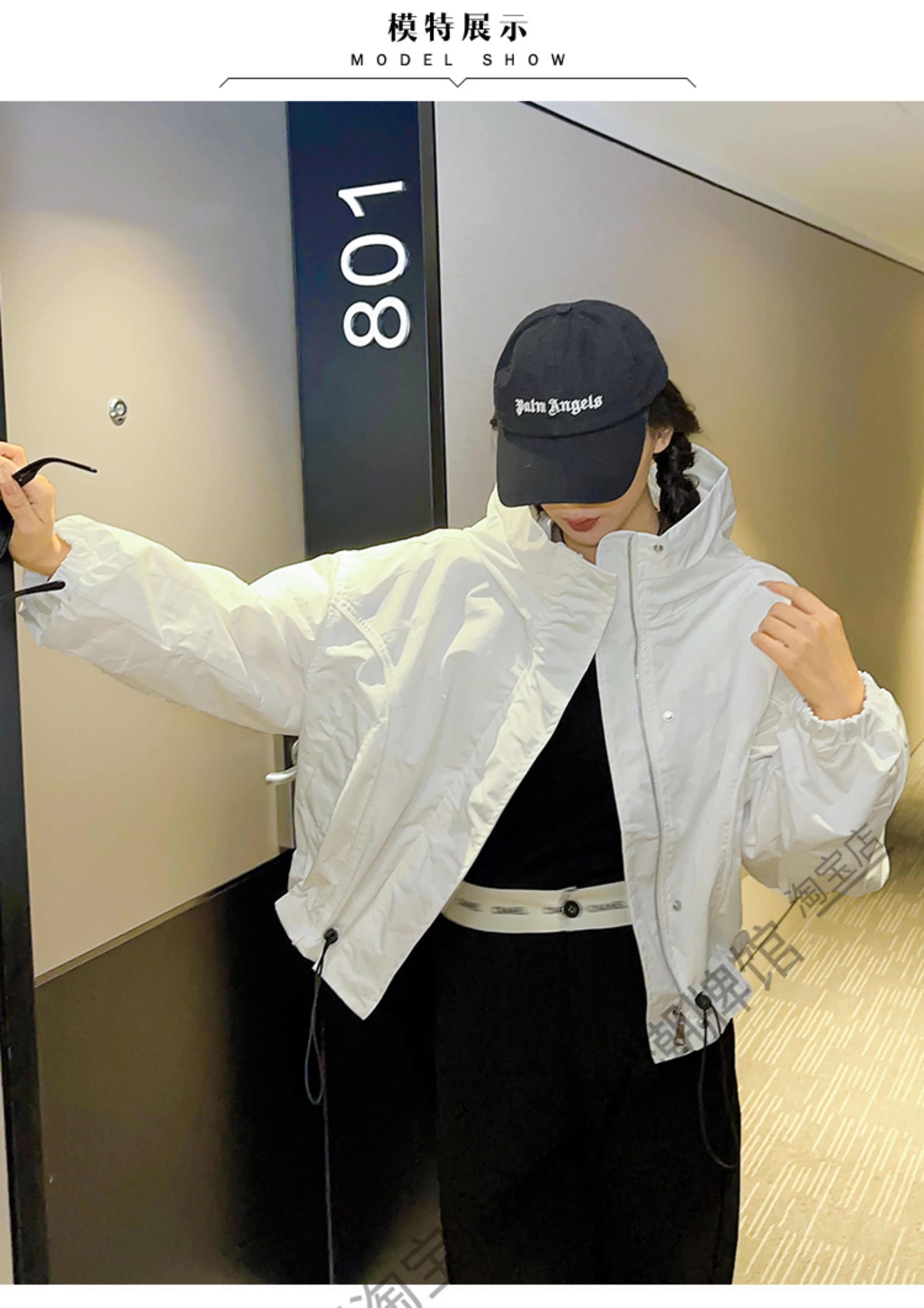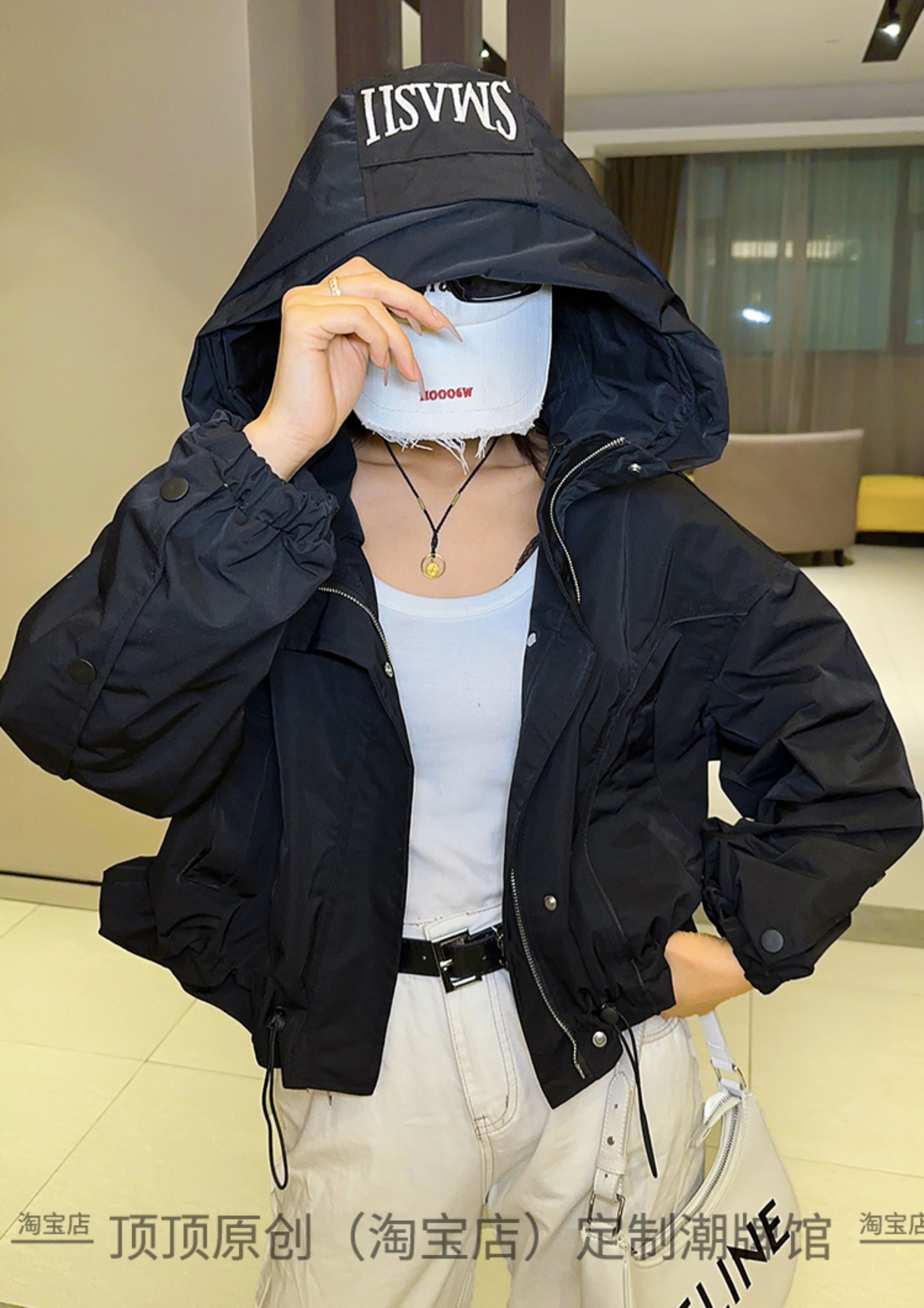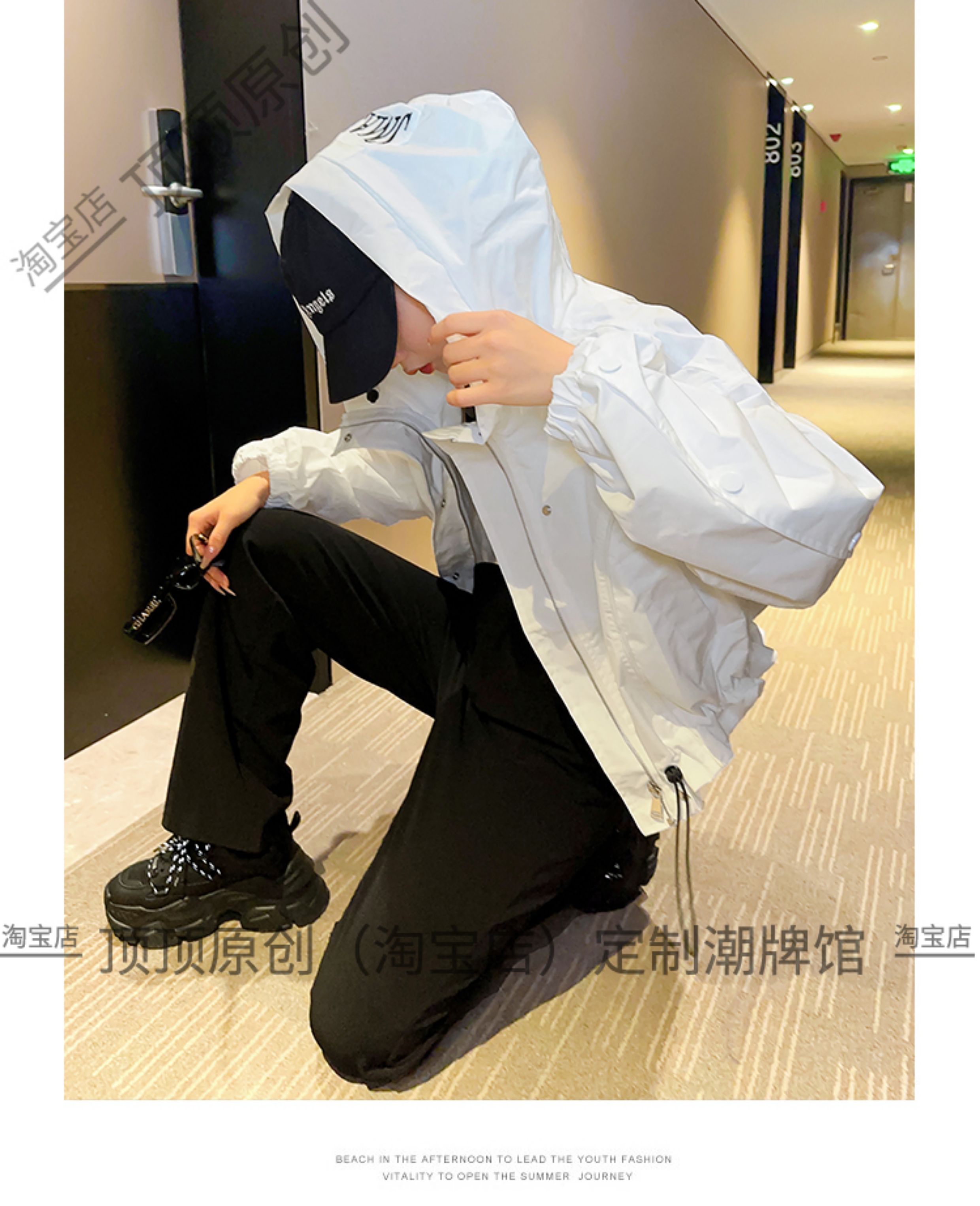 短款刺綉高級感沖鋒衣外套女春秋爆款連帽時髦夾克小個子寬松上衣