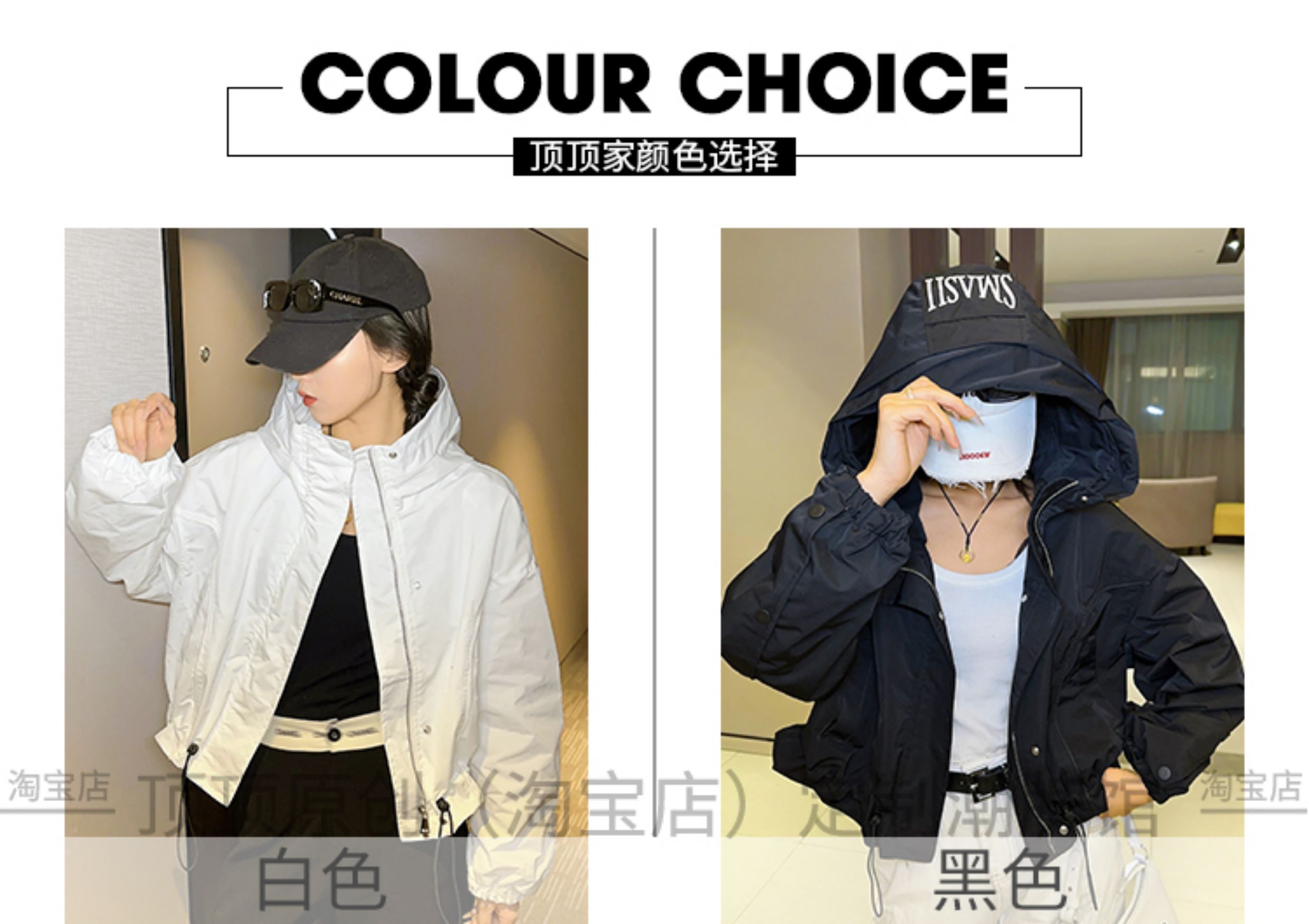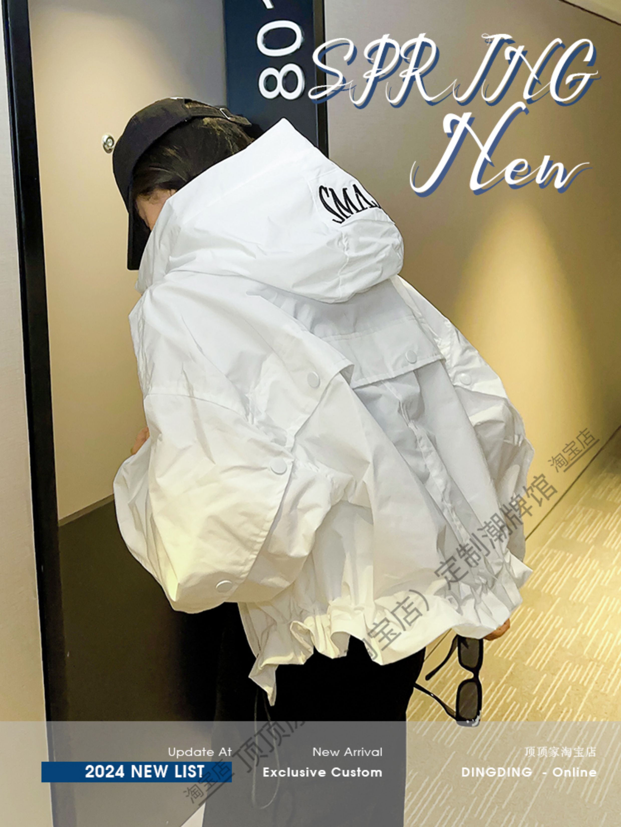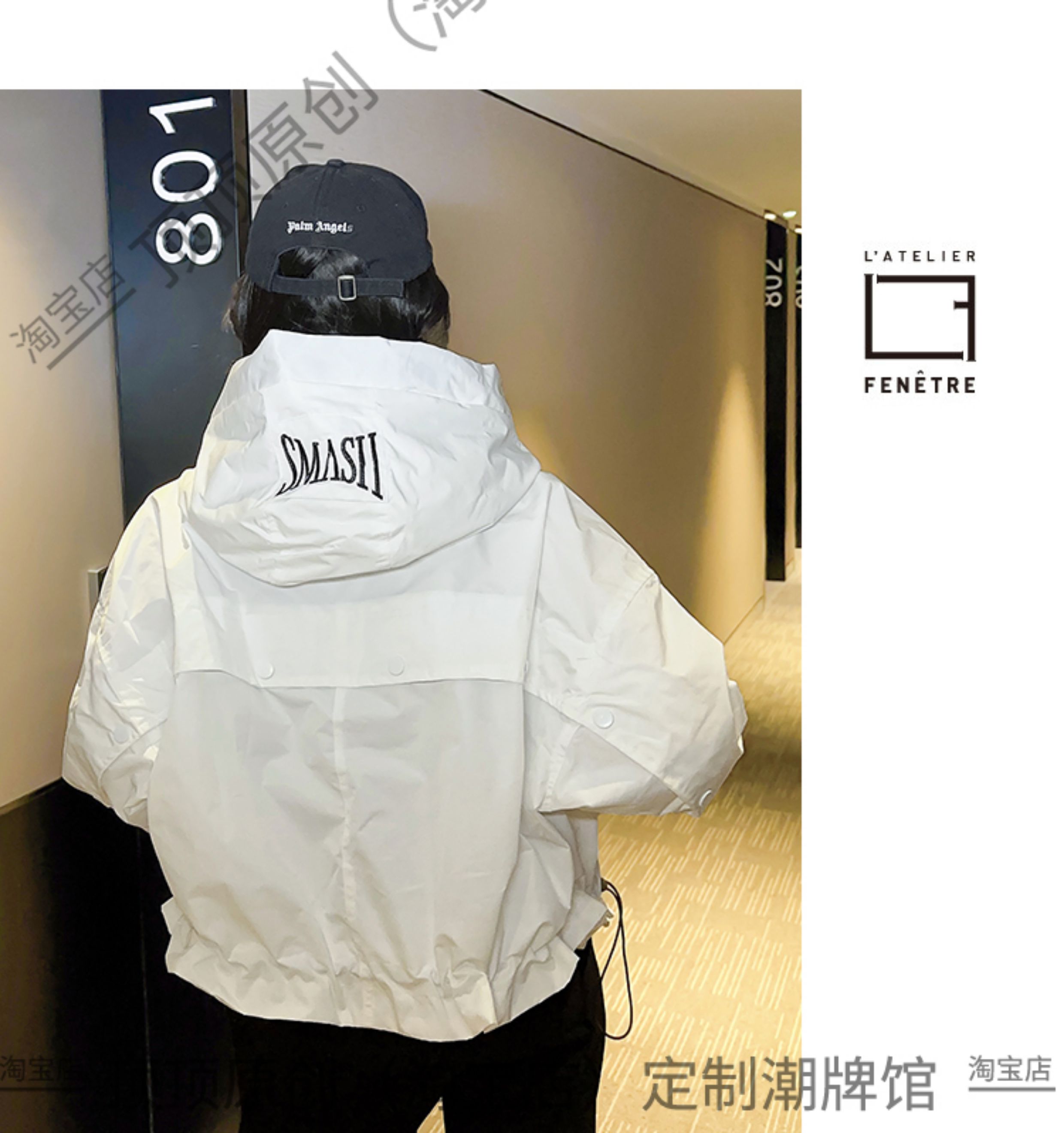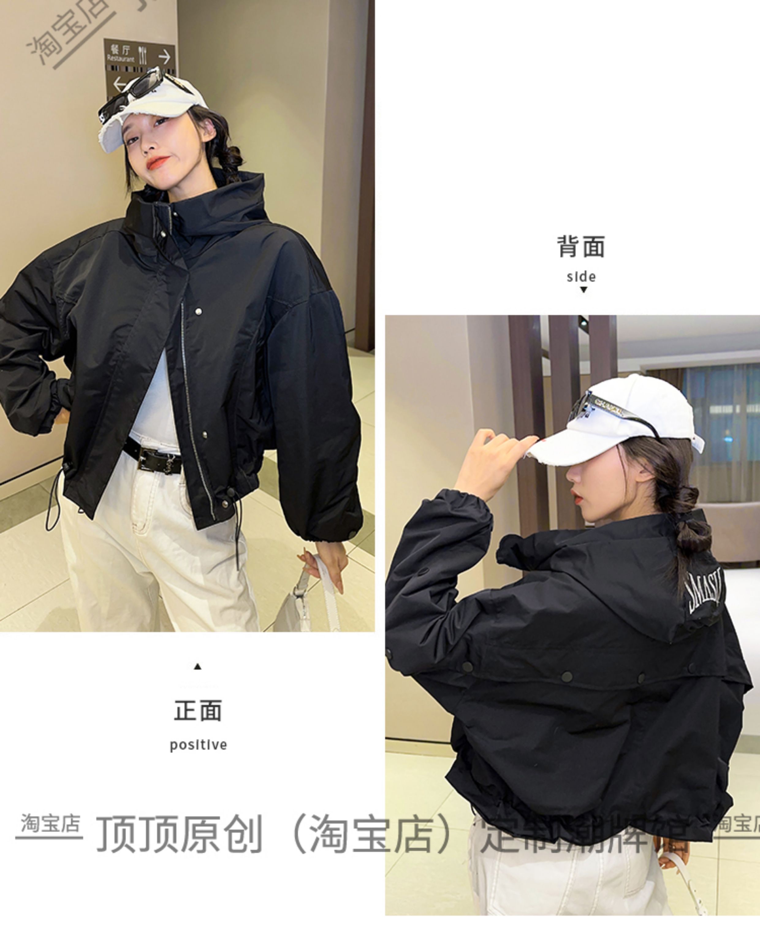短款刺綉高級感沖鋒衣外套女春秋爆款連帽時髦夾克小個子寬松上衣