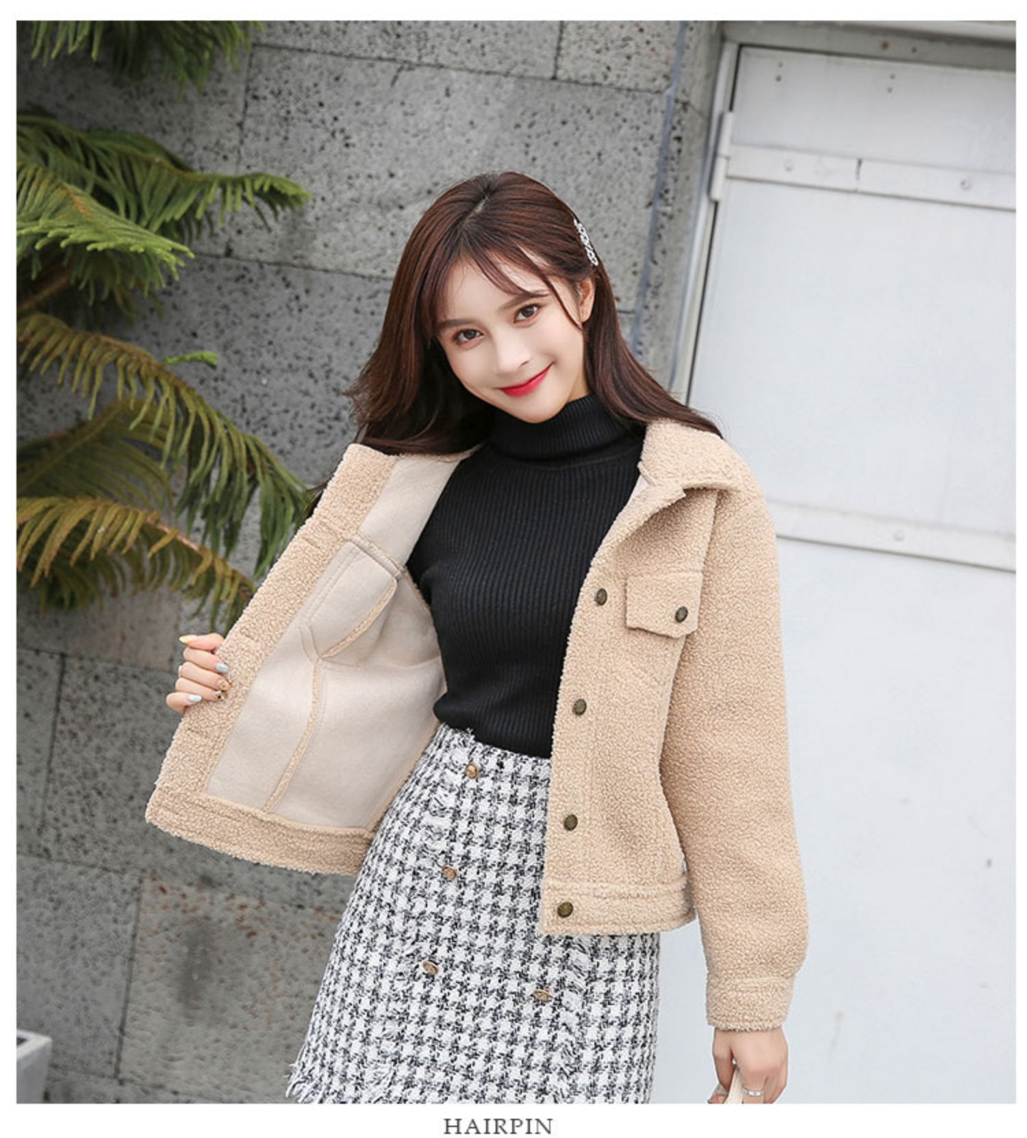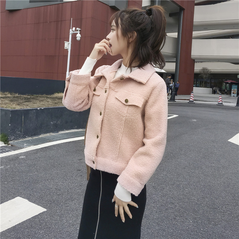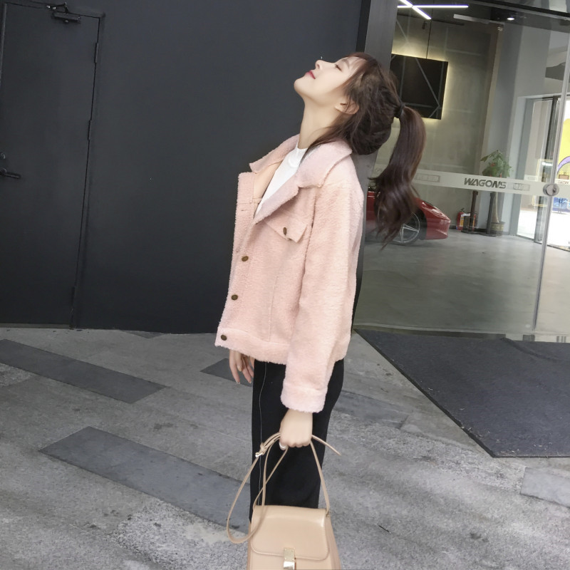 2025秋冬新款羊羔毛絨加厚外套女短款修身韓版皮毛一體小個子夾克