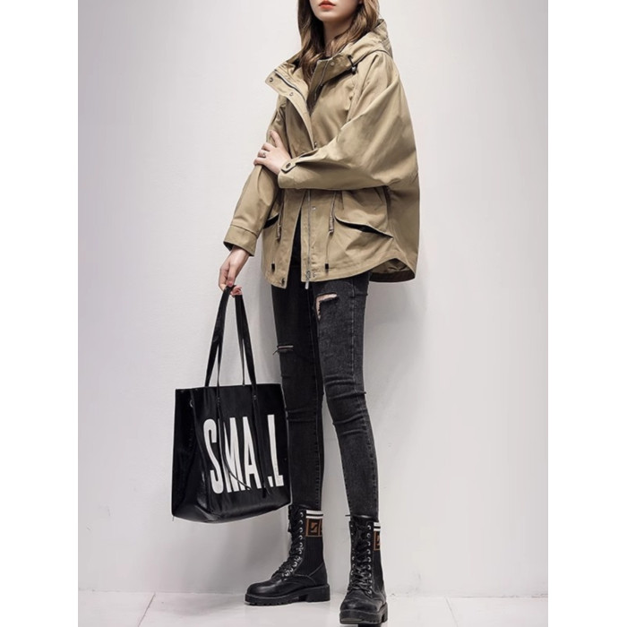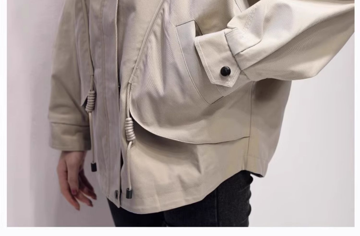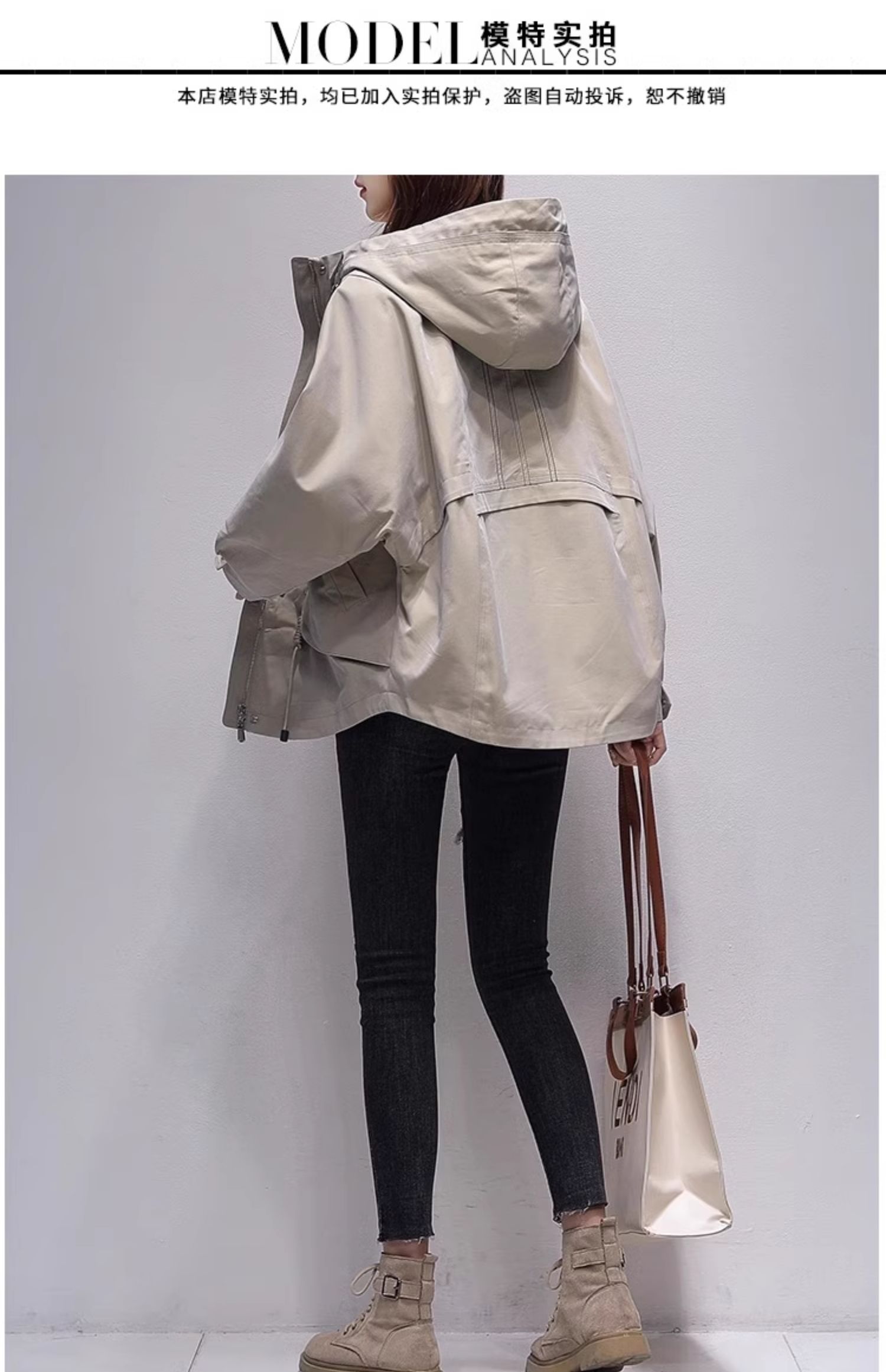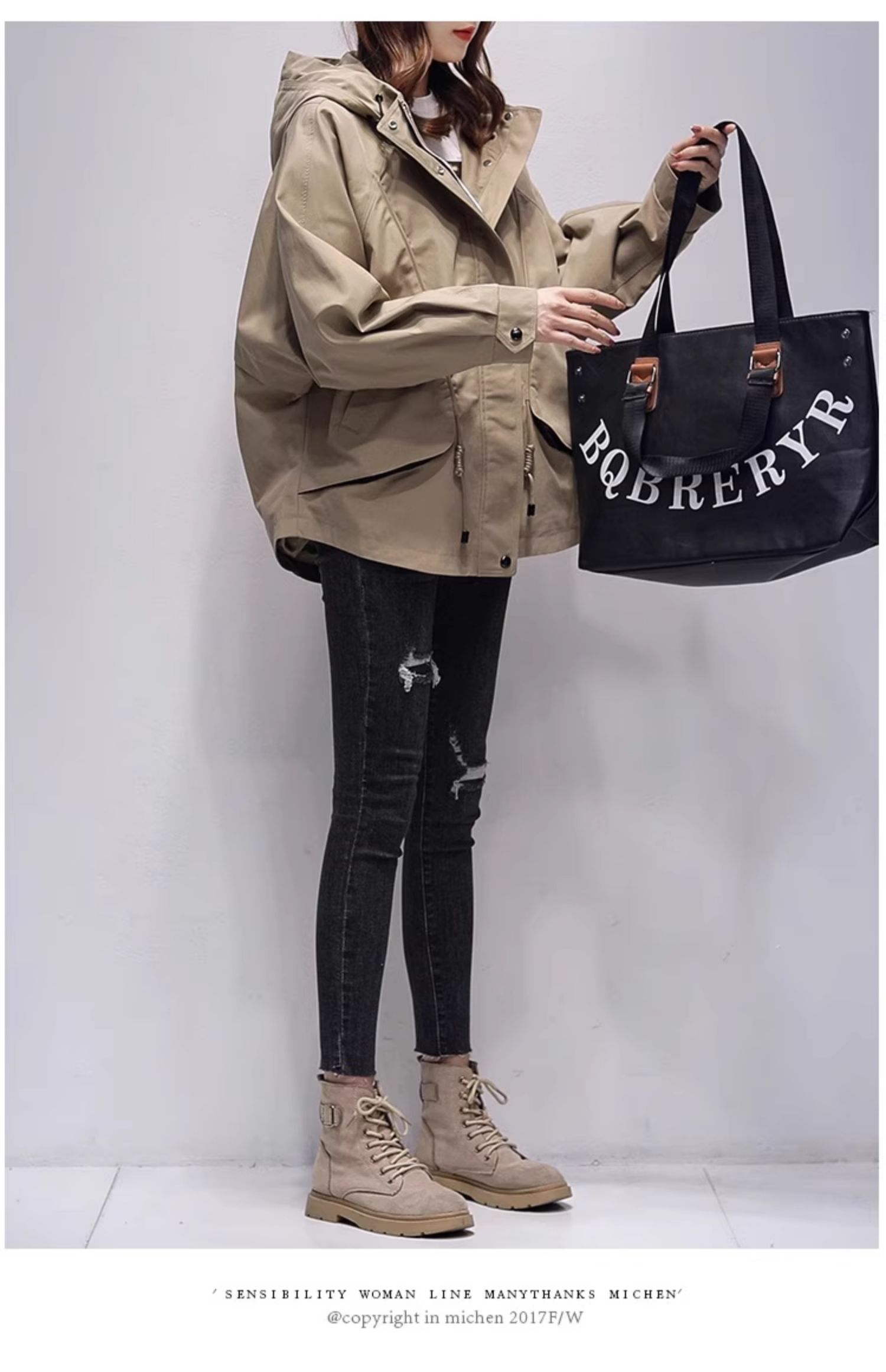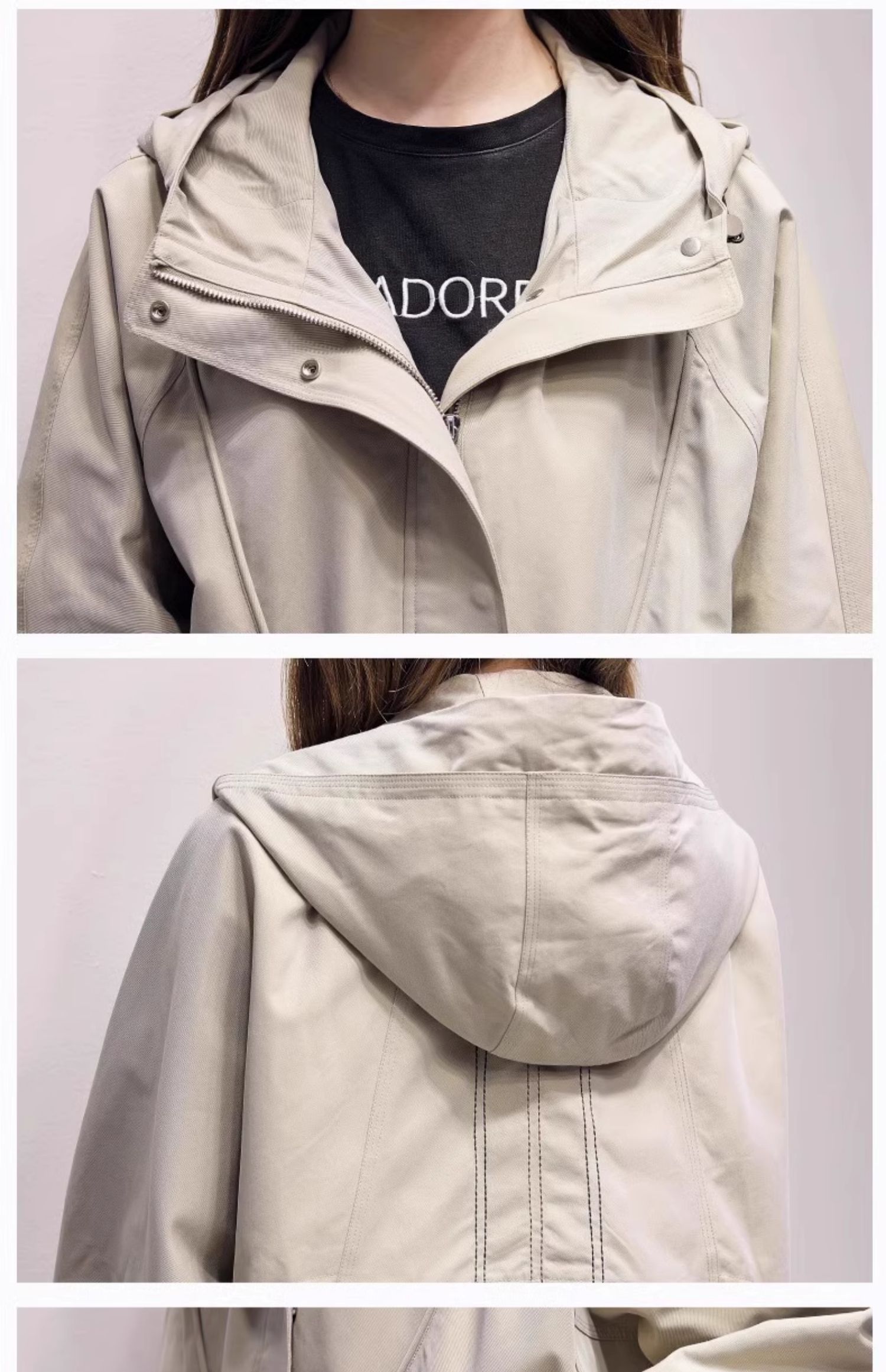 歐貨沖鋒衣女中長款連帽工裝2025年春秋新款寬松百搭氣質寬松外套