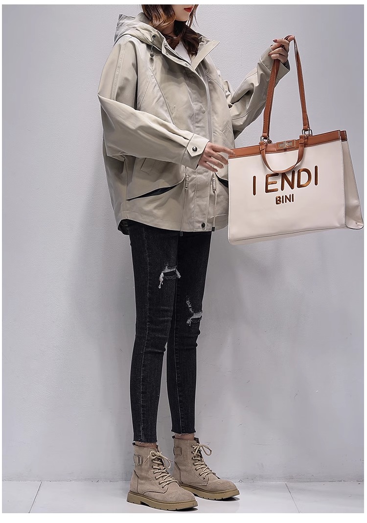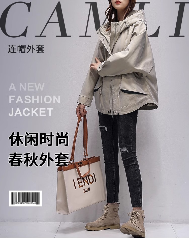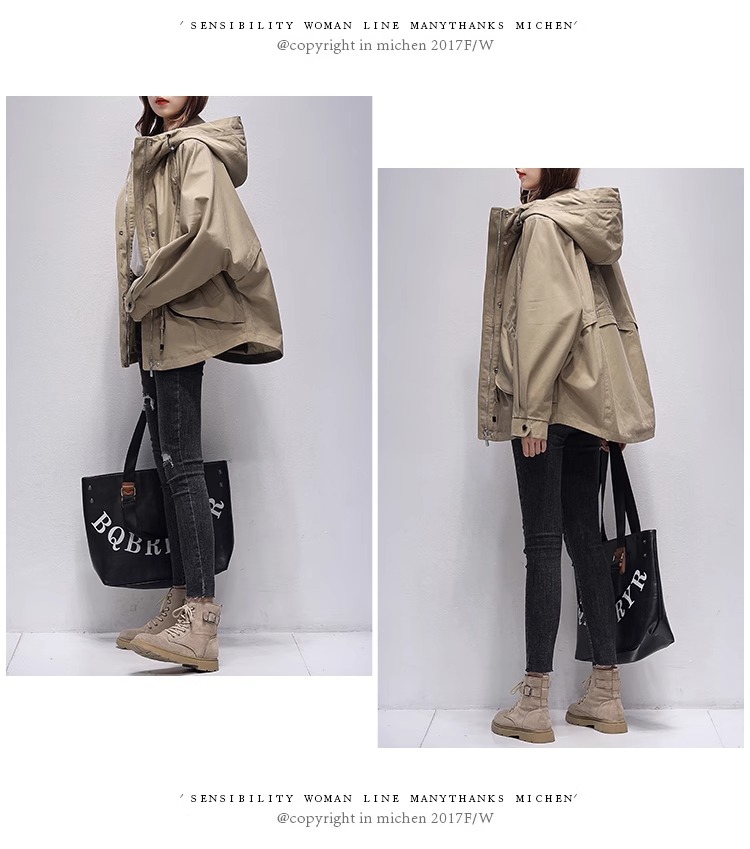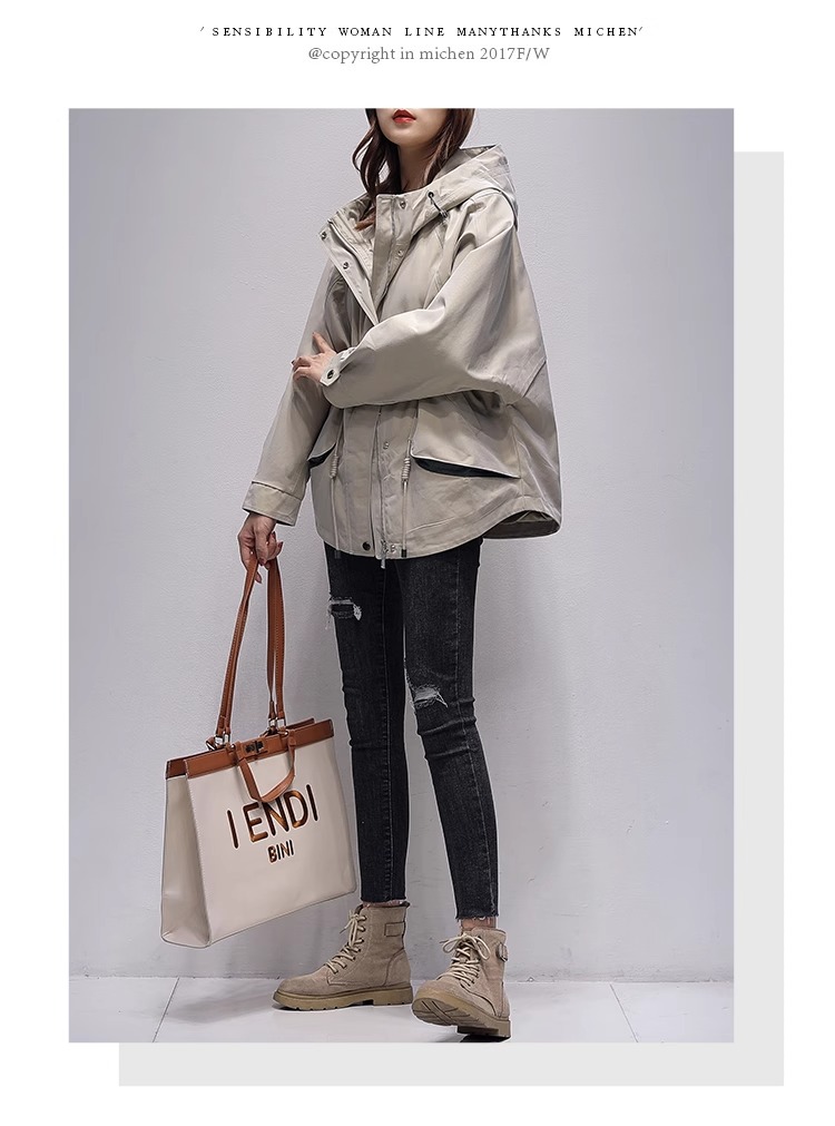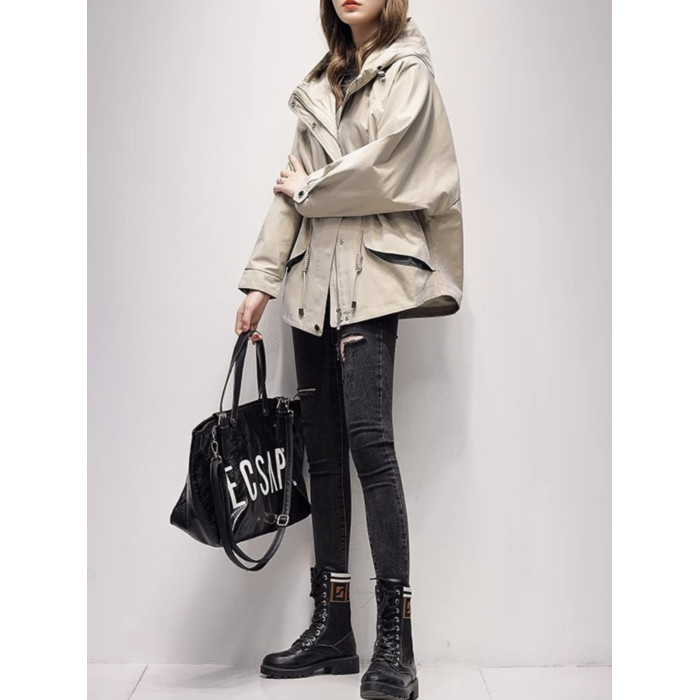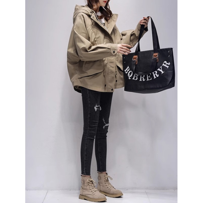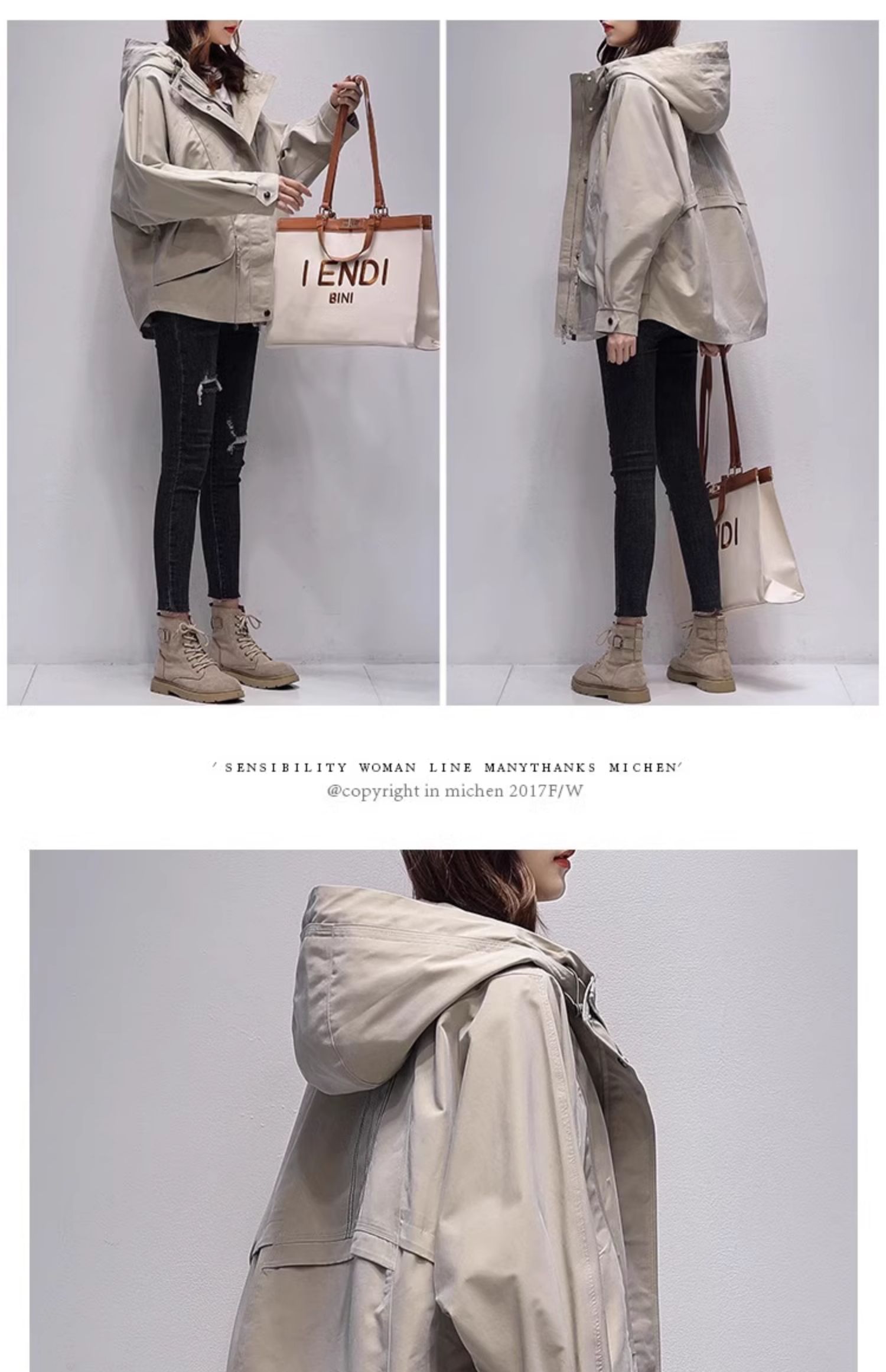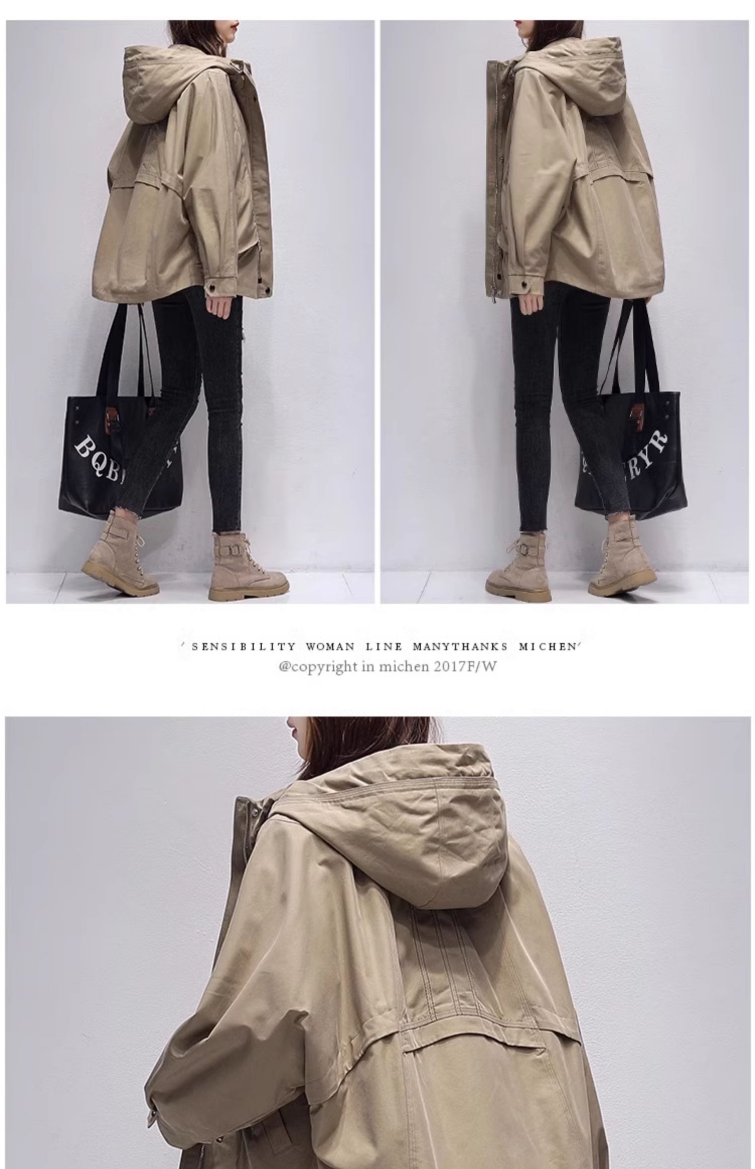 歐貨沖鋒衣女中長款連帽工裝2025年春秋新款寬松百搭氣質寬松外套