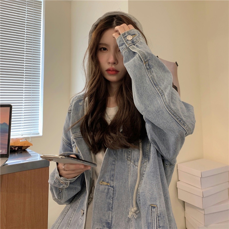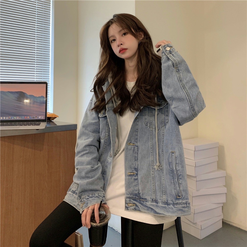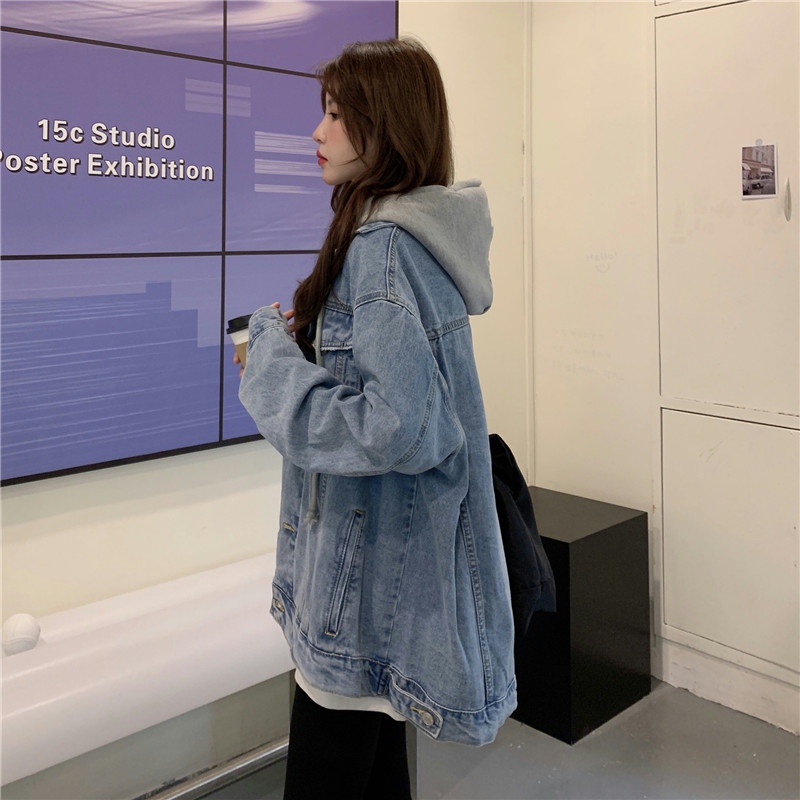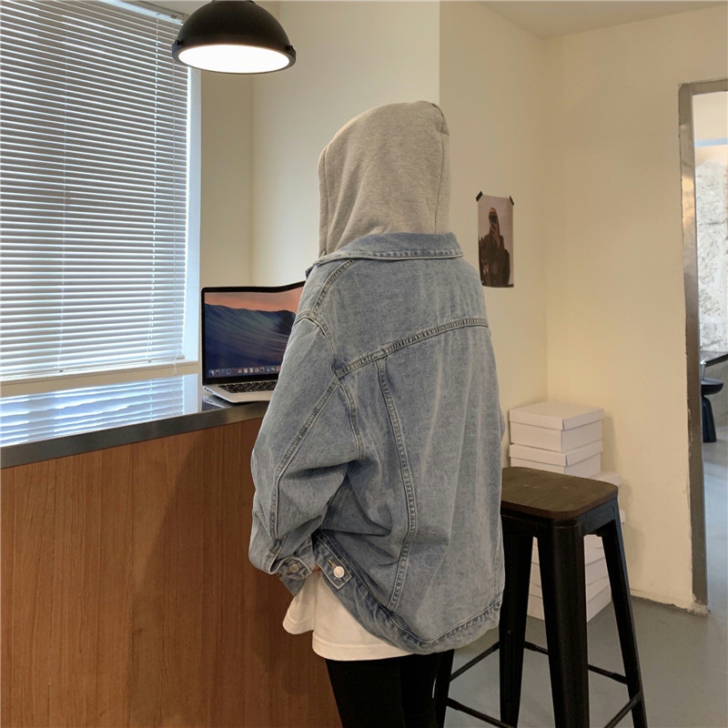 大碼女裝2024秋冬新款胖mm顯瘦高級感chic鹽系炸街假兩件牛仔外套