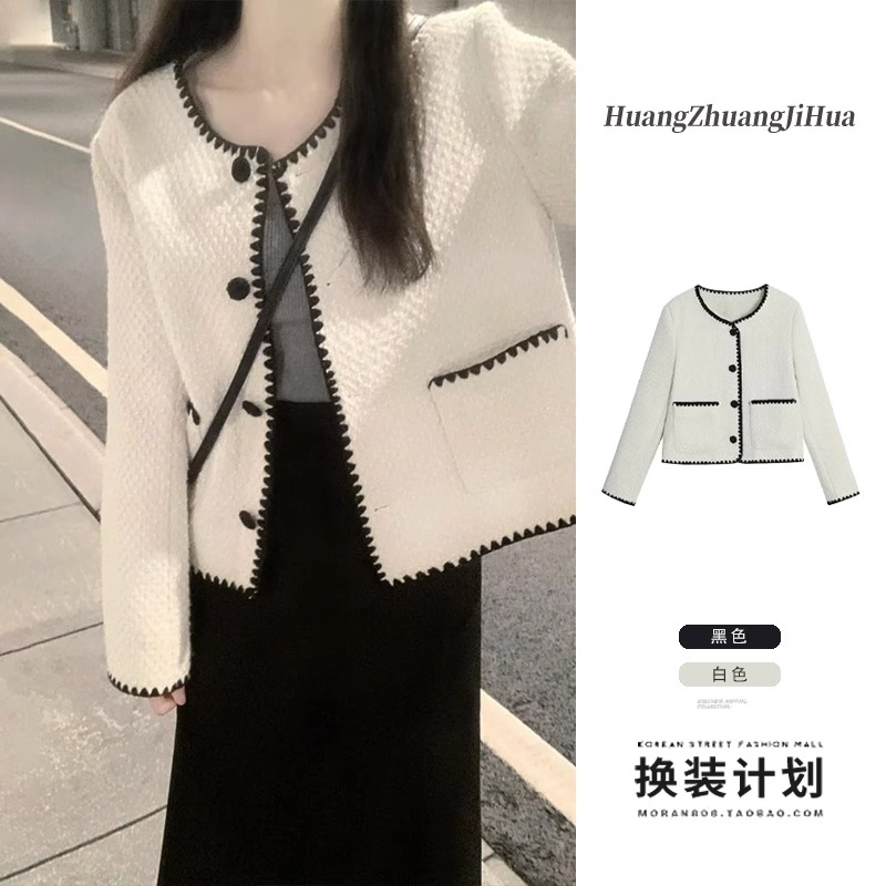 白色名媛氣質小香風外套女短款2025春新款法式小個子今年流行上衣