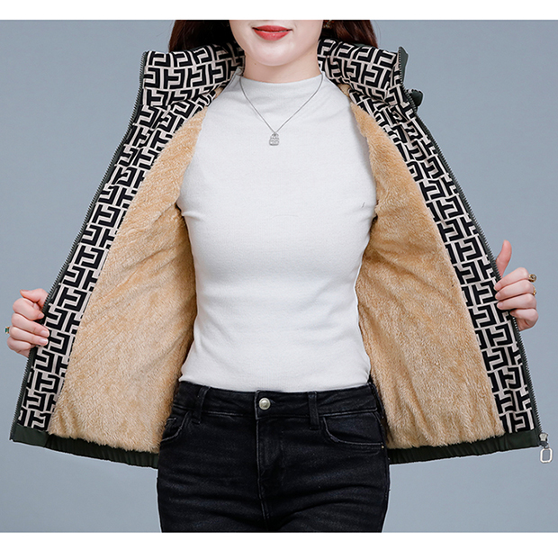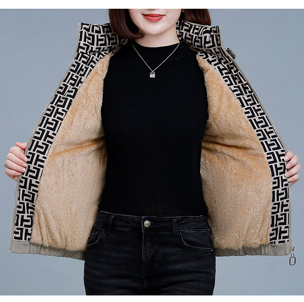 啄木鳥加絨棉衣女冬季2025新款中年媽媽洋氣冬裝棉服加厚棉襖外套