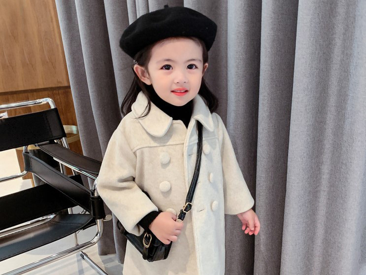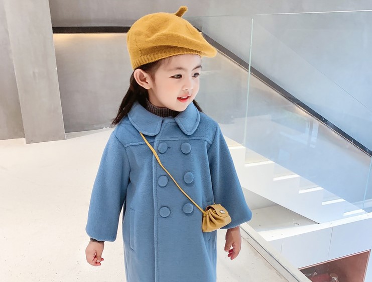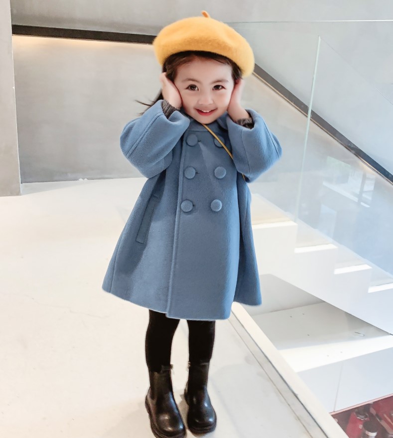 女.童雙排釦毛呢外套2024秋冬新款兒1童加厚上衣女寶寶韓版大衣潮
