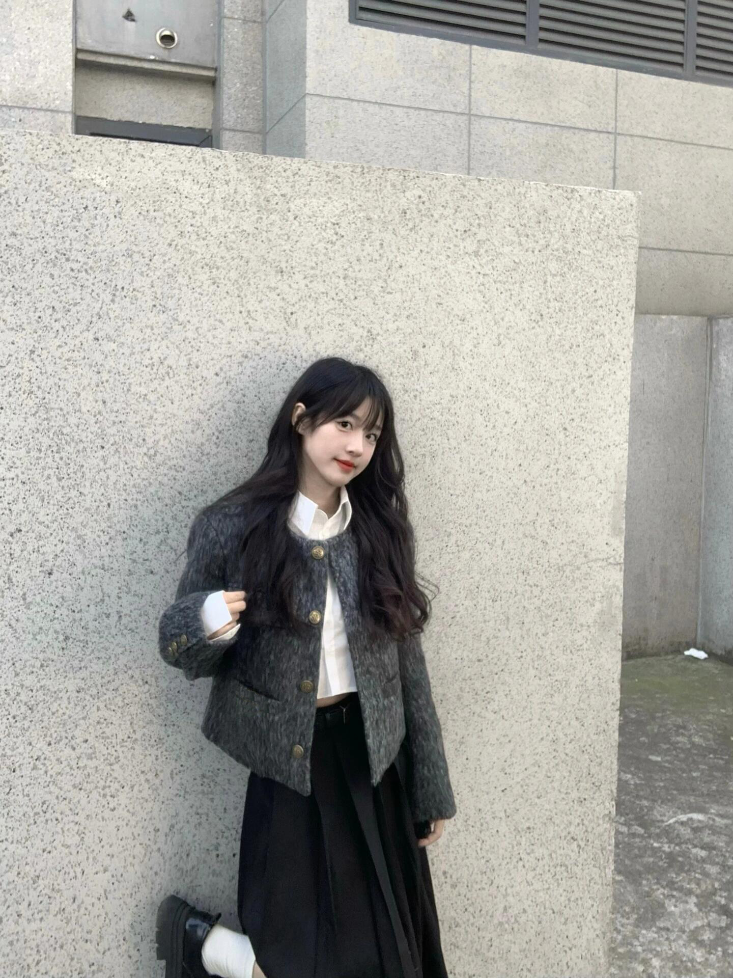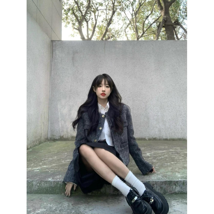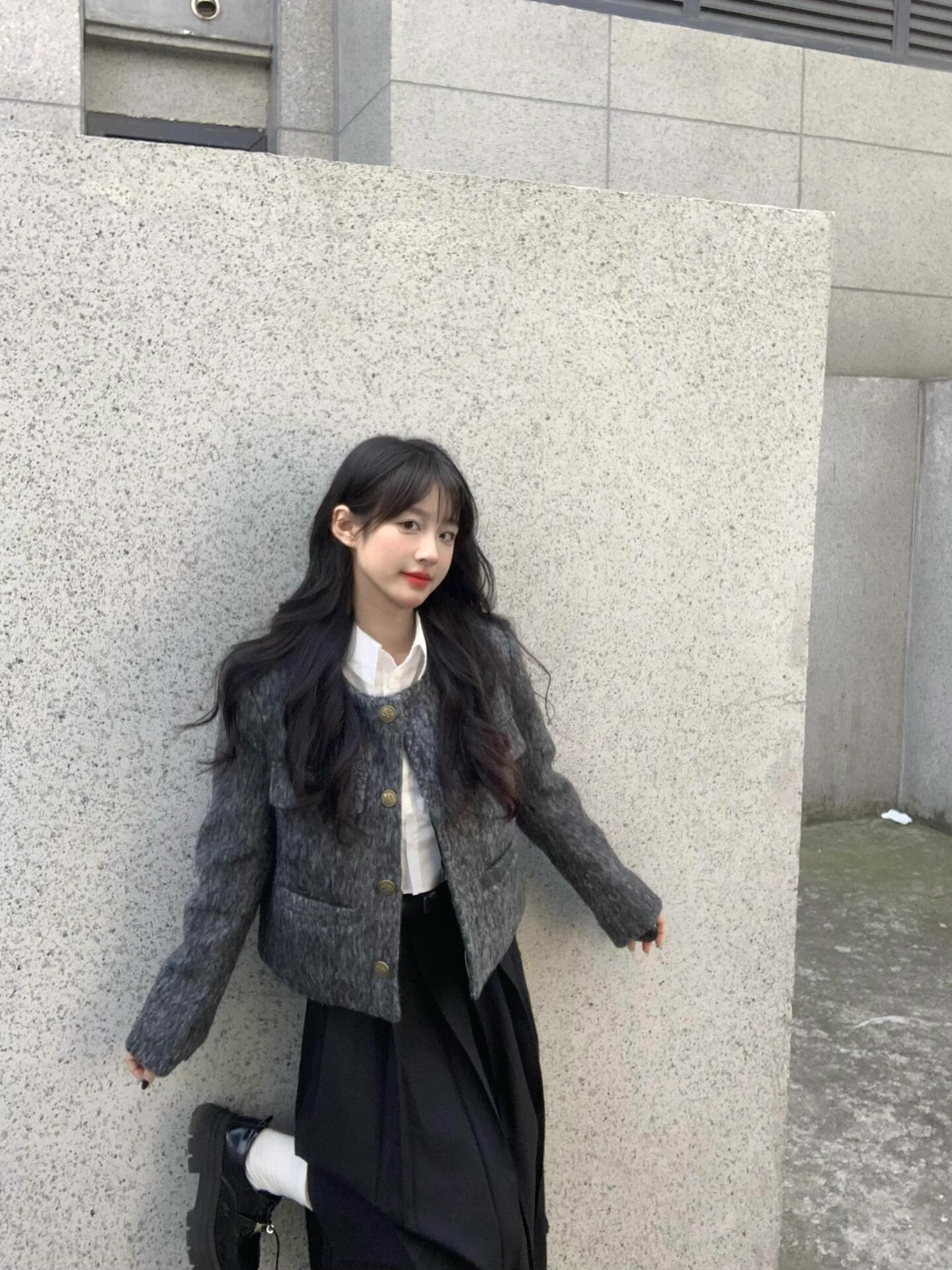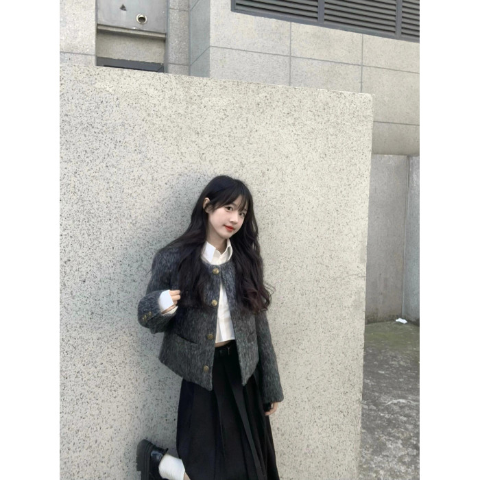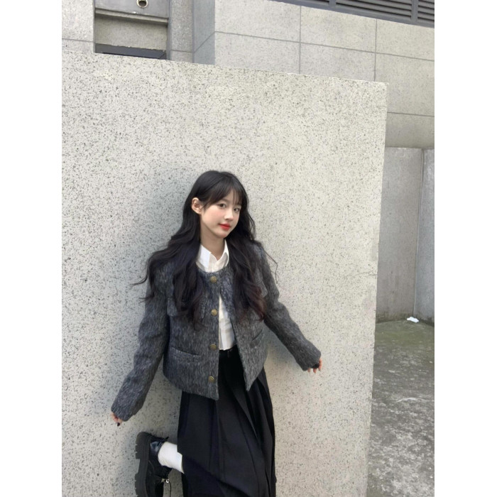 灰色小香風毛呢外套女春秋富家千金高級感小個子冬季短款夾克上衣