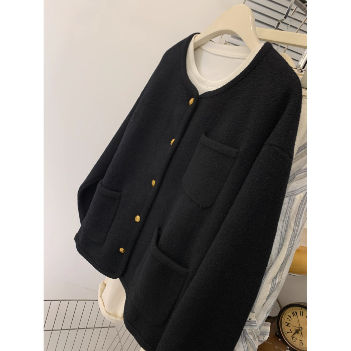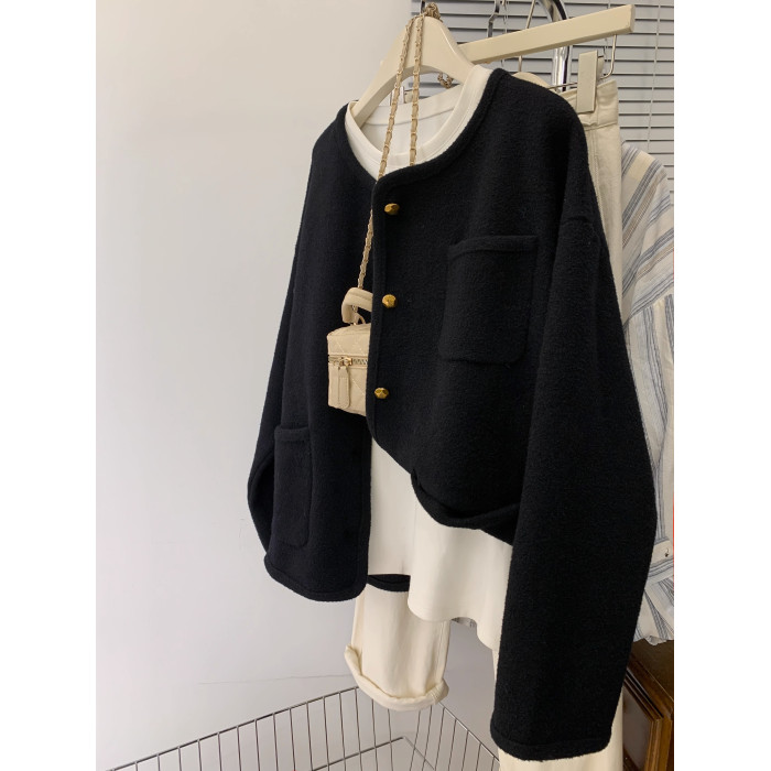 黑色小香風毛呢外套女秋冬季高級感小個子呢子2025新款爆款上衣
