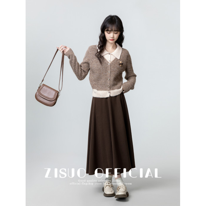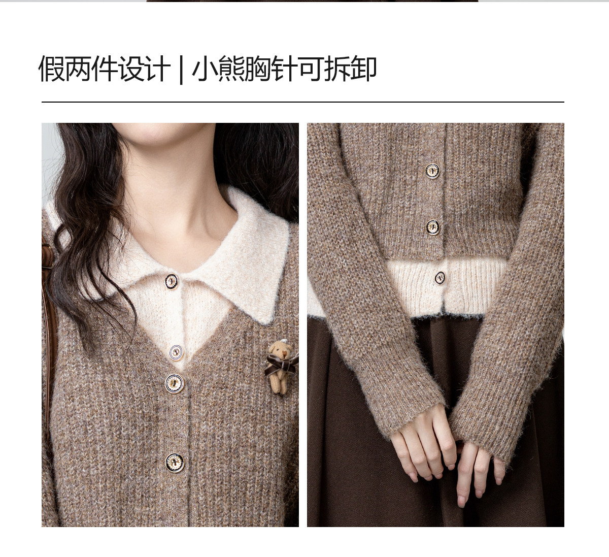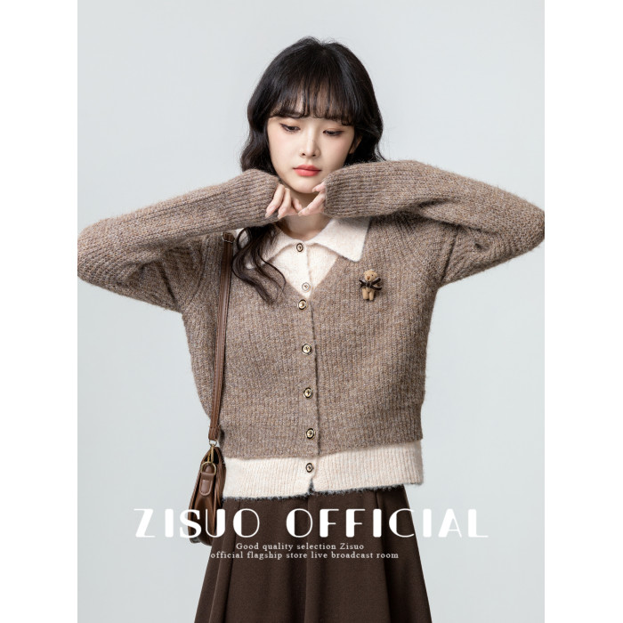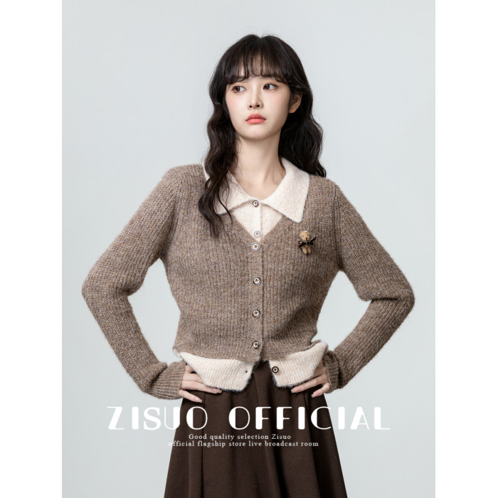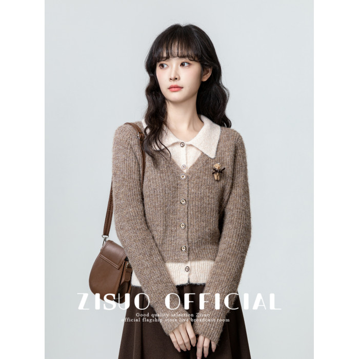 假兩件POLO領毛衣女2026春秋新款復古美拉德繙領針織開衫短款上衣