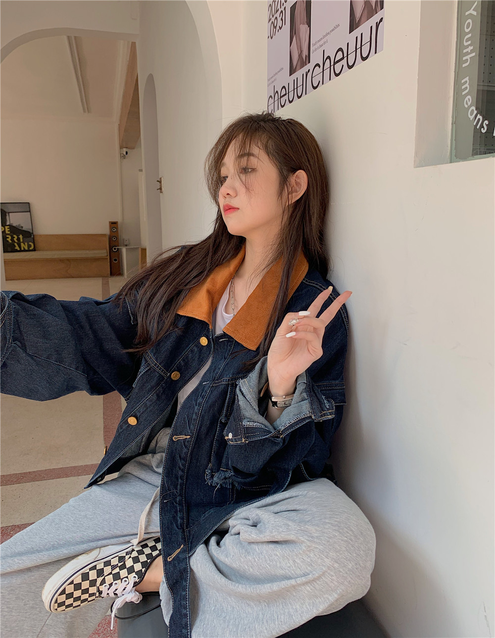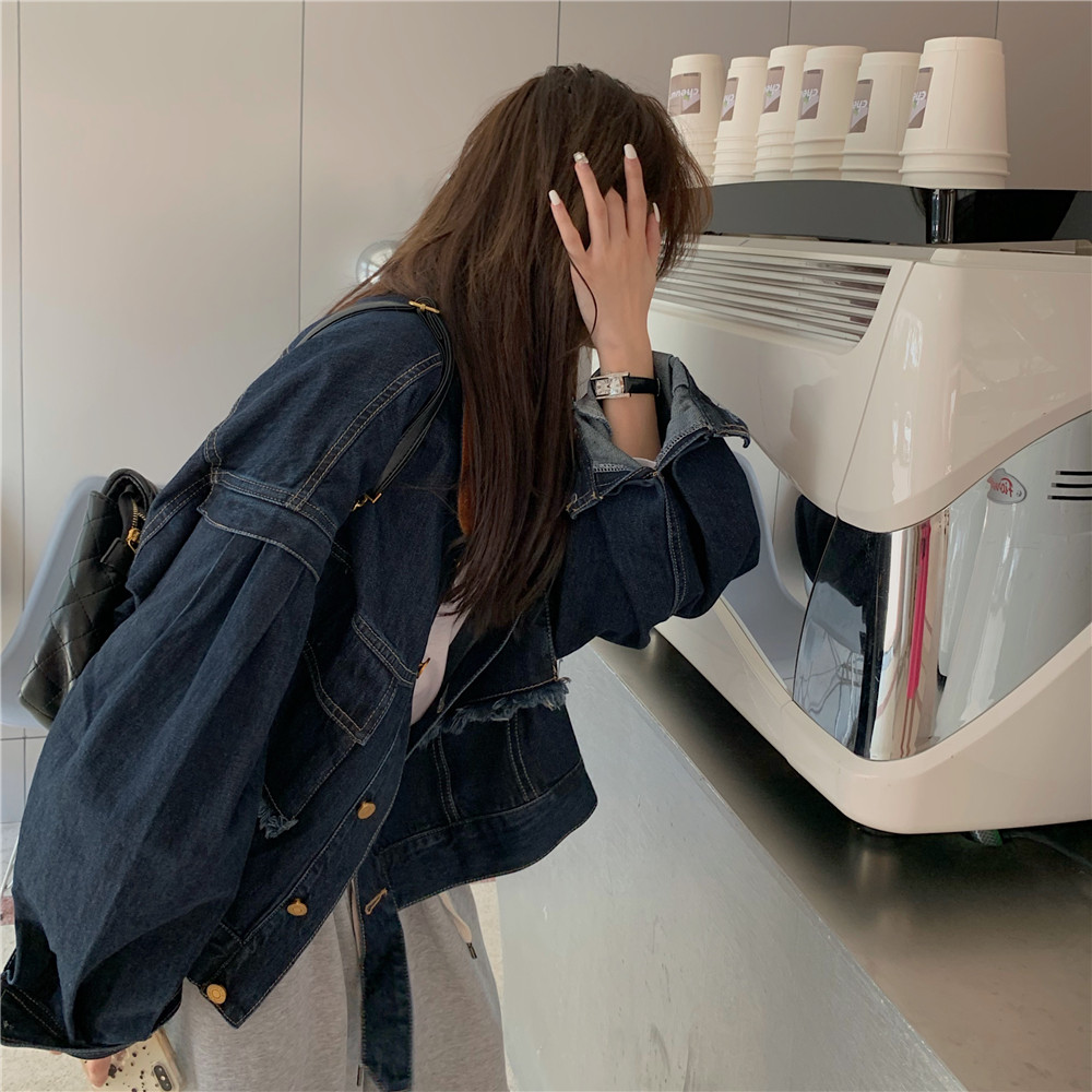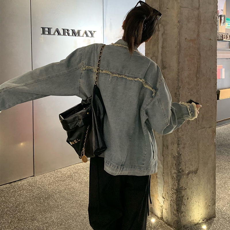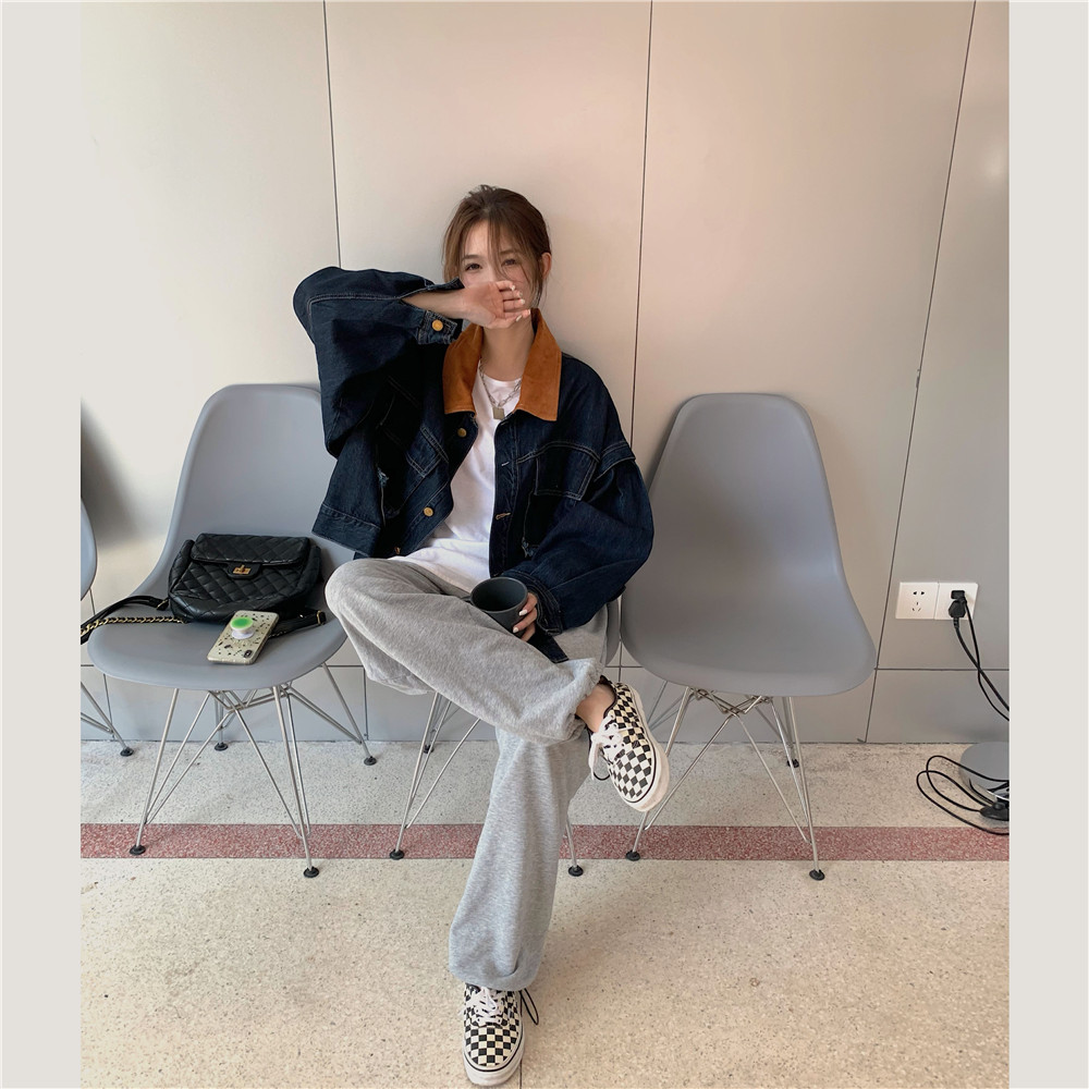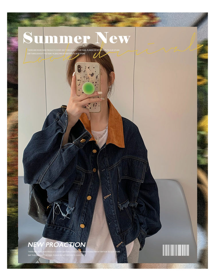 設計感燈芯絨領牛仔外套女短款秋冬大碼寬松復古百搭夾克上衣胖mm
