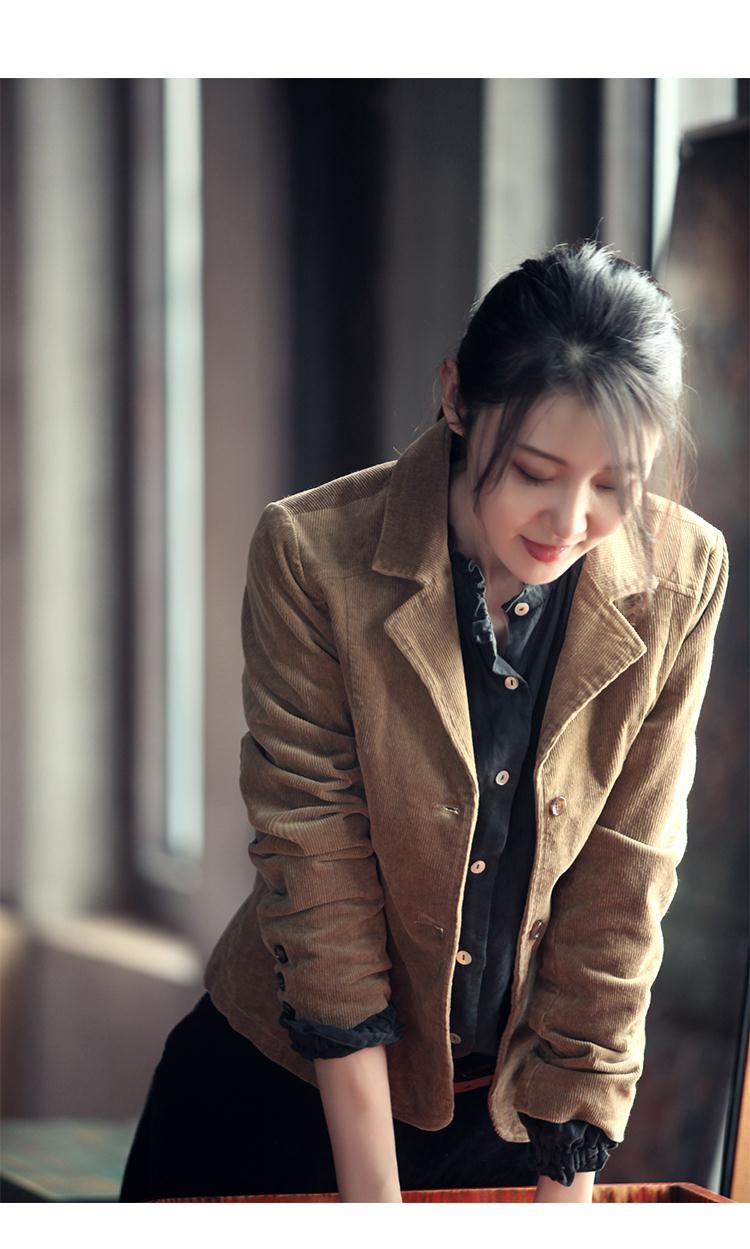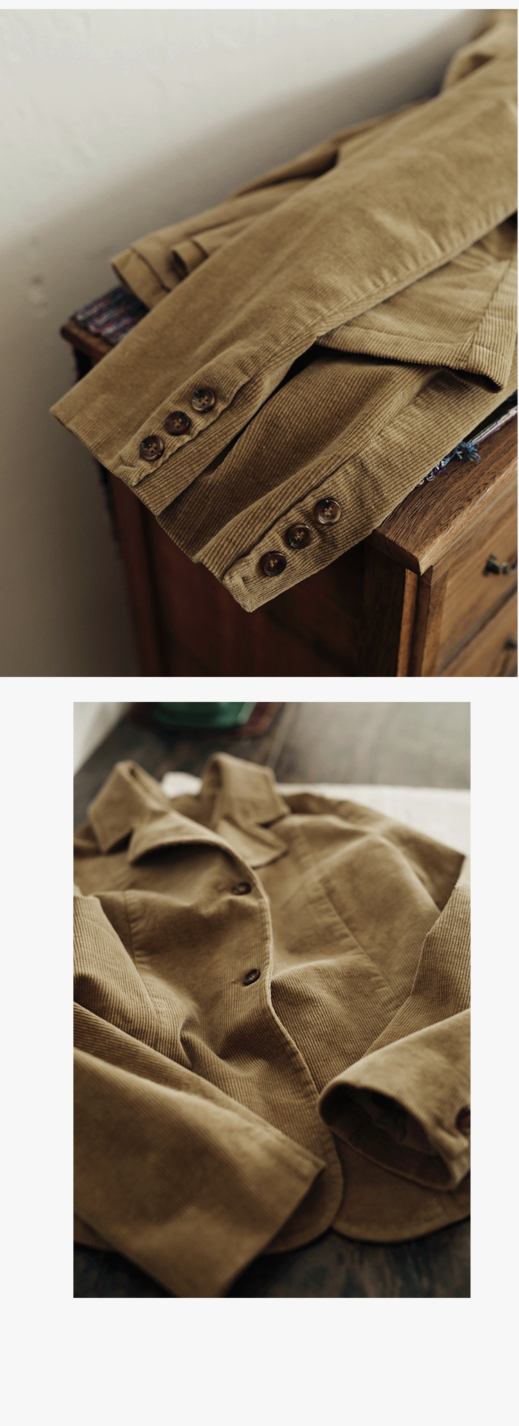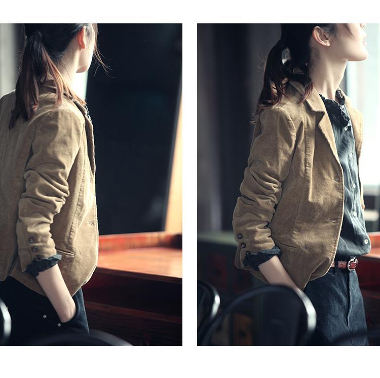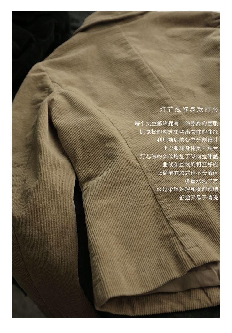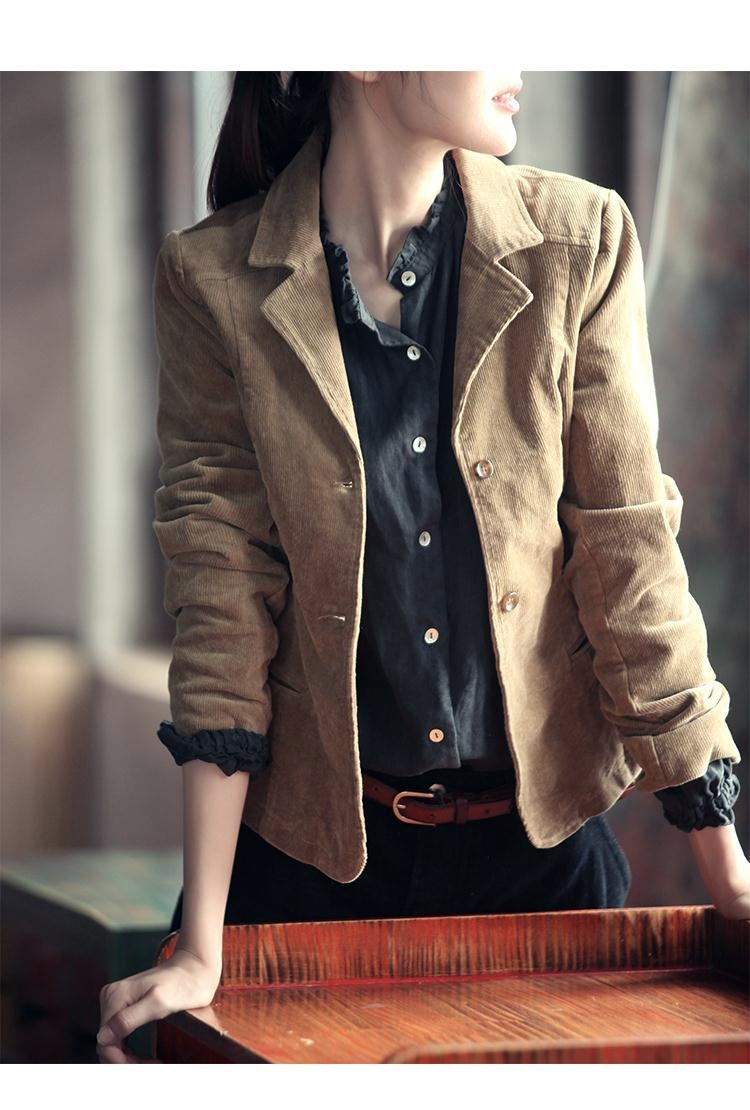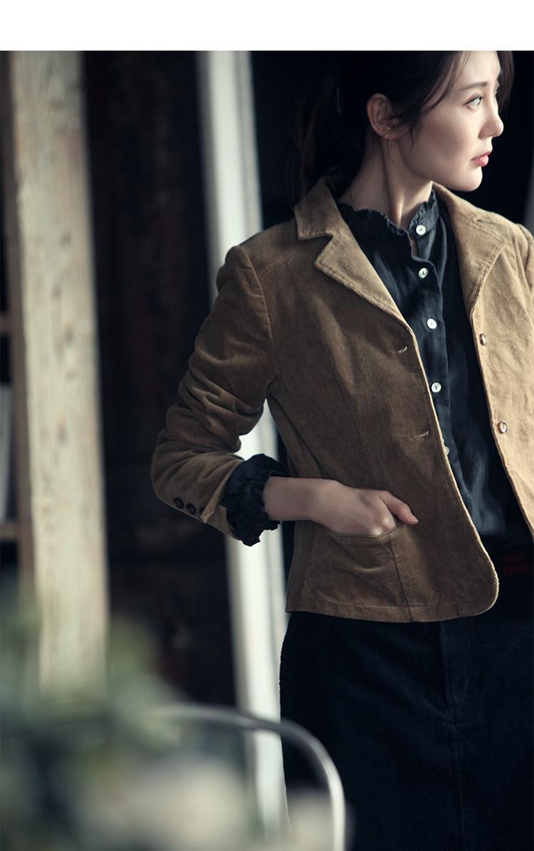韓版新款100%純棉燈芯絨女復古口袋小西裝休閒細條絨上衣復古外套