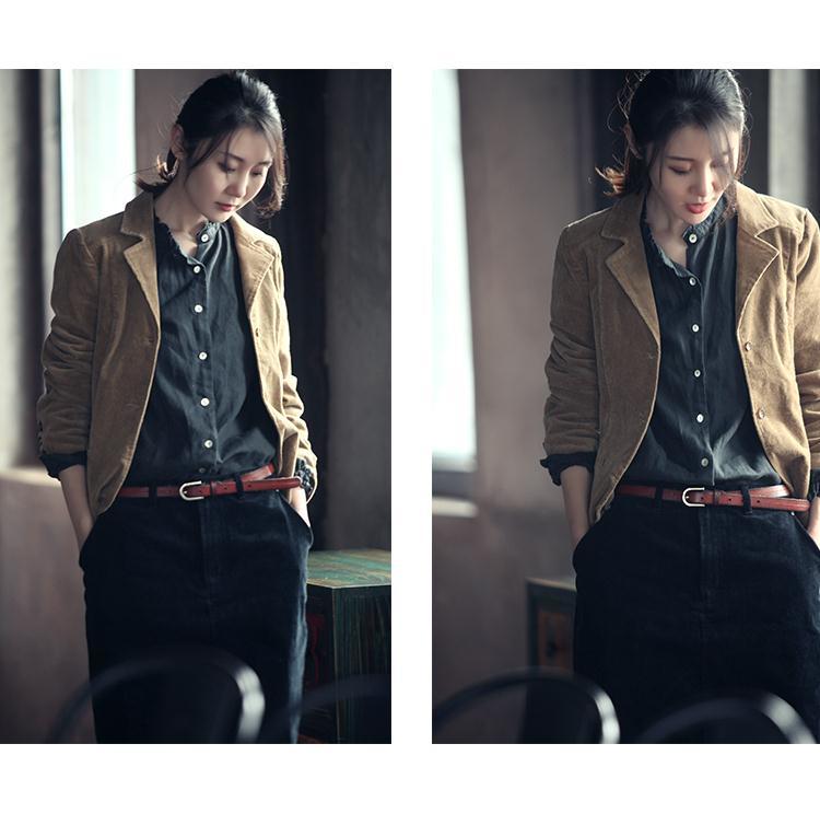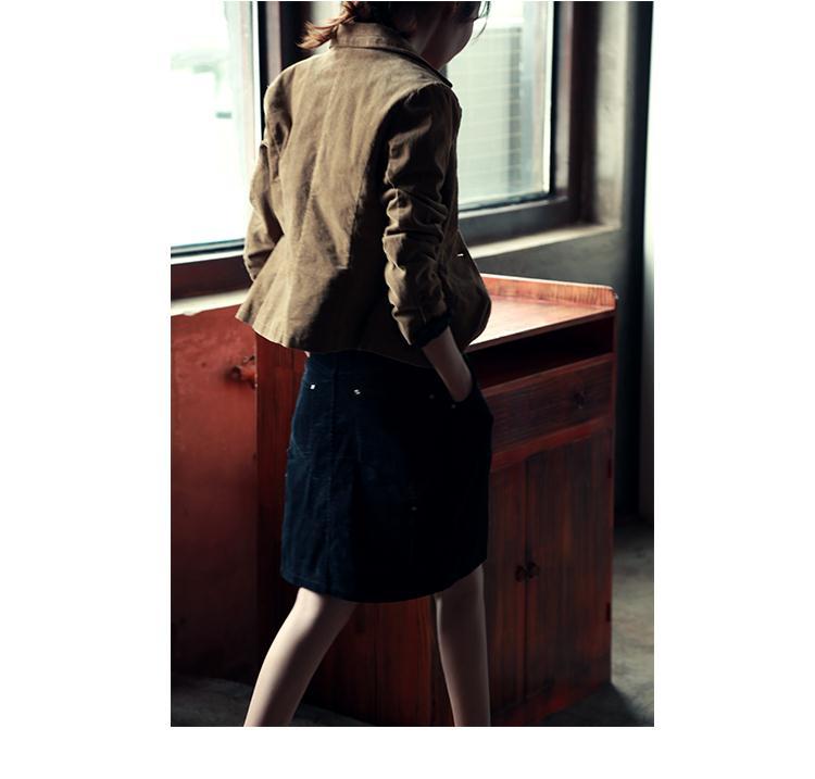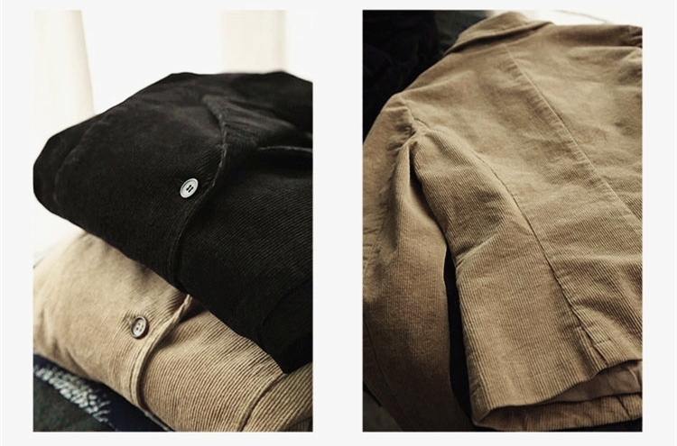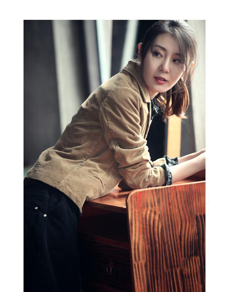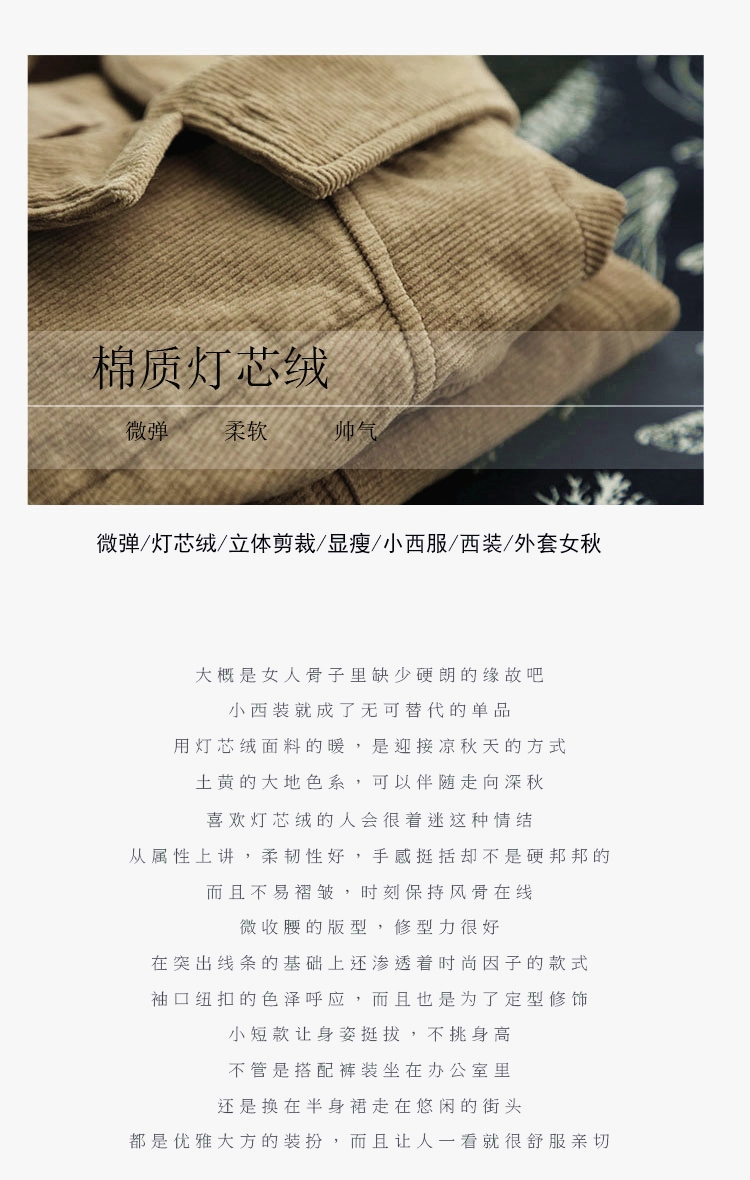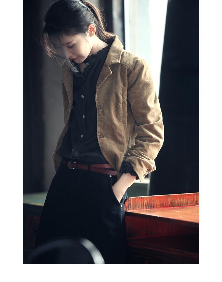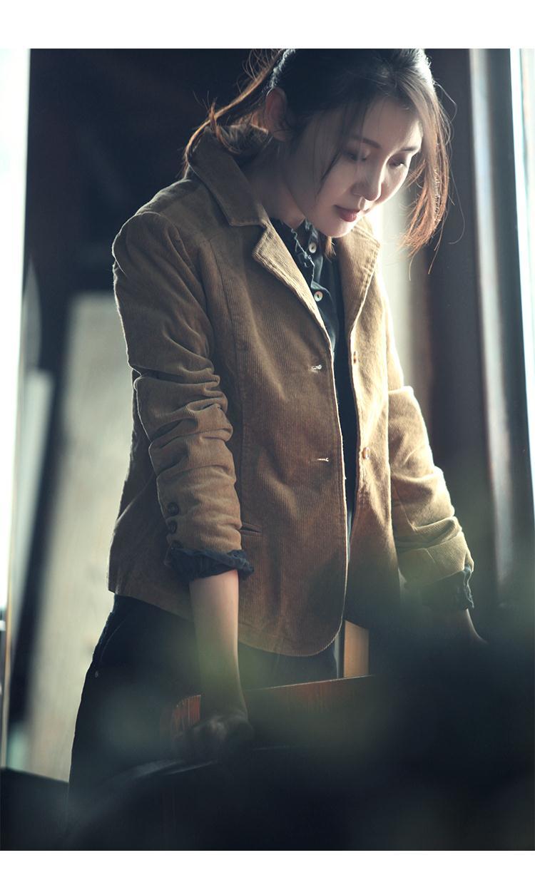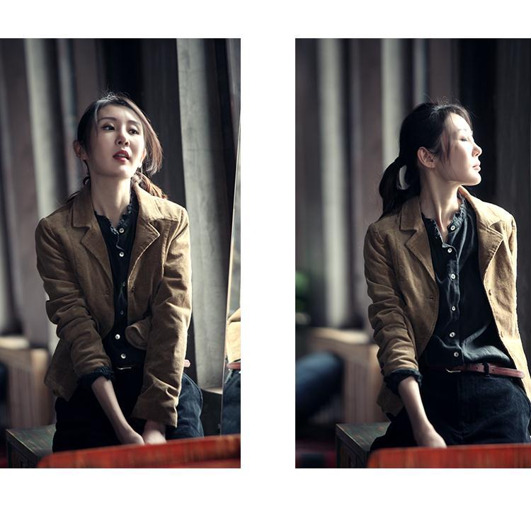 韓版新款100%純棉燈芯絨女復古口袋小西裝休閒細條絨上衣復古外套