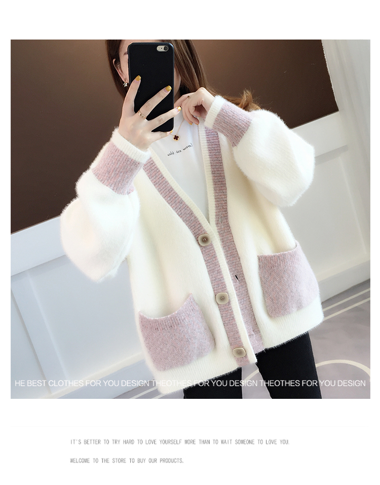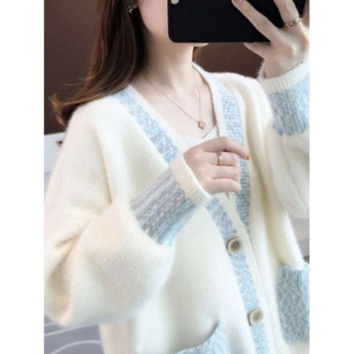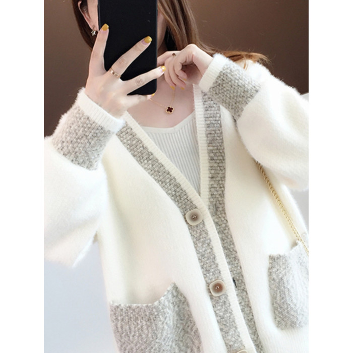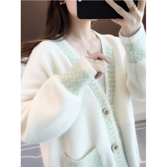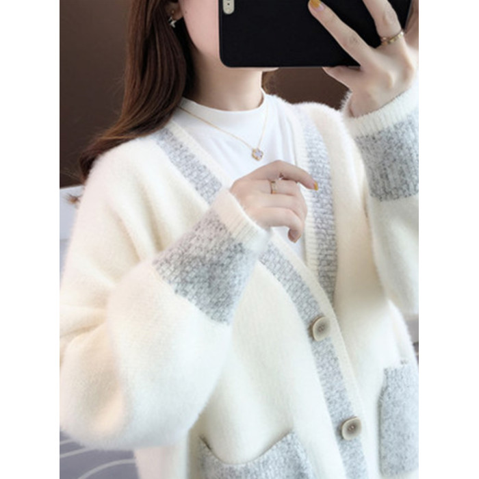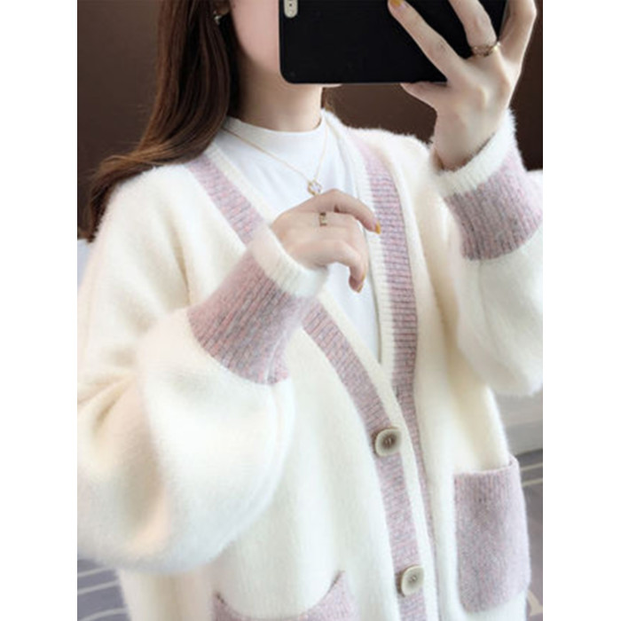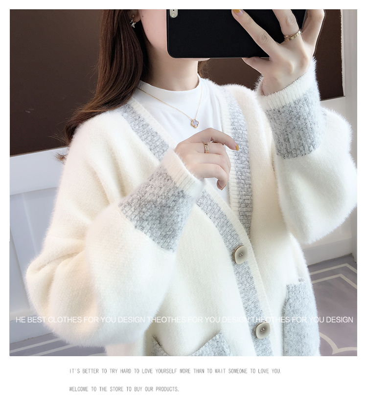 早秋新款2025年女針織開衫女士毛衣寬松外穿春秋仿水貂絨百搭外套