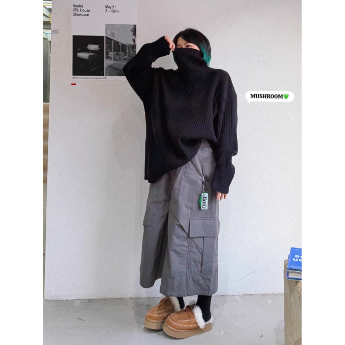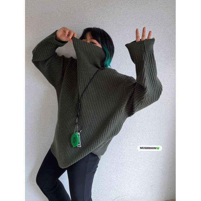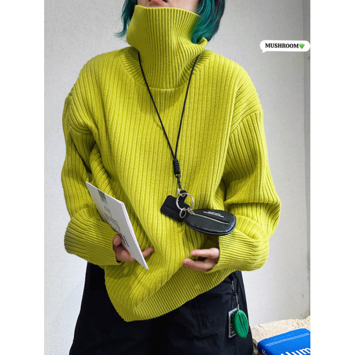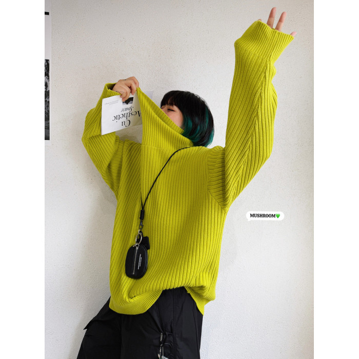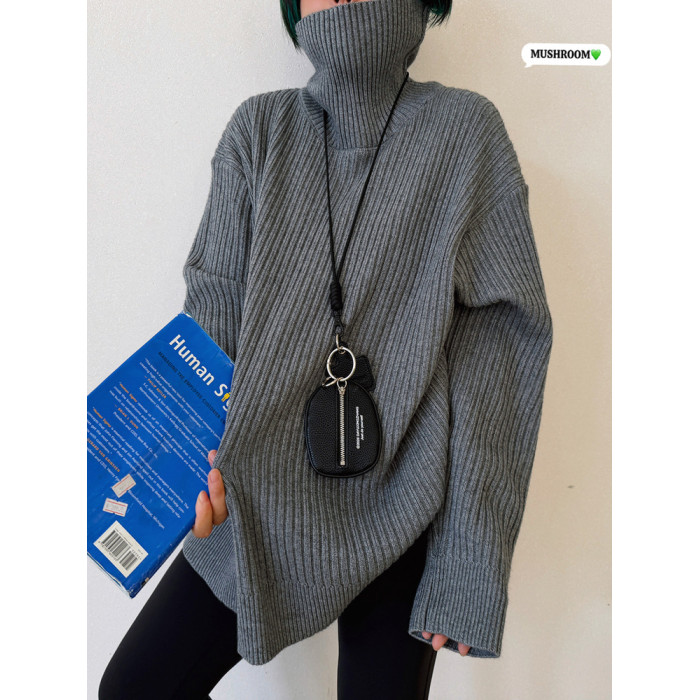 蘑菇頭小姐2025冬季新款韓版復古百搭休閒時尚純色極簡高領毛衣女
