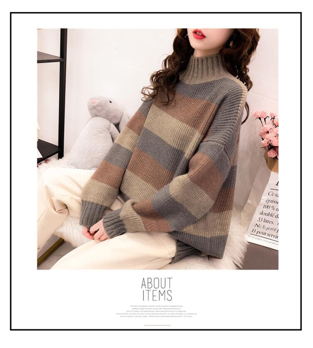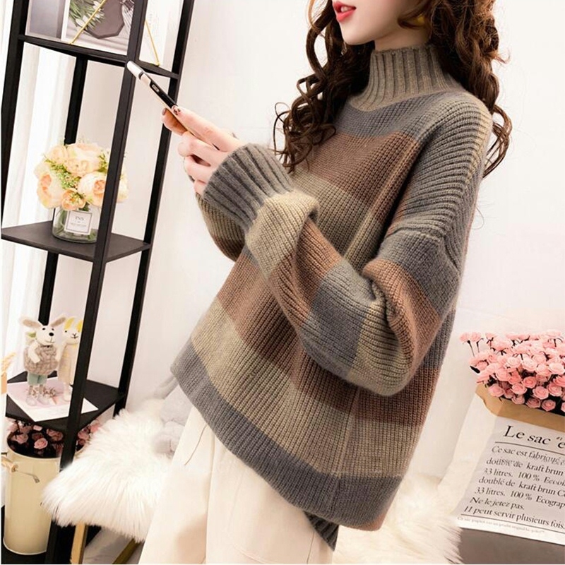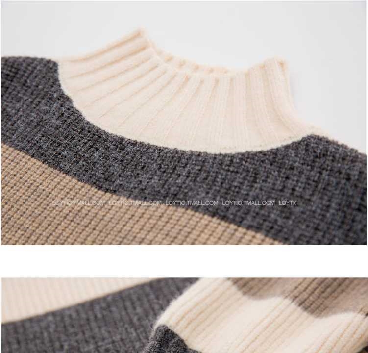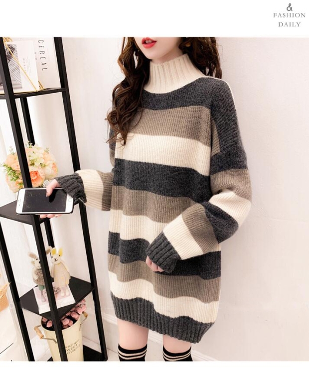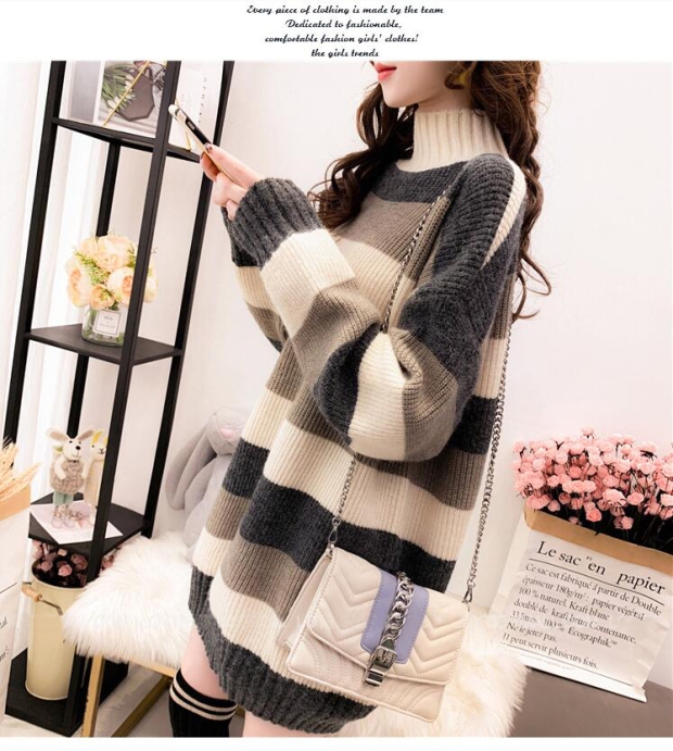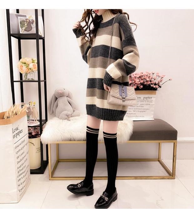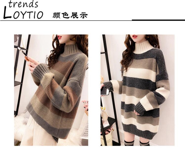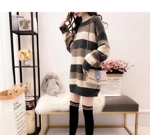 慵懶風毛衣女秋冬寬松中長款套頭半高領針織衫時尚百搭打底裙外套
