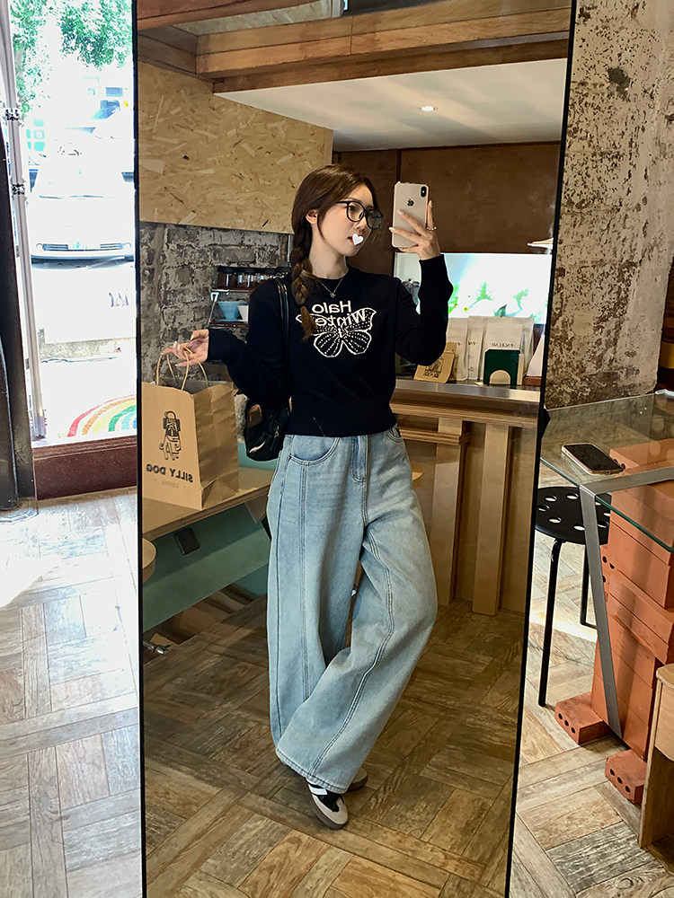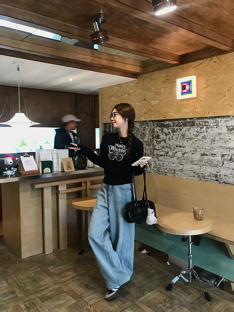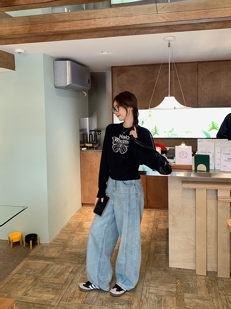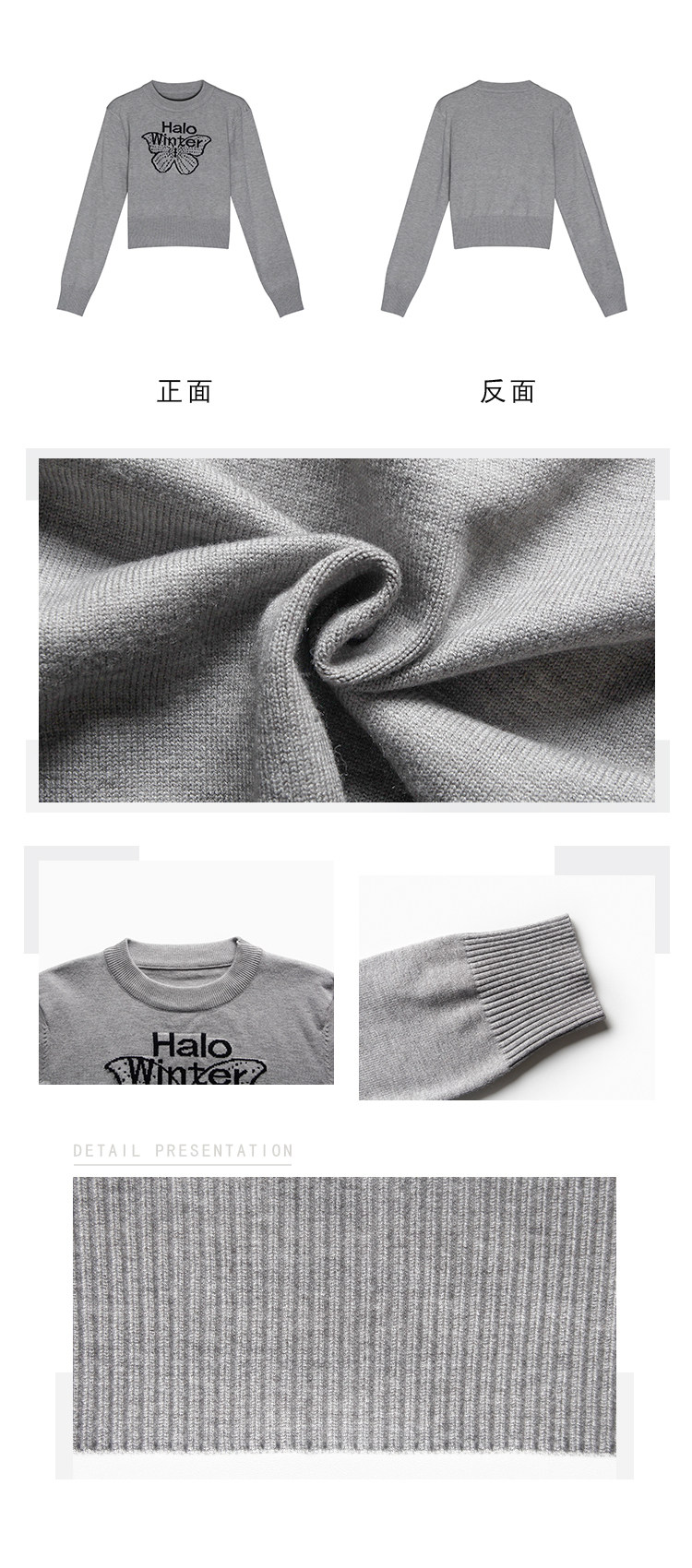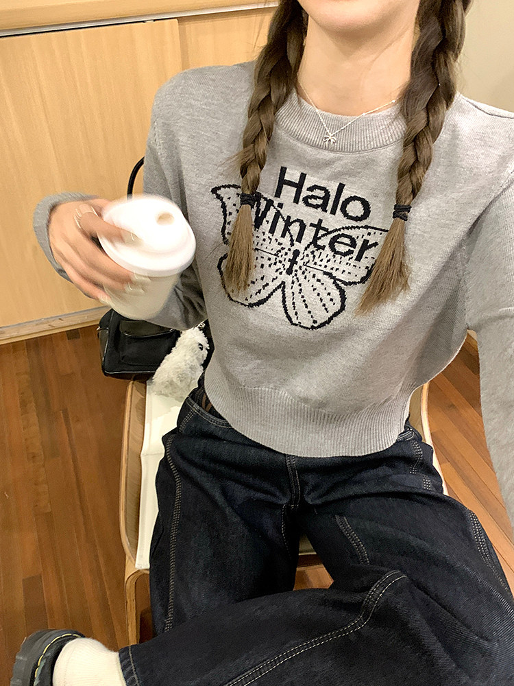 烏77設計感蝴蝶提花圓領毛衣女春內搭修身打底衫短款針織休閒上衣