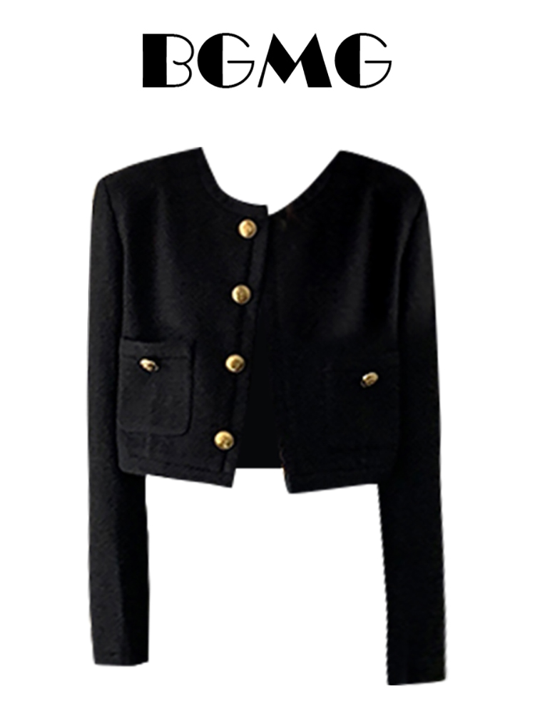學院風穿搭黑色長袖夾克小香風秋冬開衫女圓領短款設計感洋氣外套