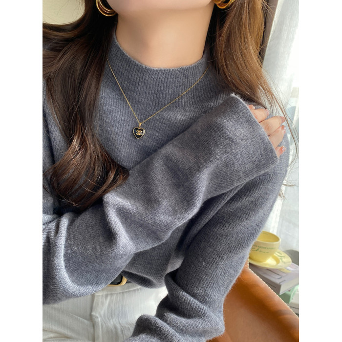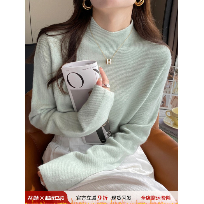 薄荷綠色半高領針織打底衫女裝內搭2025秋冬新款軟糯毛衣修身上衣