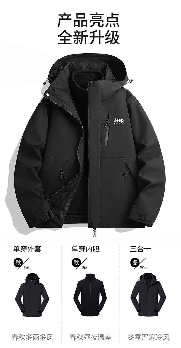 JEEP沖鋒衣女2025新款春秋季戶外三合一可拆卸進藏防風冬天外套男