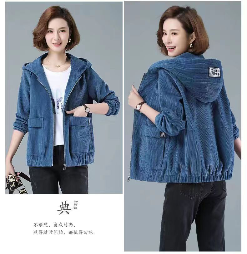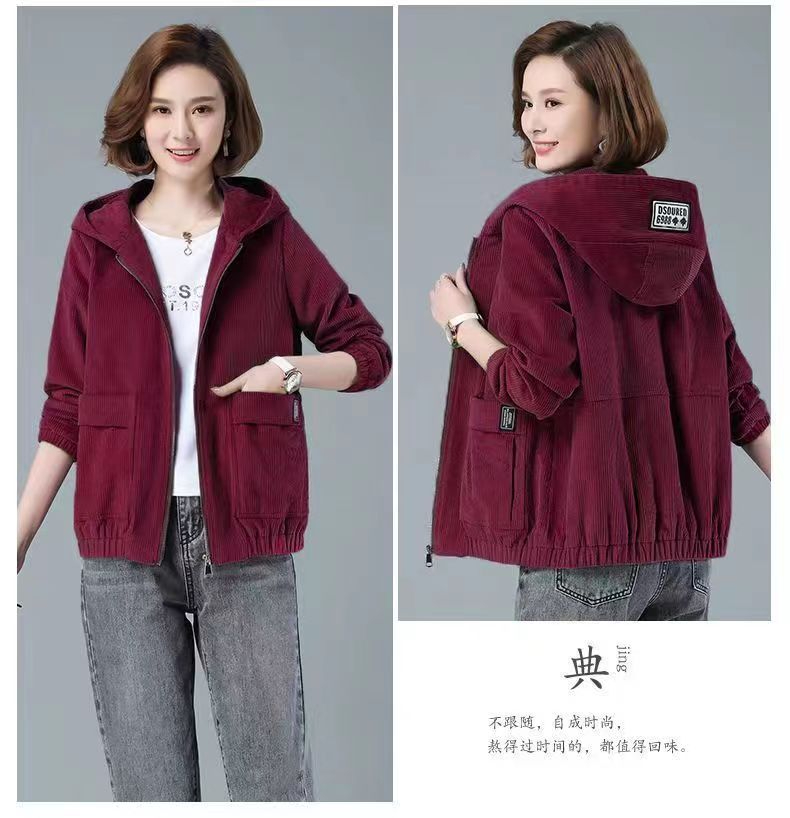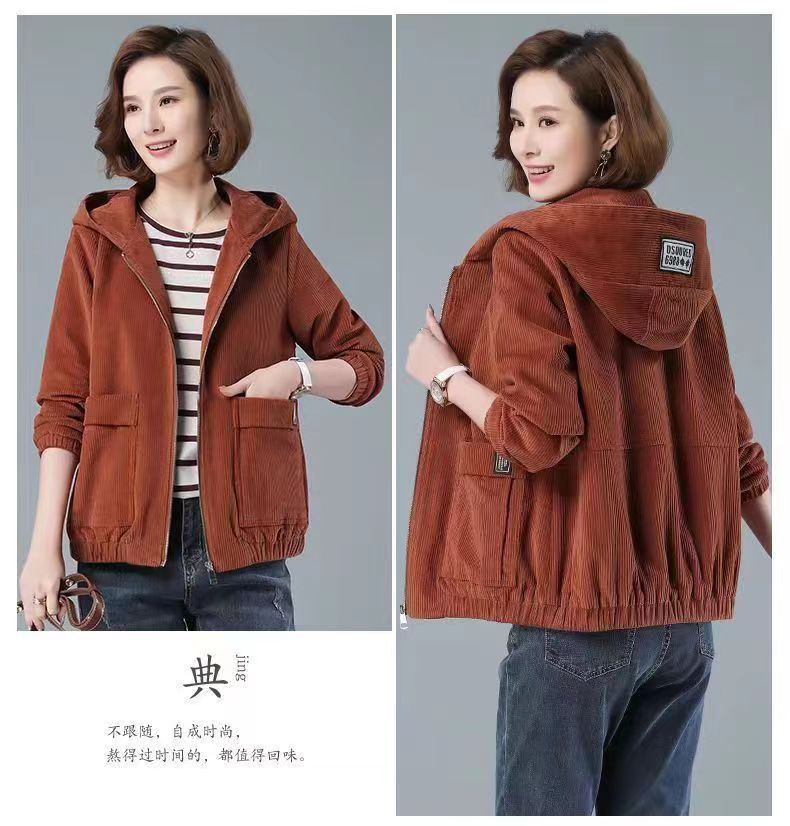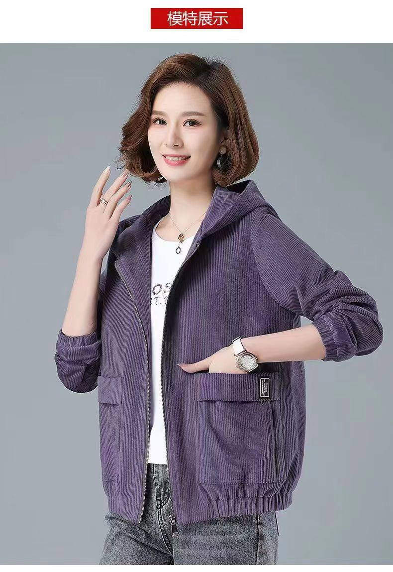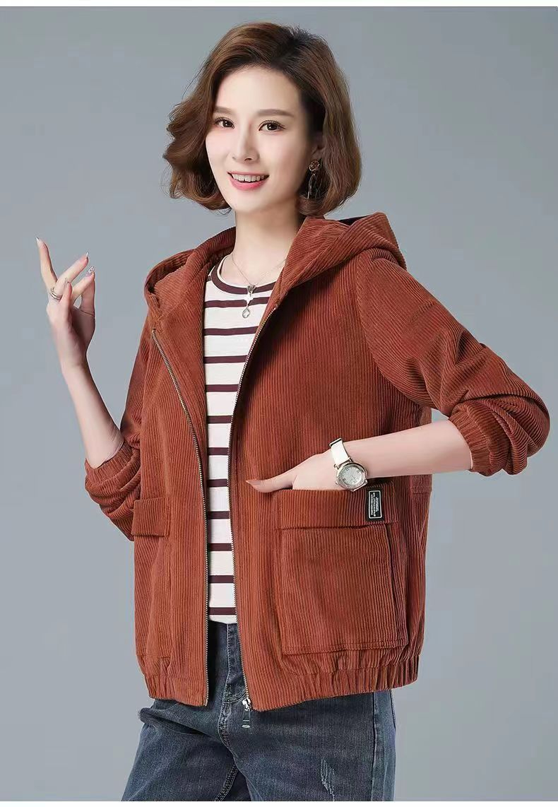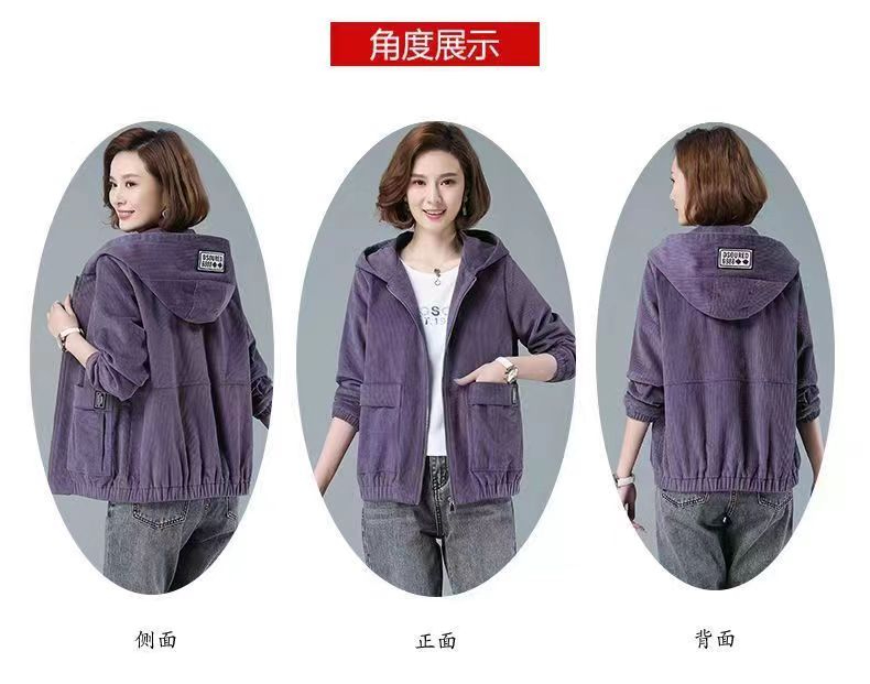 燈芯絨短款外套女秋冬韓版寬松2025新款大碼連帽休閒中年媽媽夾克