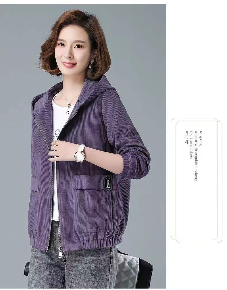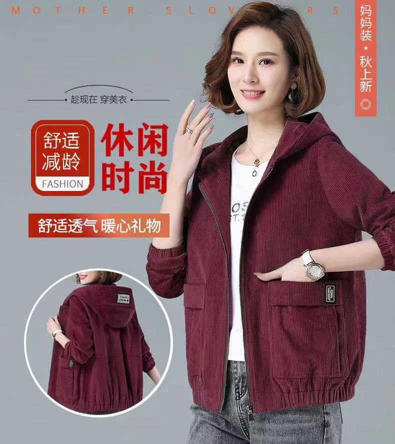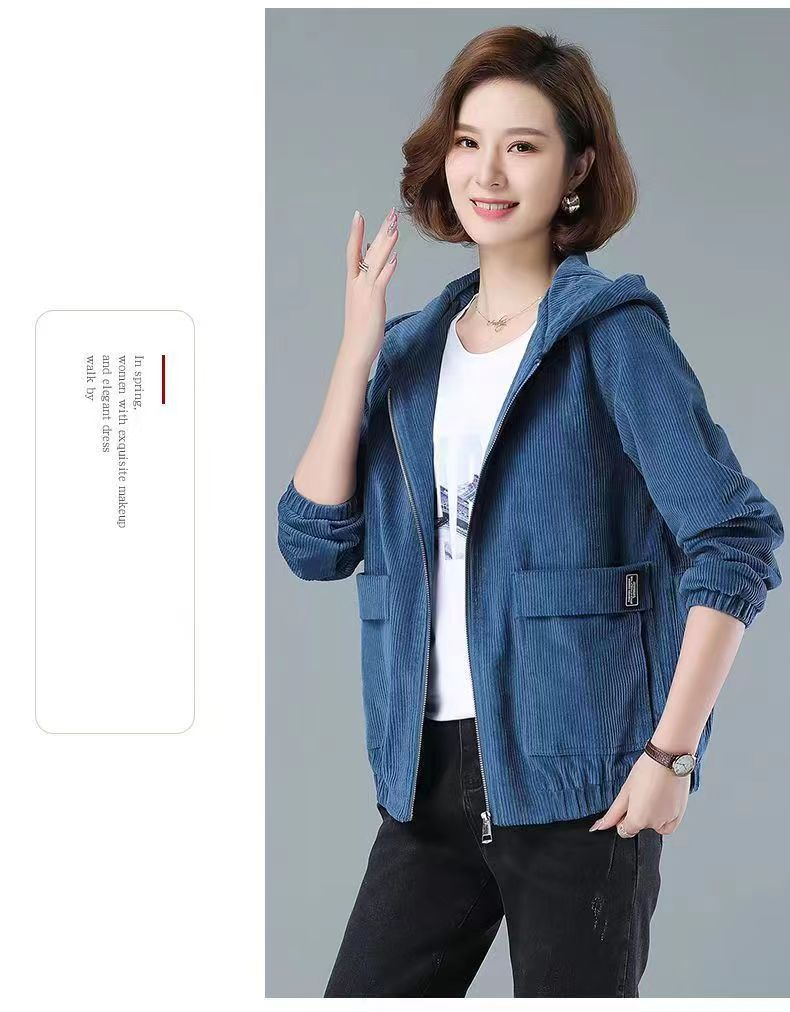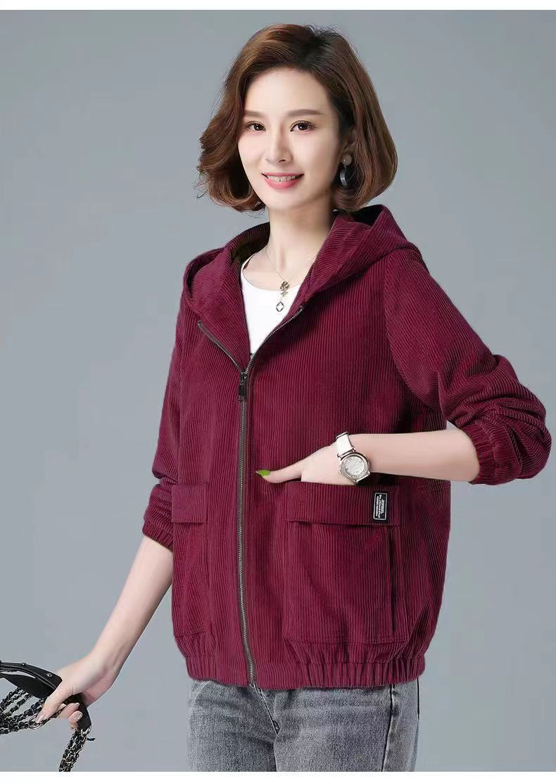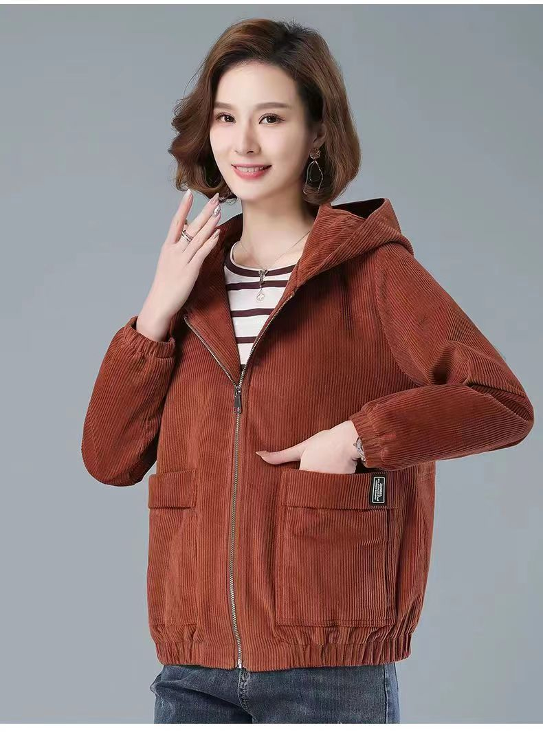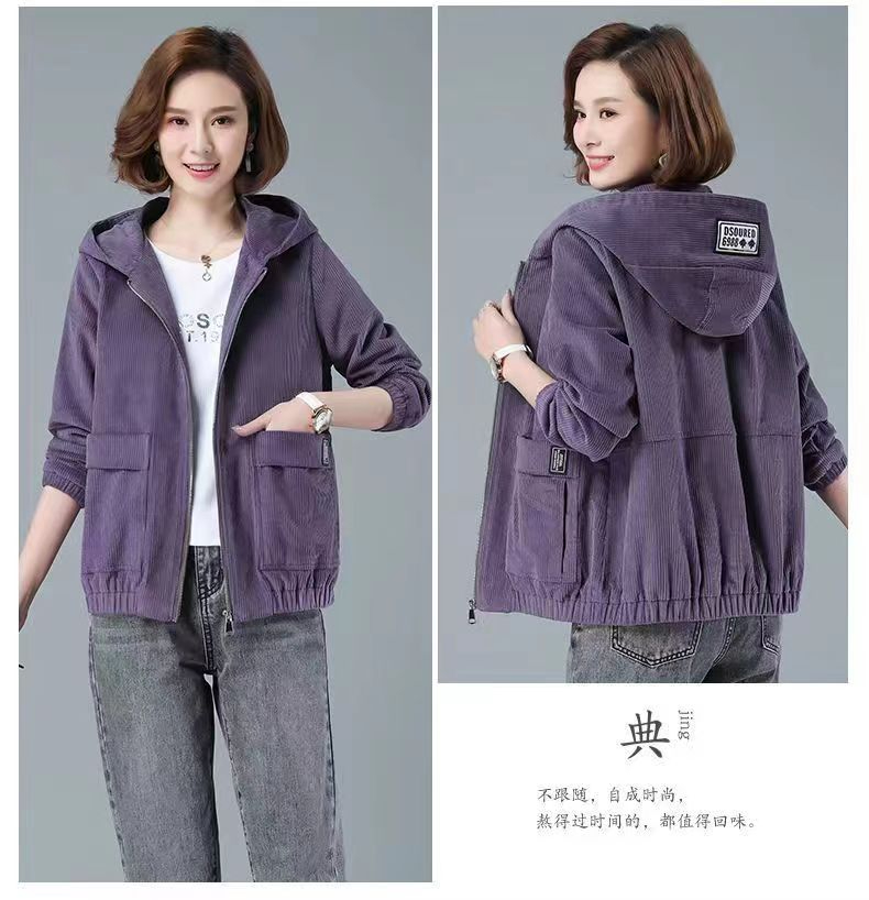 燈芯絨短款外套女秋冬韓版寬松2025新款大碼連帽休閒中年媽媽夾克