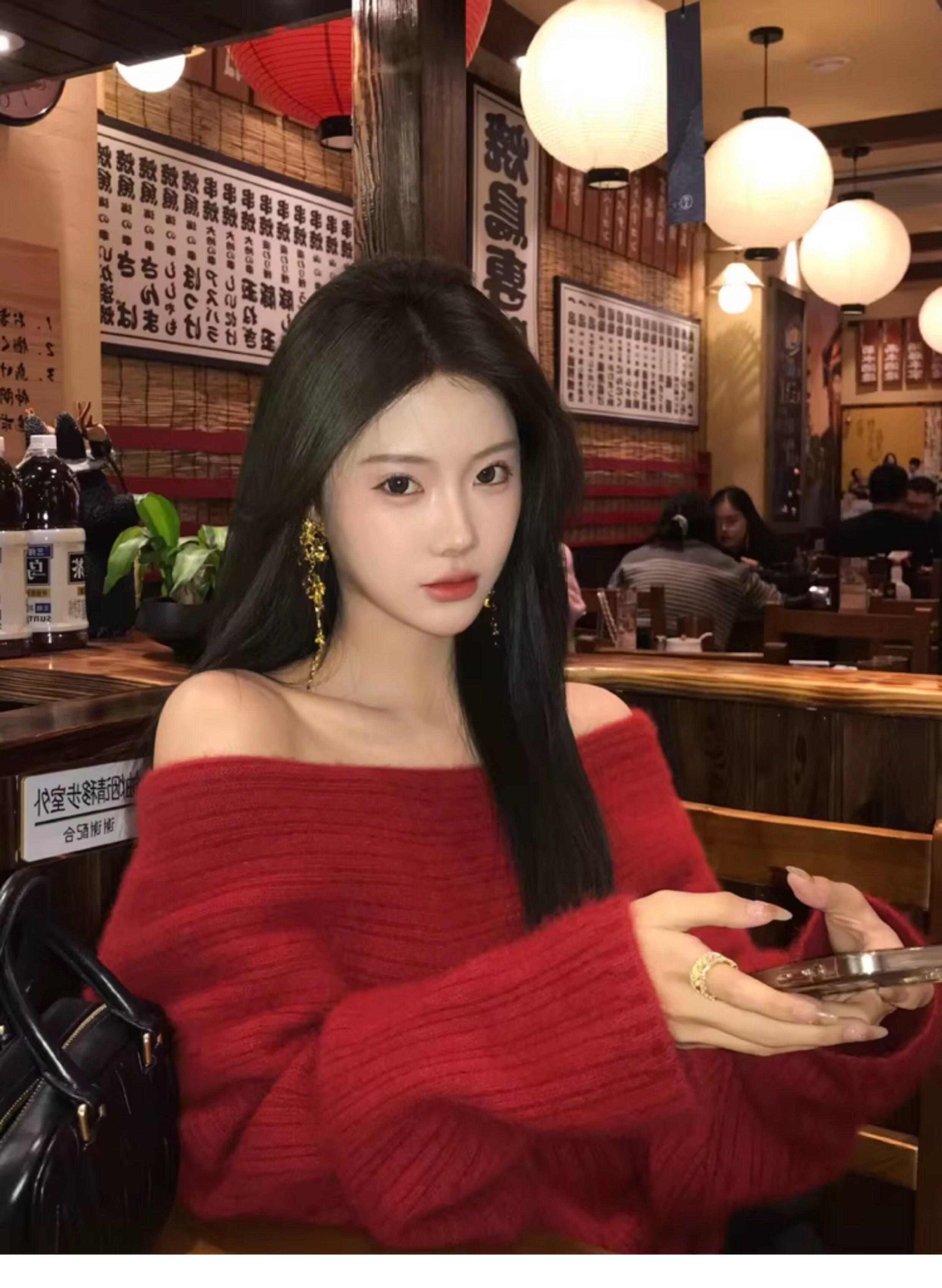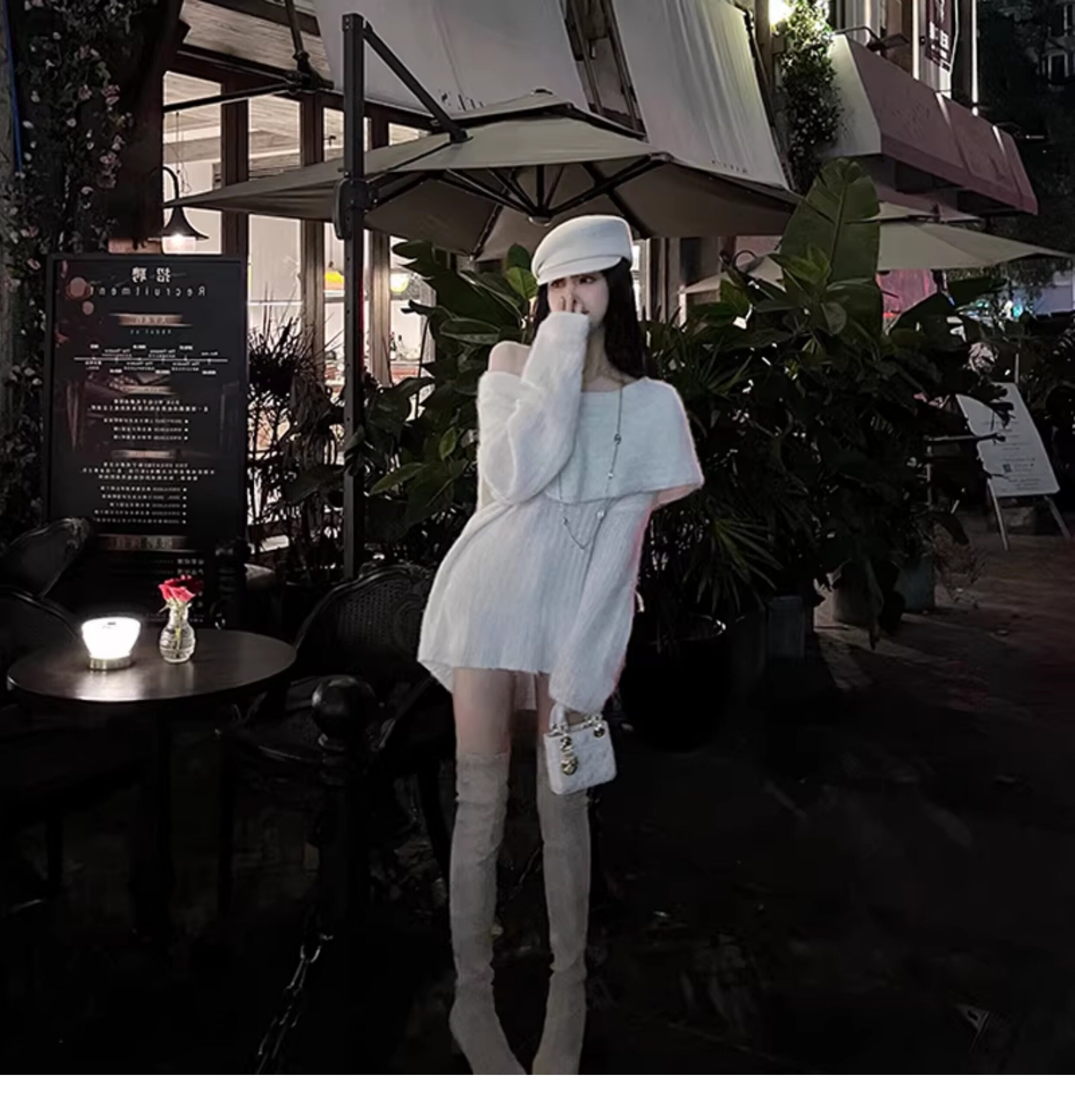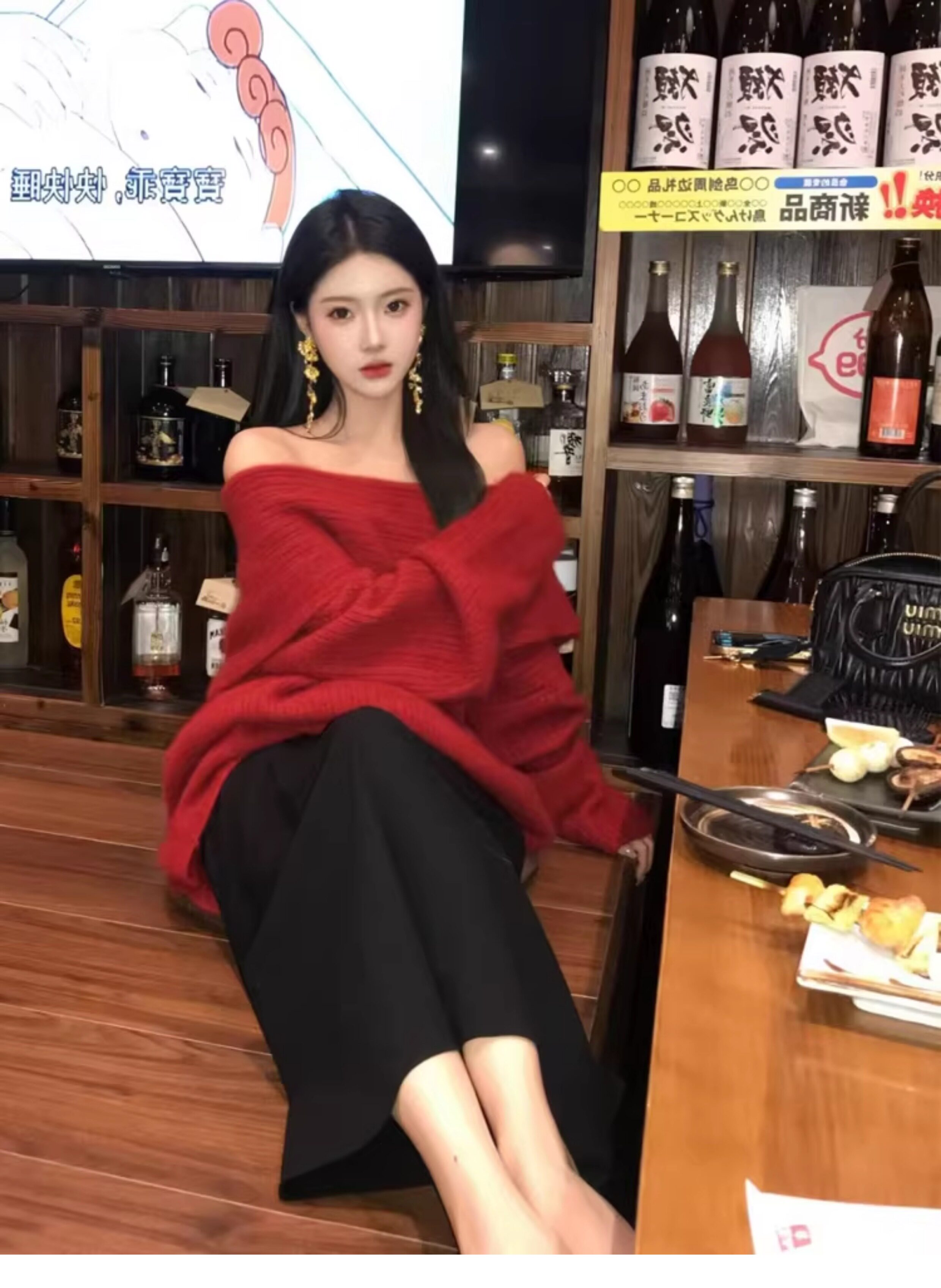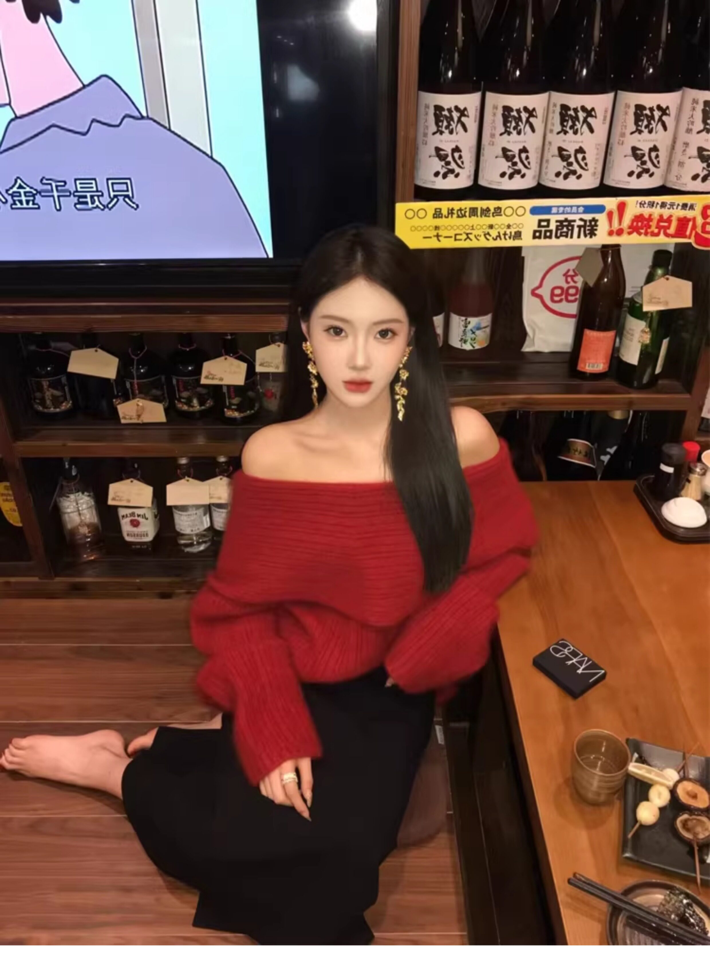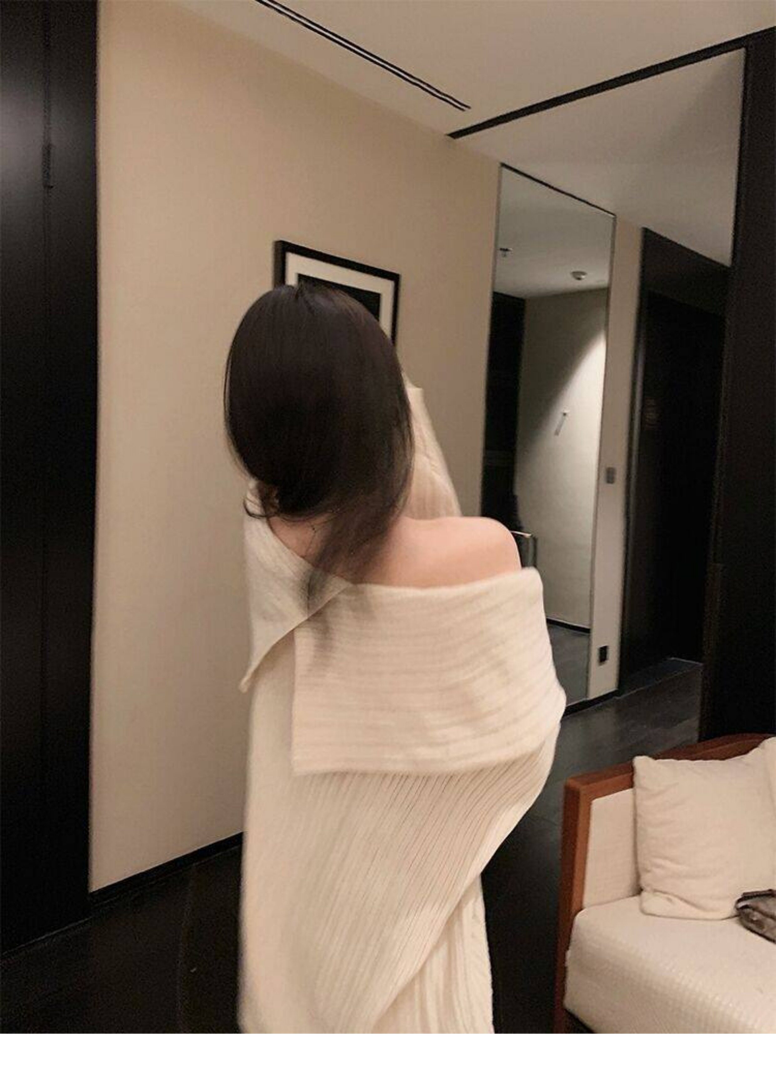 春季氛圍感穿搭露肩上衣一字肩長款大毛衣秋冬女慵懶風高級感寬鬆