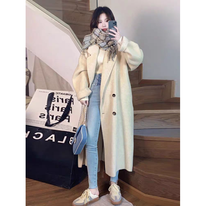 雙面羊絨大衣女中長款2025秋冬新款高級感小個子羽絨內膽毛呢外套