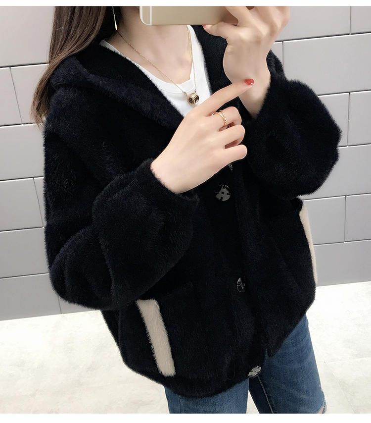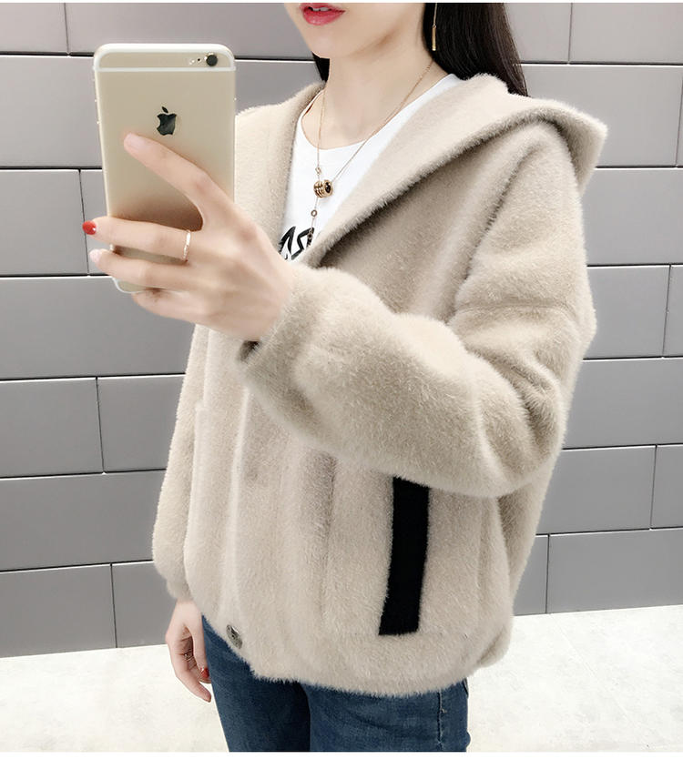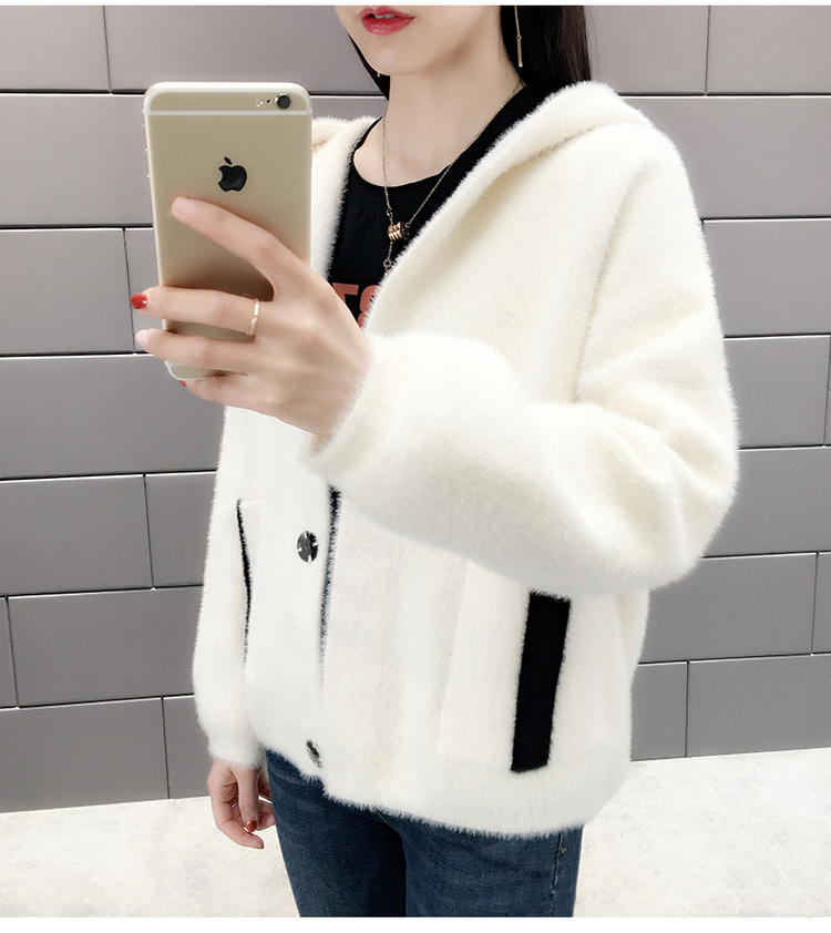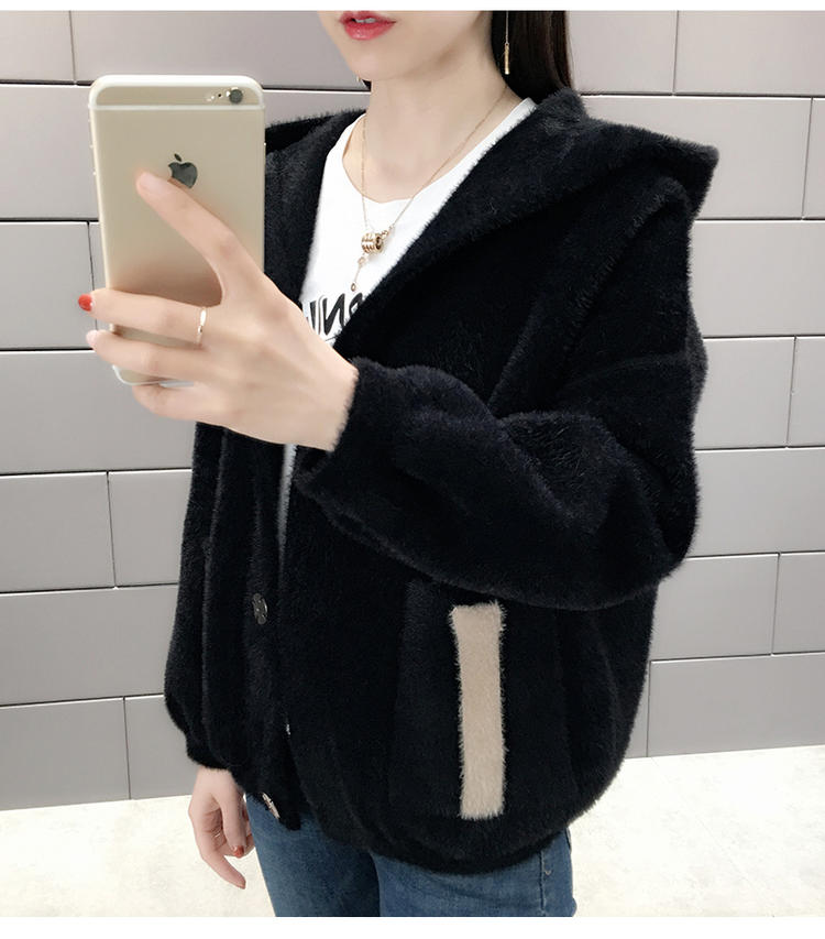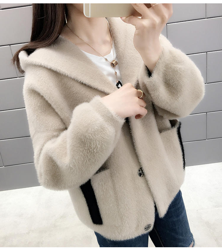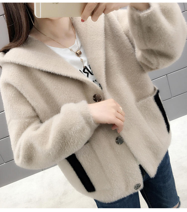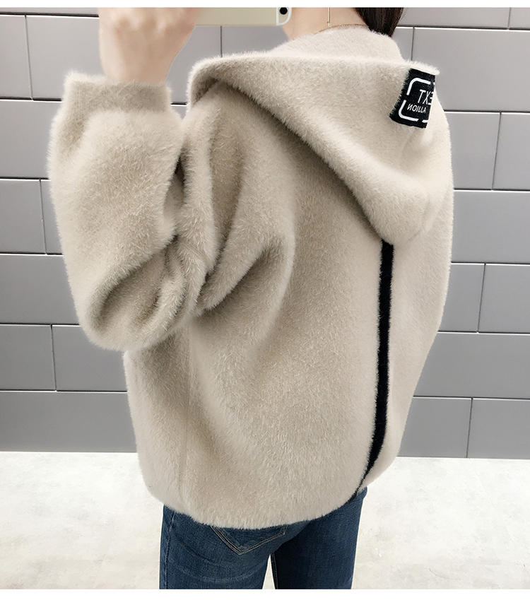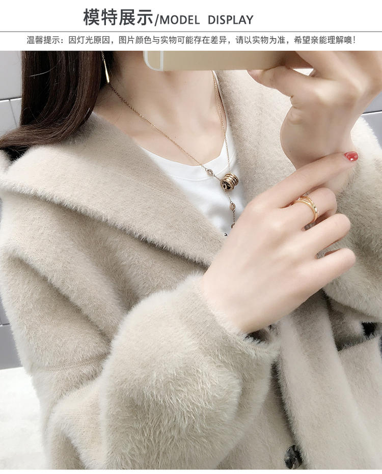 女士仿水貂絨針織開衫秋季2025年新款短款秋裝上衣毛衣外套女秋冬