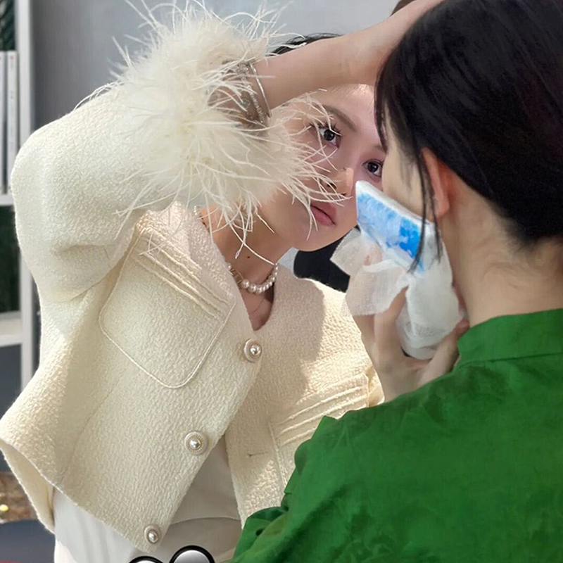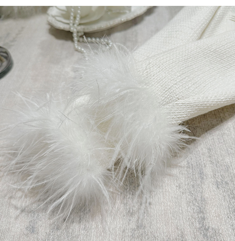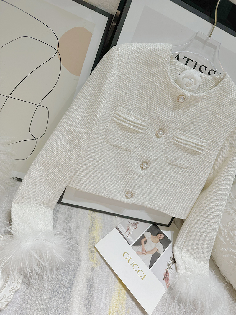 FFmiss◆法式洋氣羊毛呢羽毛小香風短外套編織珍珠流蘇毛毛開衫女