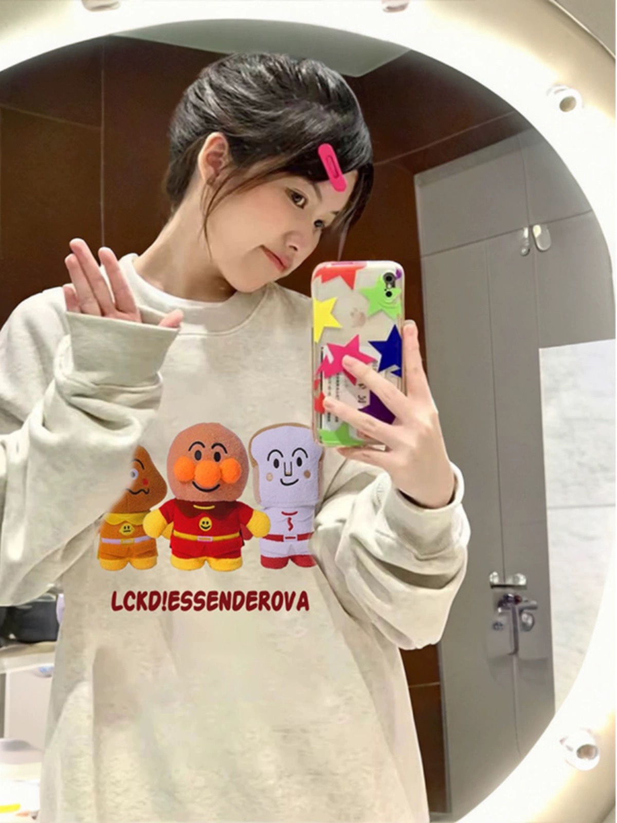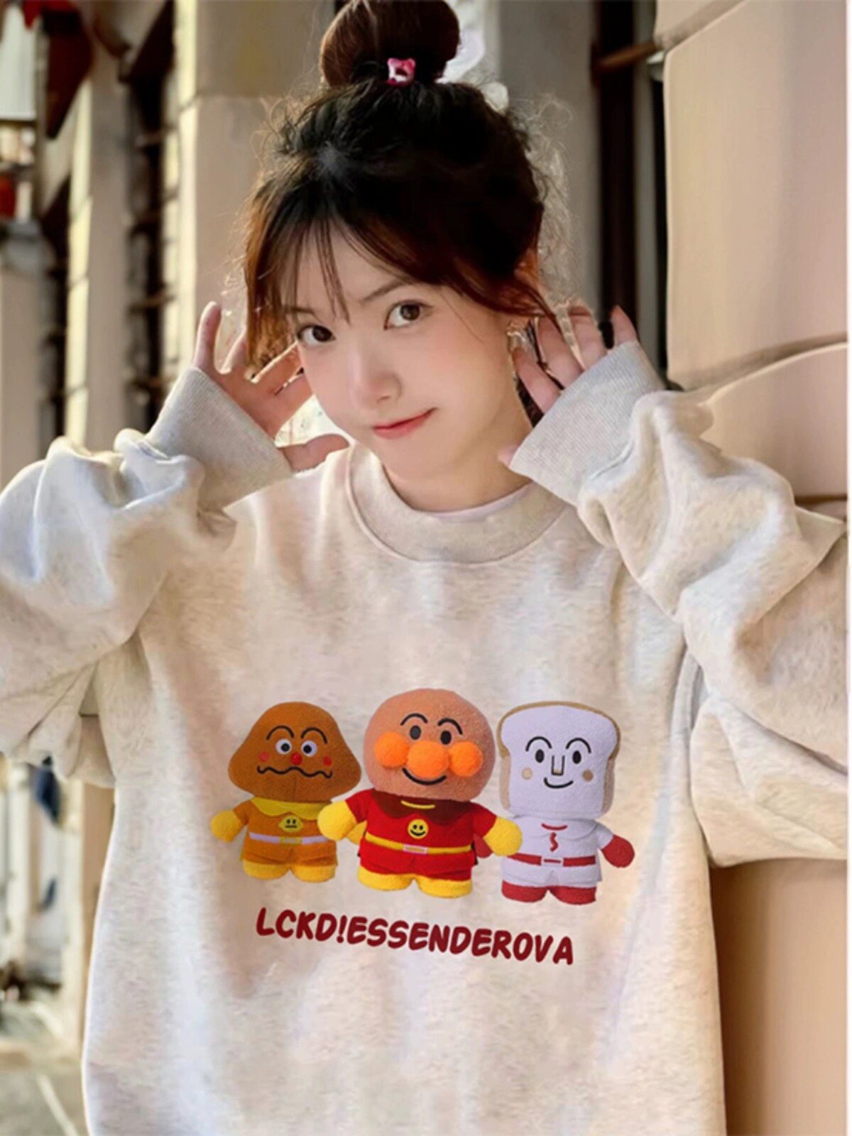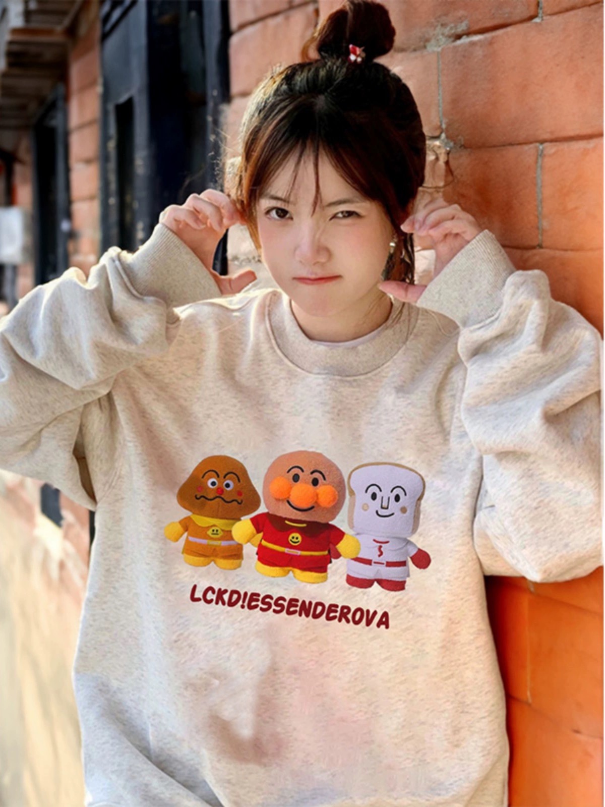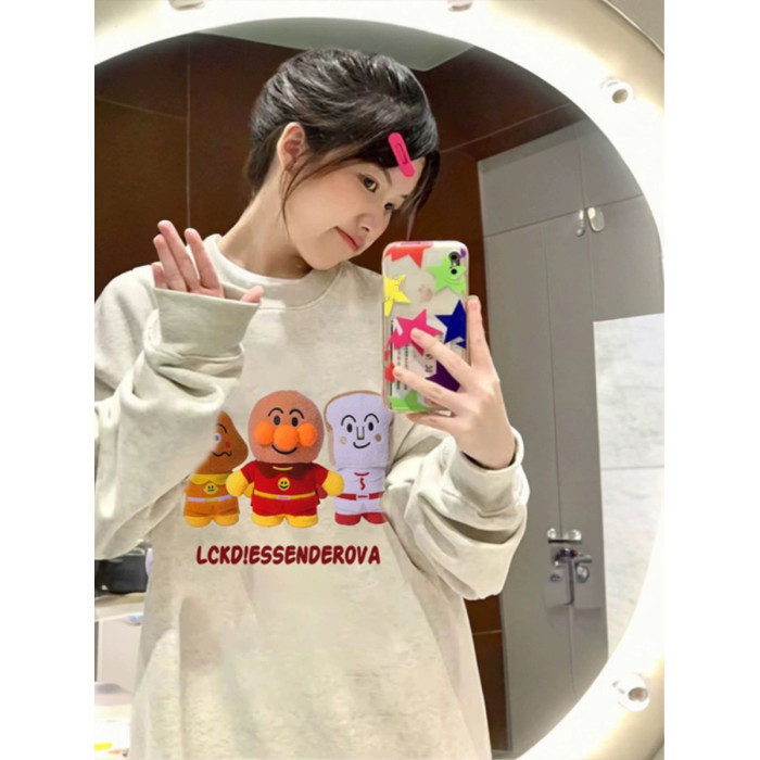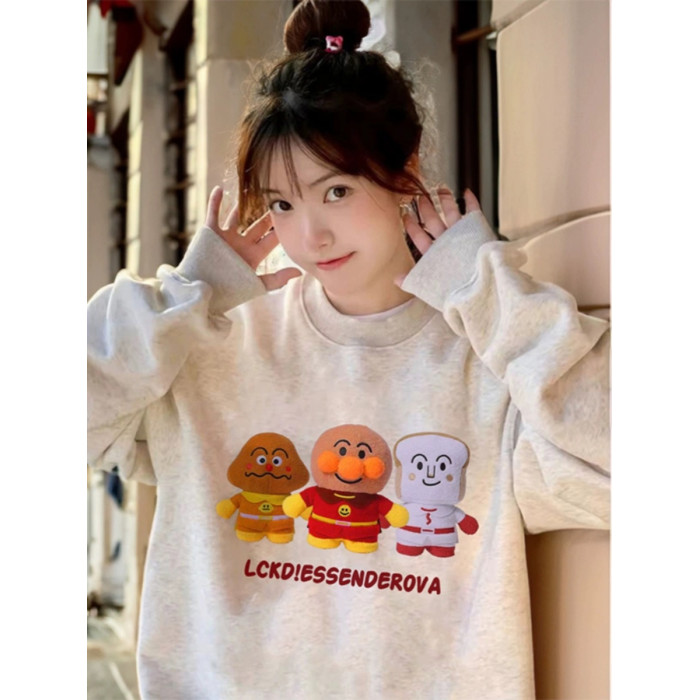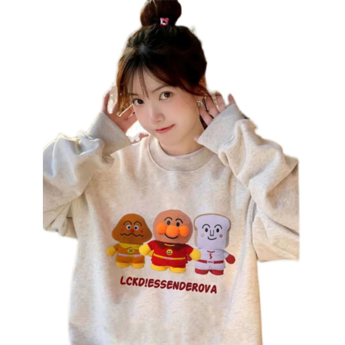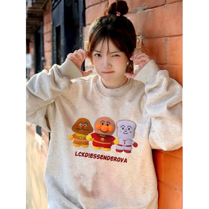 美式復古卡通麵包超人圓領大碼純棉衛衣女寬松薄款秋季胖MM上衣潮