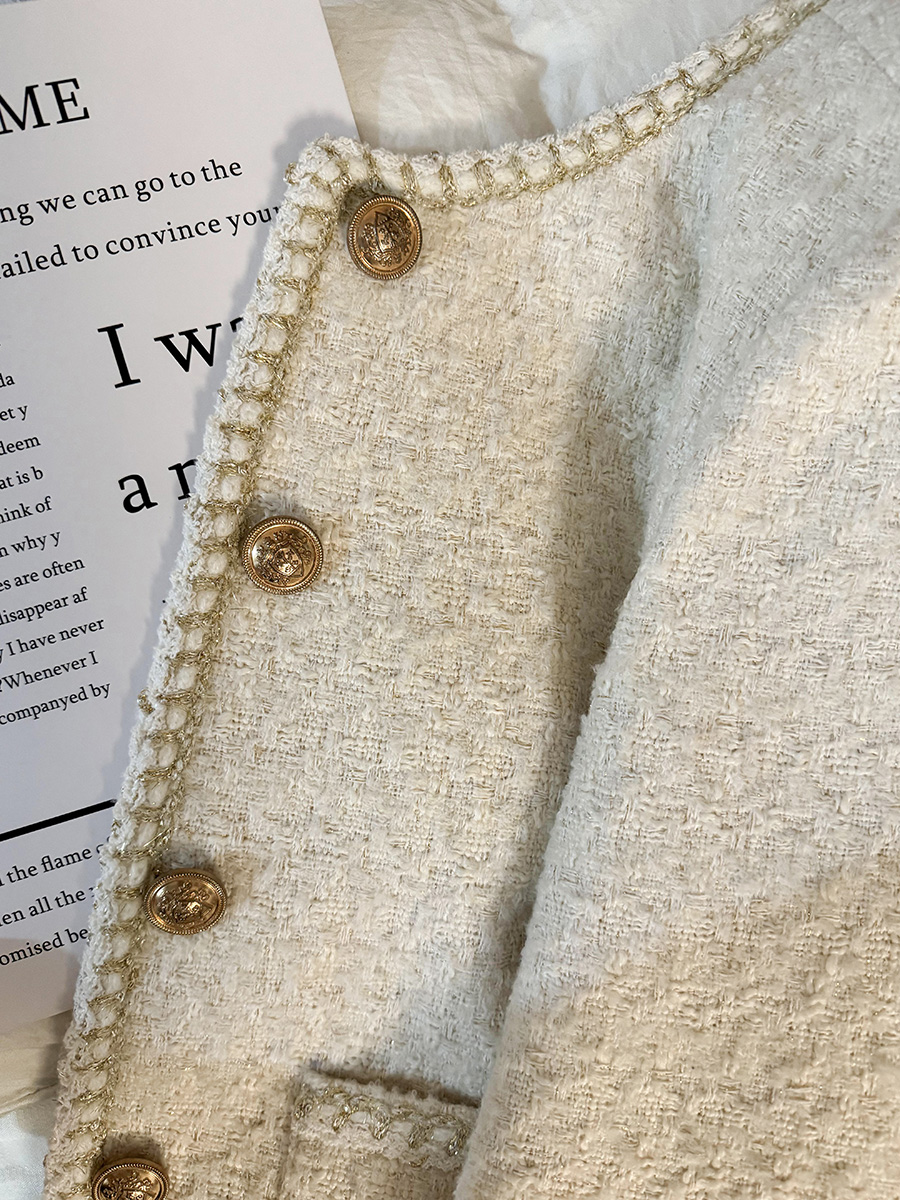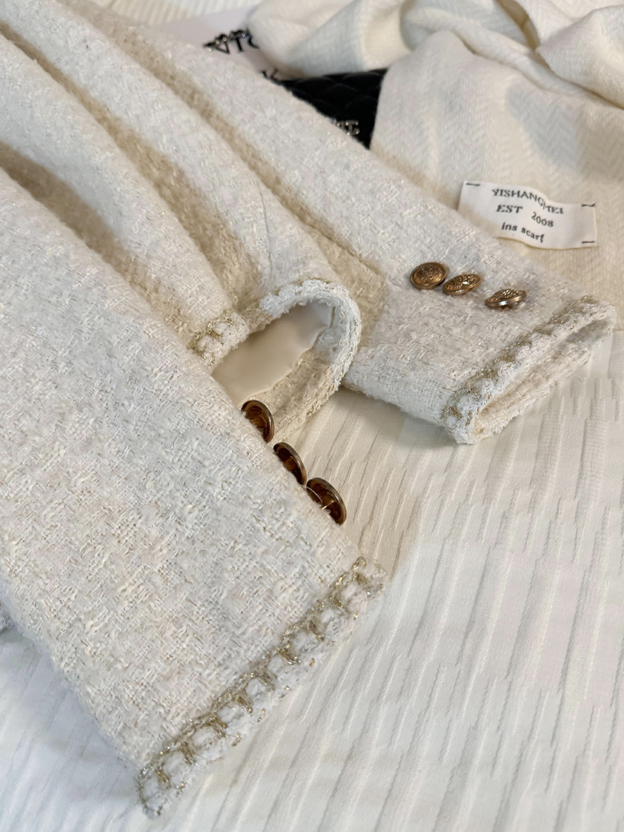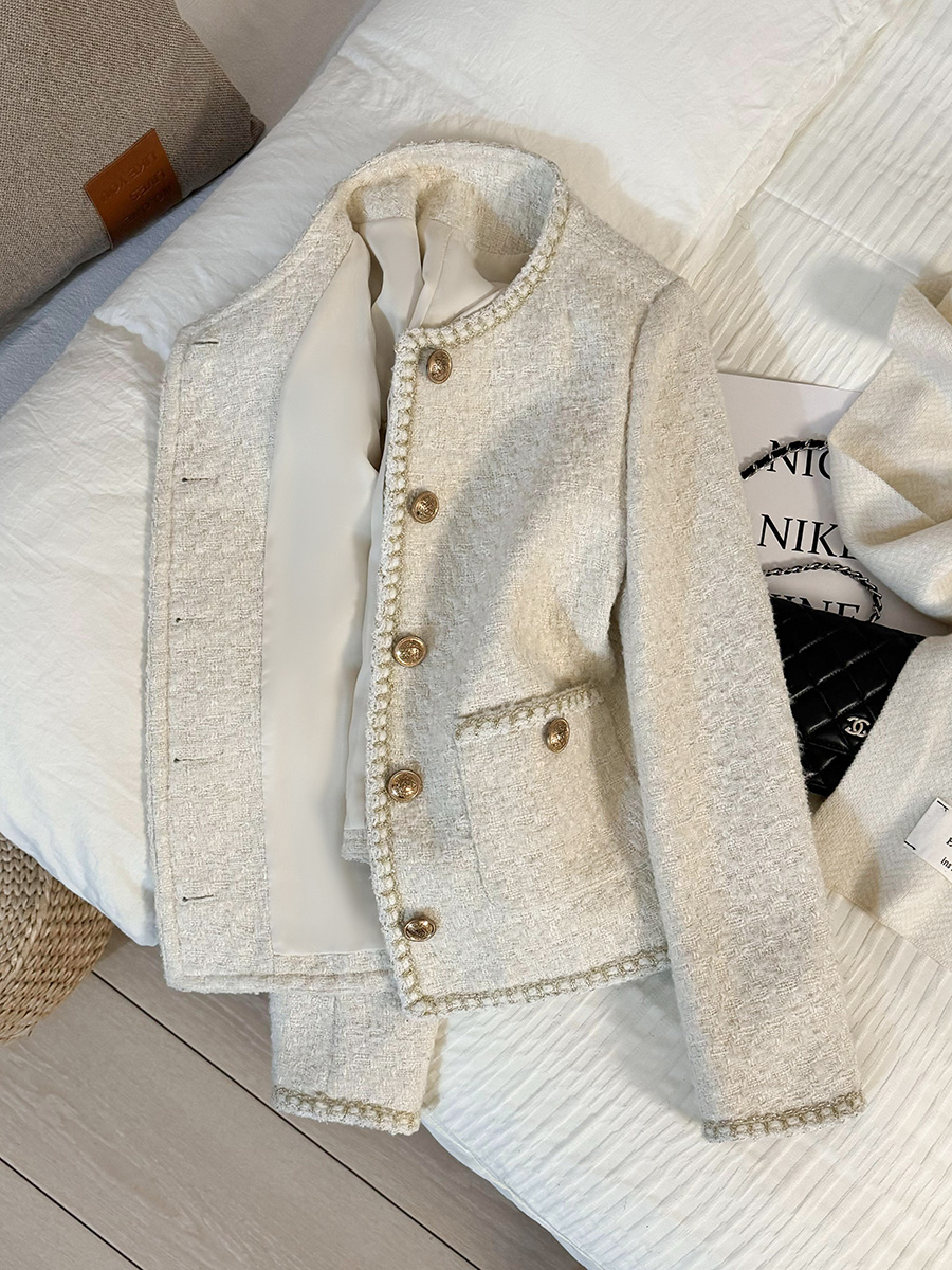 米白色氣質洋氣粗花呢小香風短外套女2025秋冬新款爆款圓領上衣潮