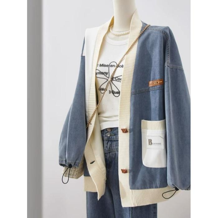 大碼300斤牛仔外套女春秋裝新款胖mm港味小衆寬松長袖開衫上衣潮