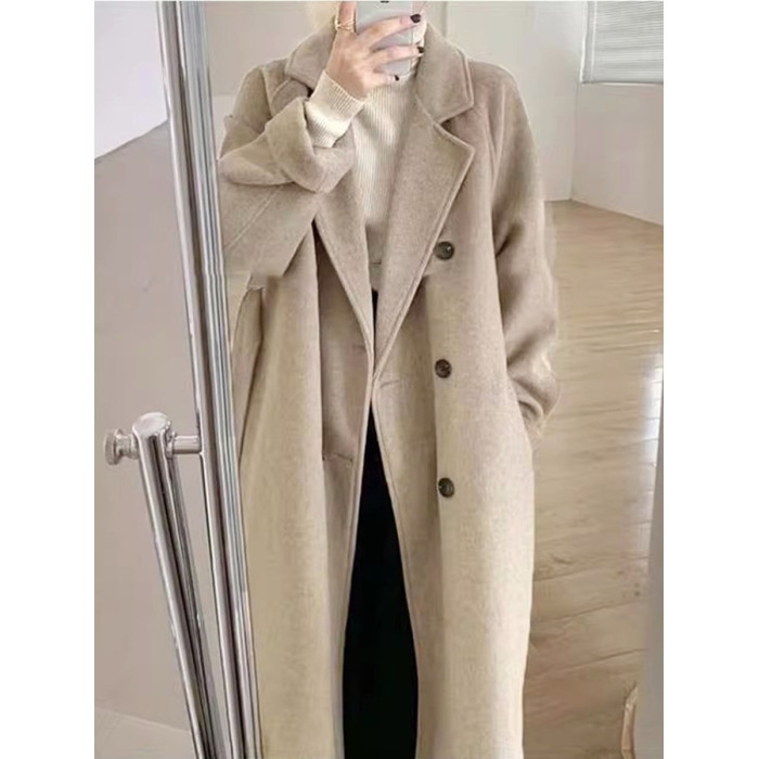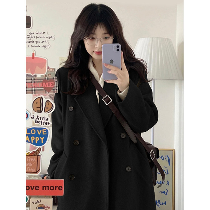 黑色羊毛呢外套女秋冬季2025新款高級感中長款小個子羊絨呢子大衣