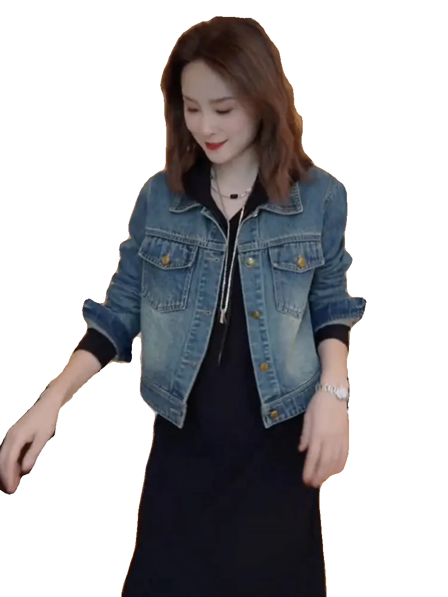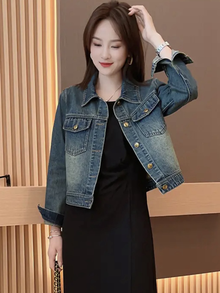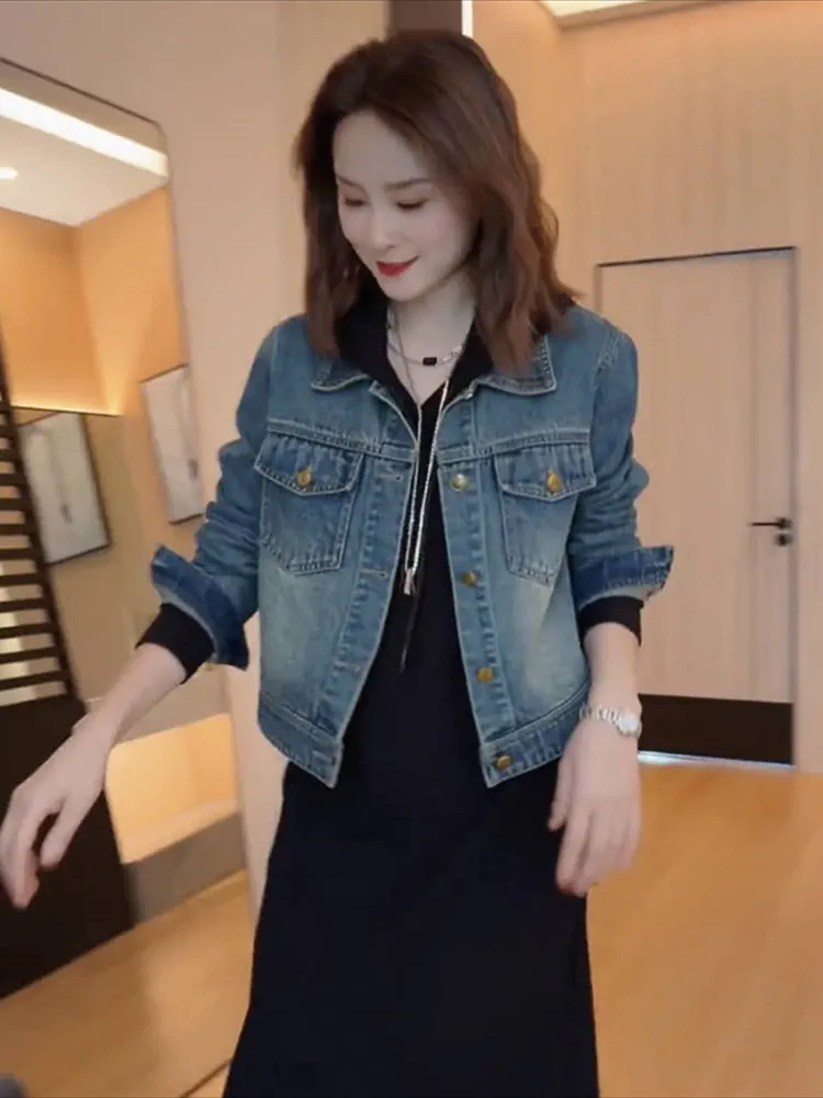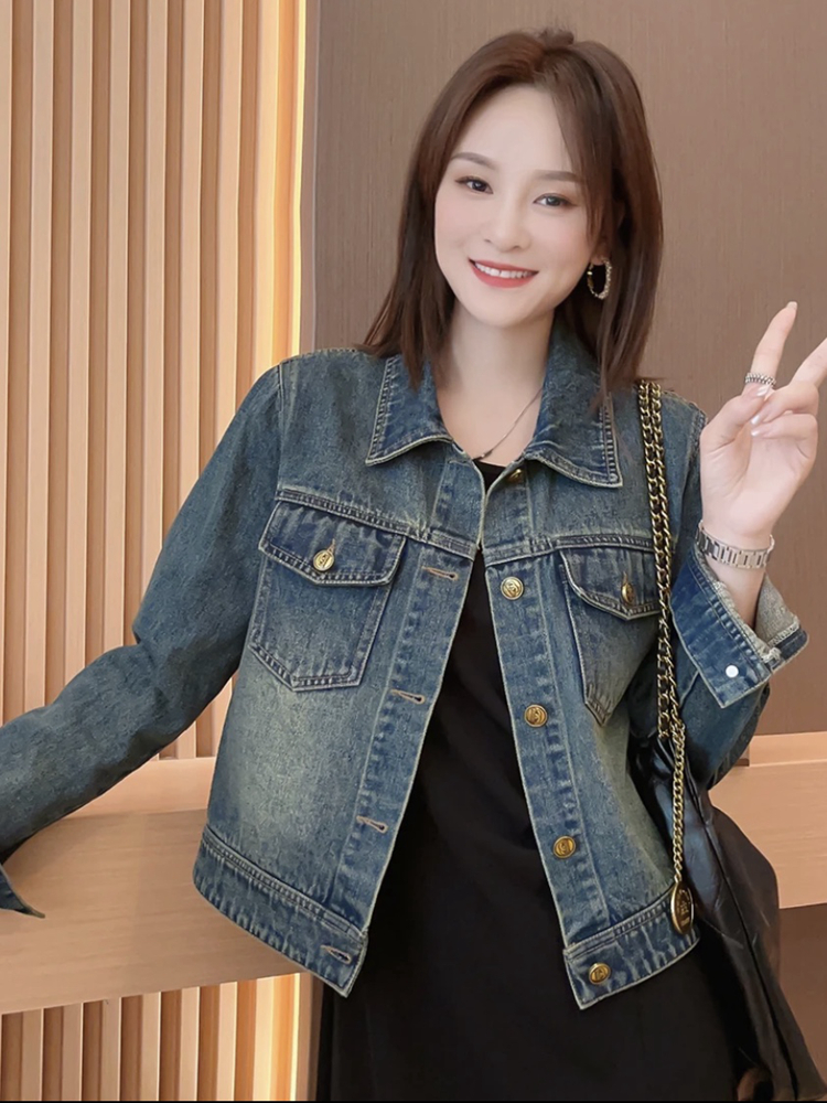 復古正肩牛仔外套女春秋季水洗新款韓版寬松百搭顯瘦短款上衣夾克