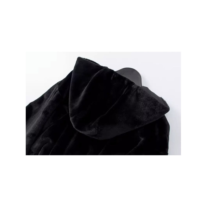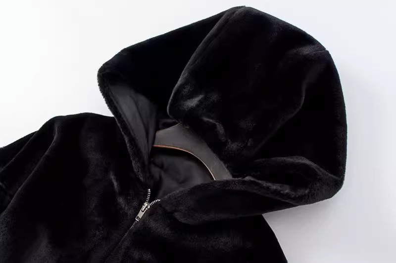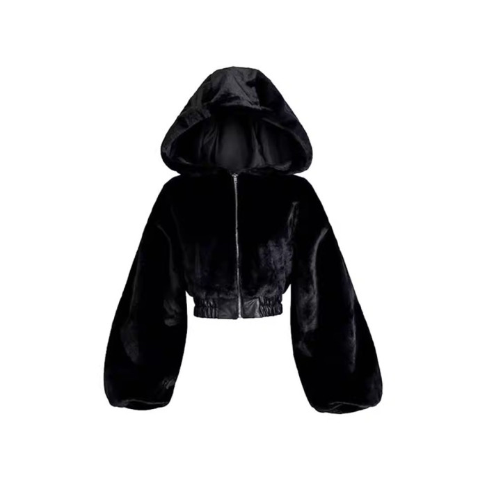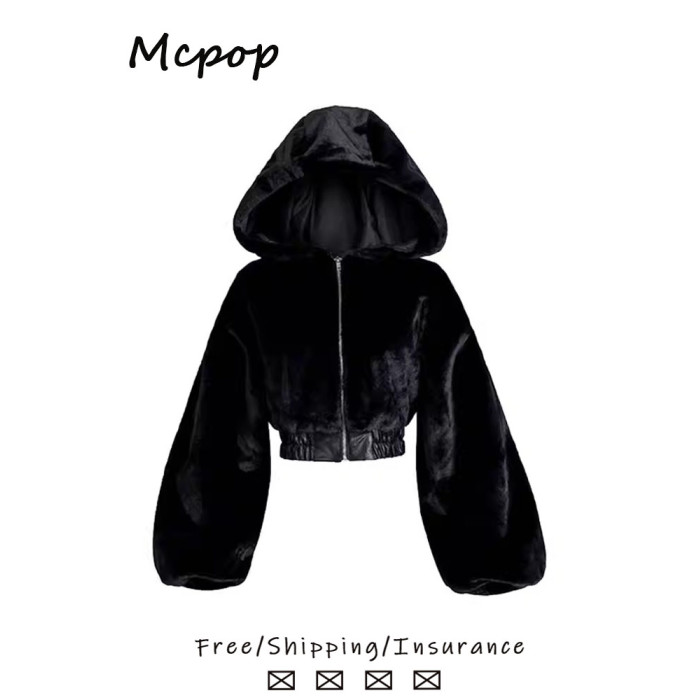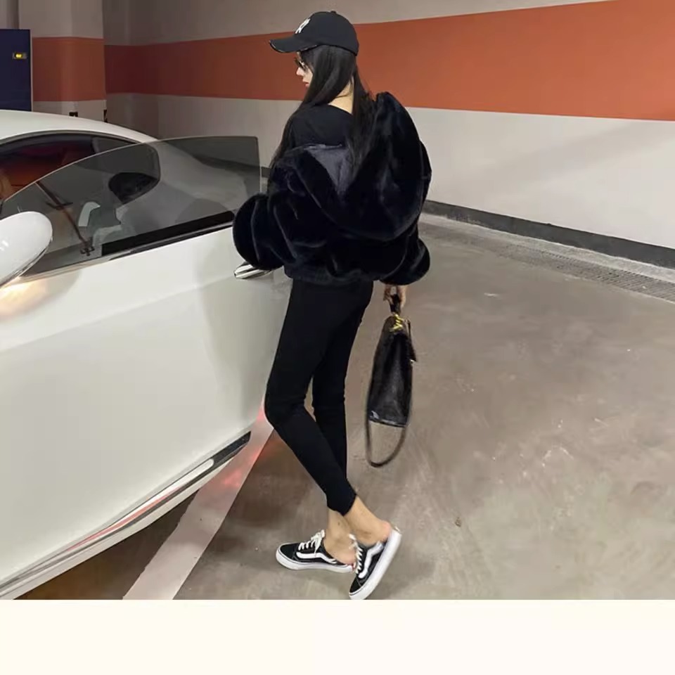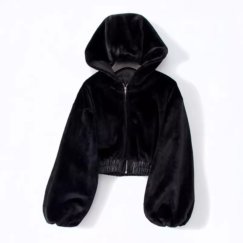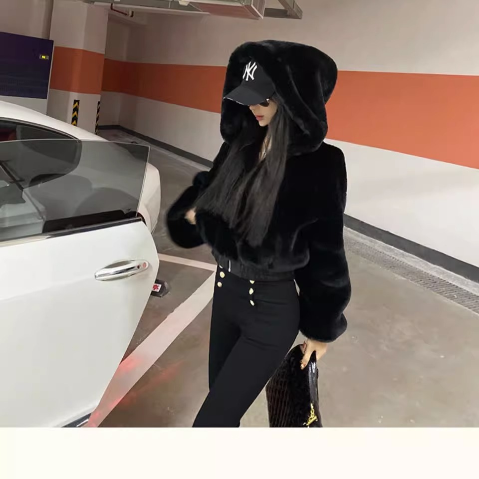 可愛毛毛絨短款外套女秋冬新款收腰高級感保暖加厚連帽毛茸茸上衣