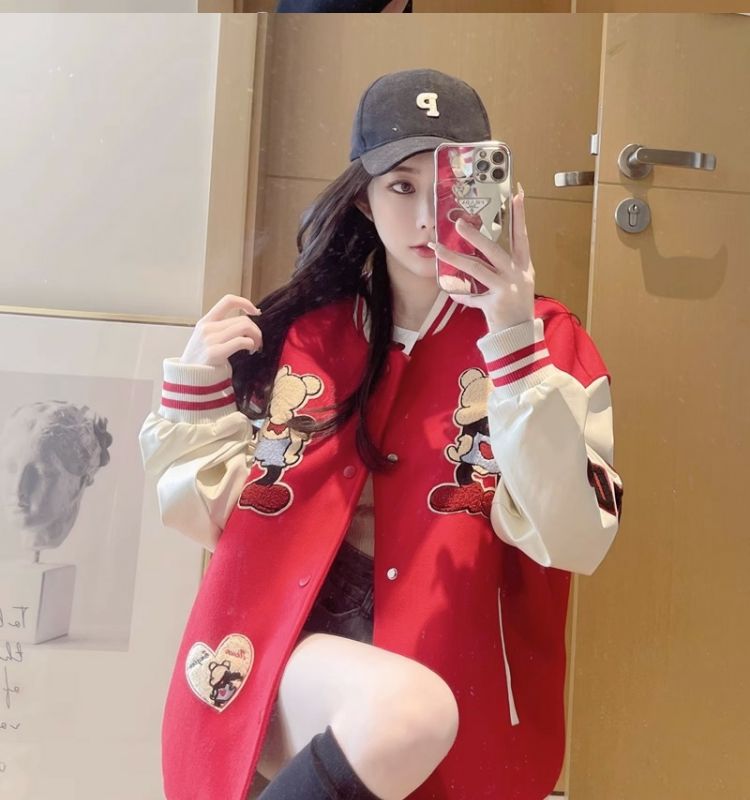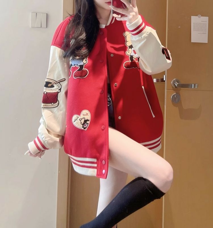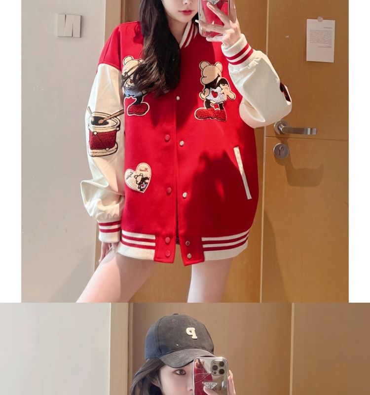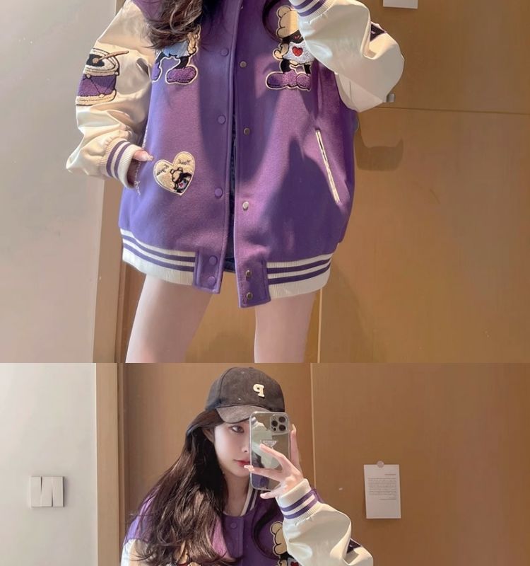 胖mm300斤大碼美式復古加絨棒球服女秋冬寬松撞色刺綉潮牌外套ins