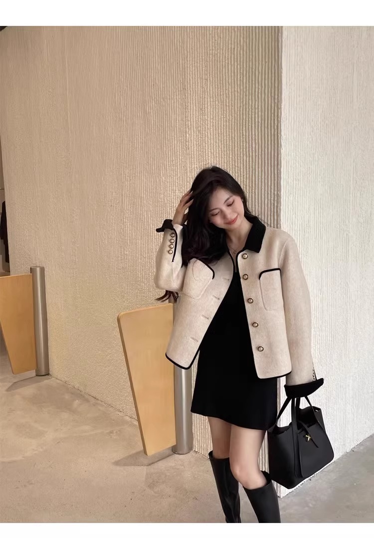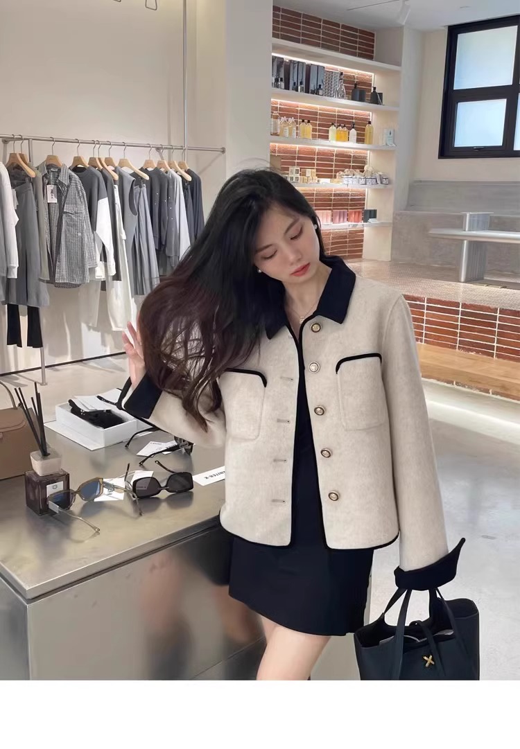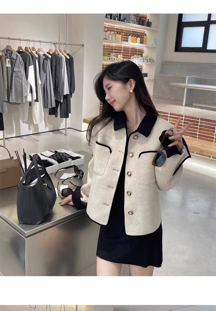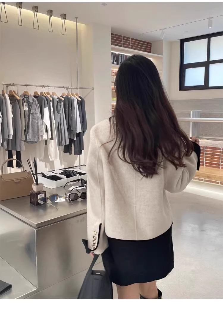 2025秋冬款小香風雙面仿羊絨大衣女短款小金釦法式小個子毛呢外套