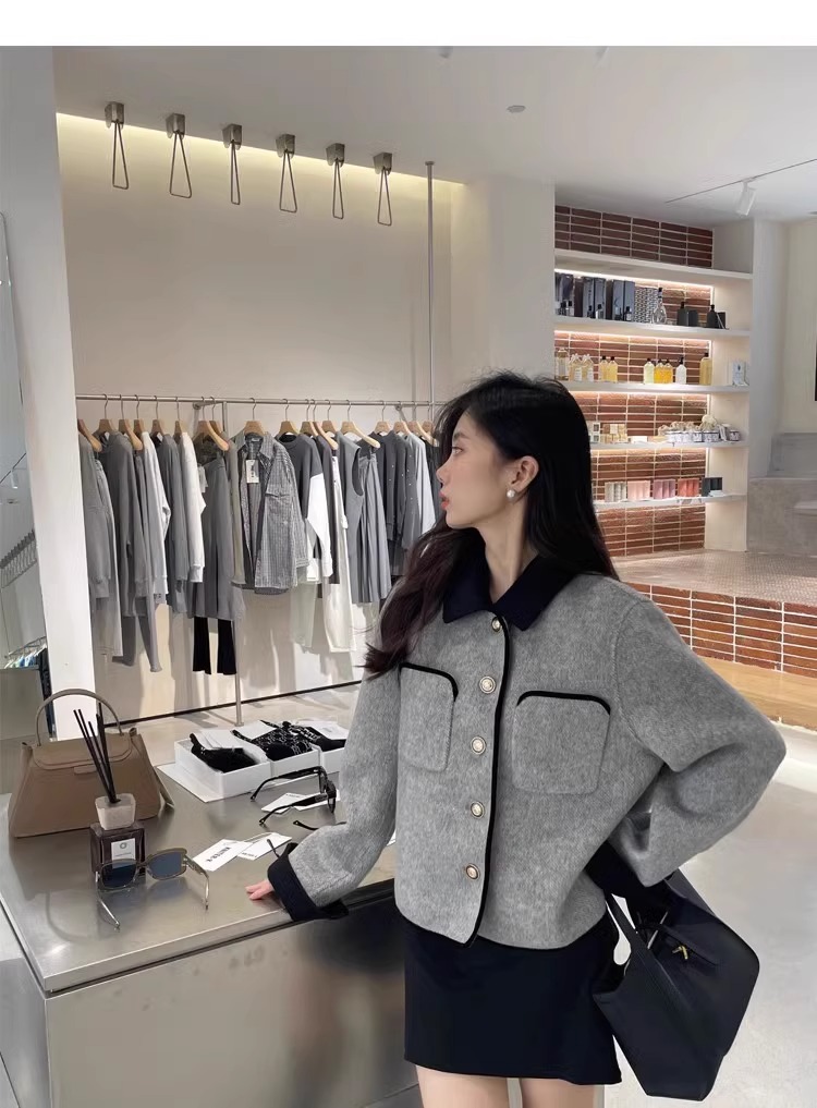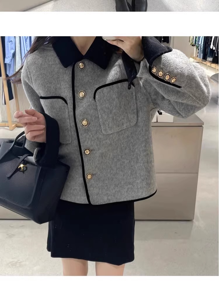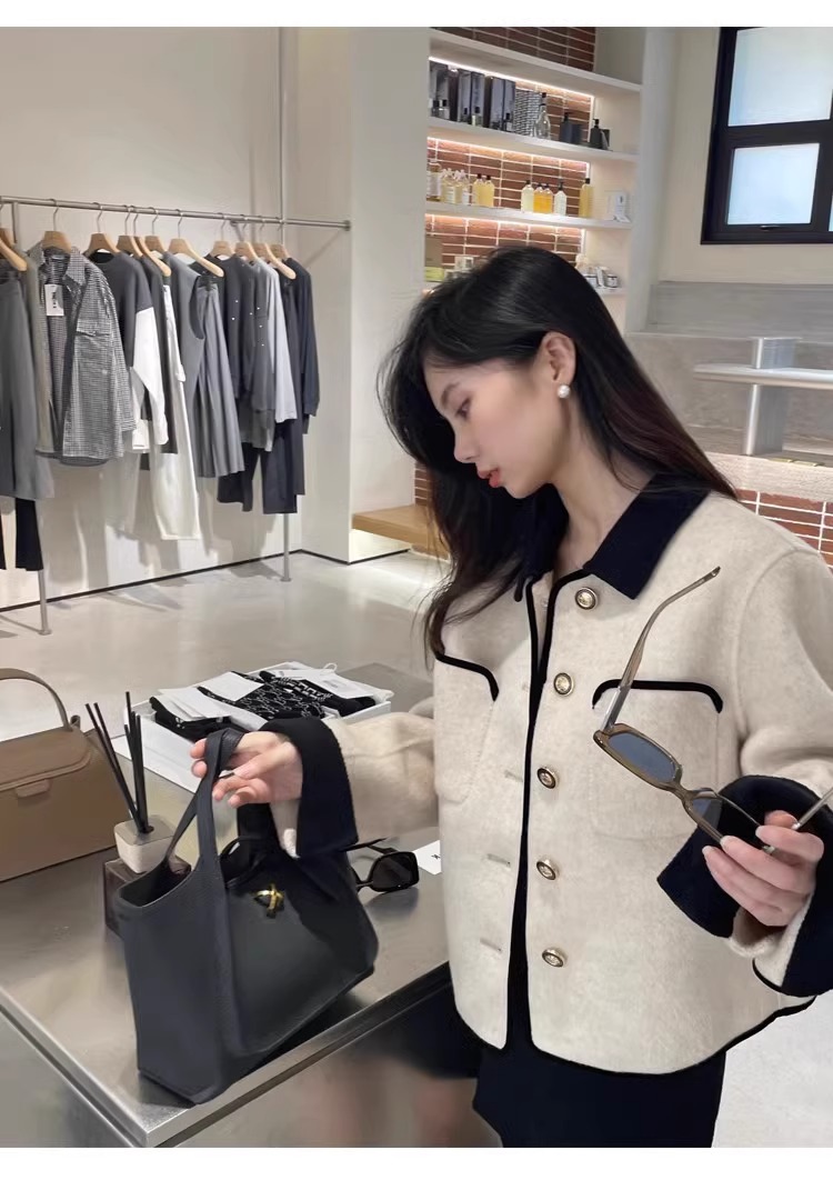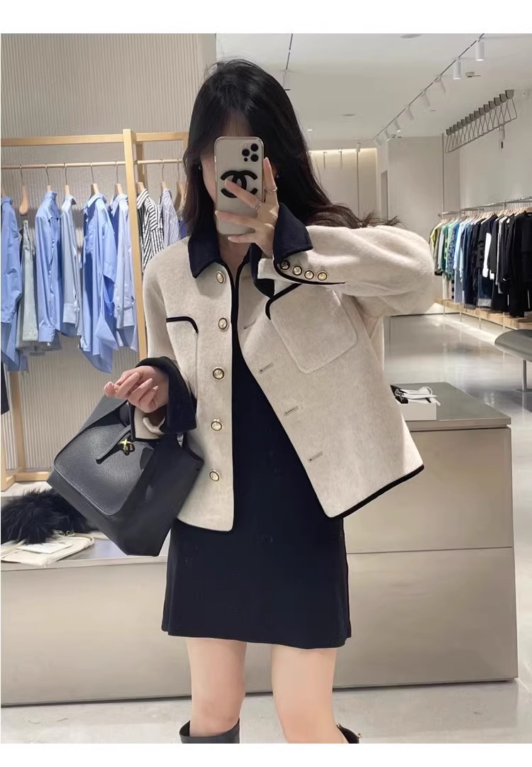 2025秋冬款小香風雙面仿羊絨大衣女短款小金釦法式小個子毛呢外套